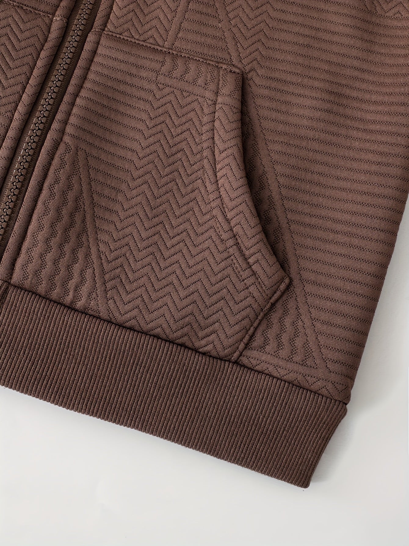 2pcs set of casual and fashionable fleece thickened Jacquard zipper pocket shoulder-length hooded sweatshirt and fleece Jacquard sports jogging pants suit, children's autumn and winter comfortable and versatile clothing, can