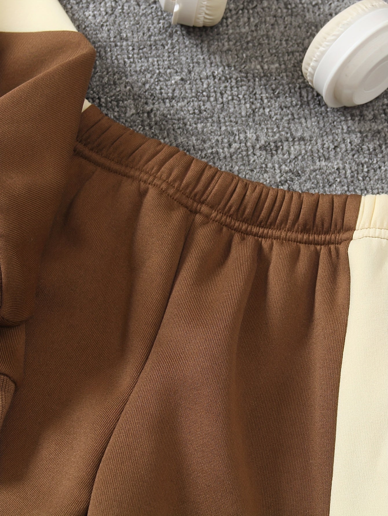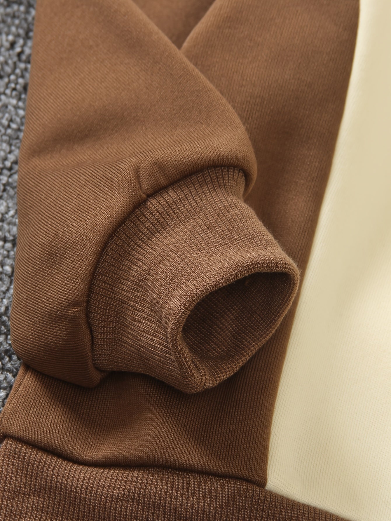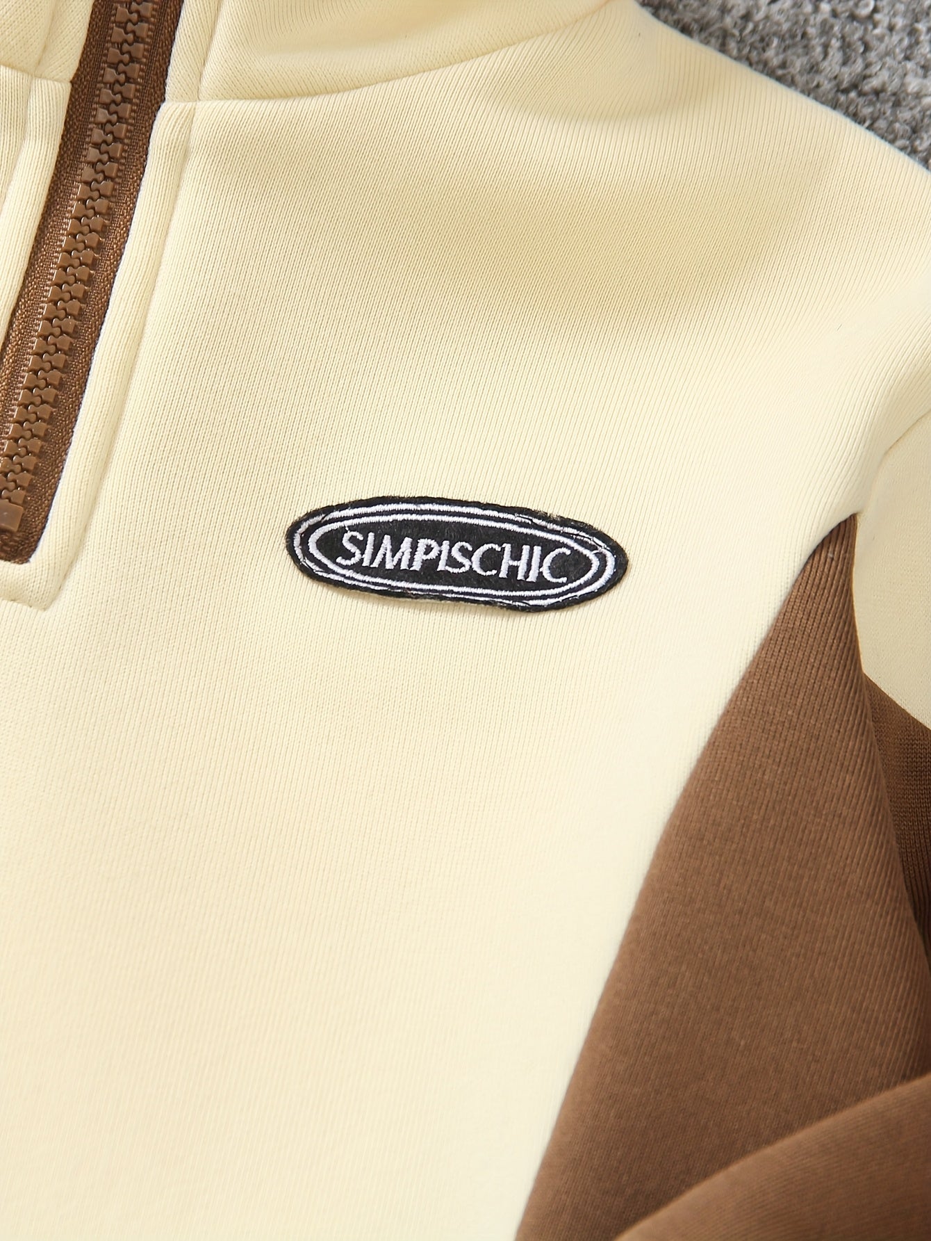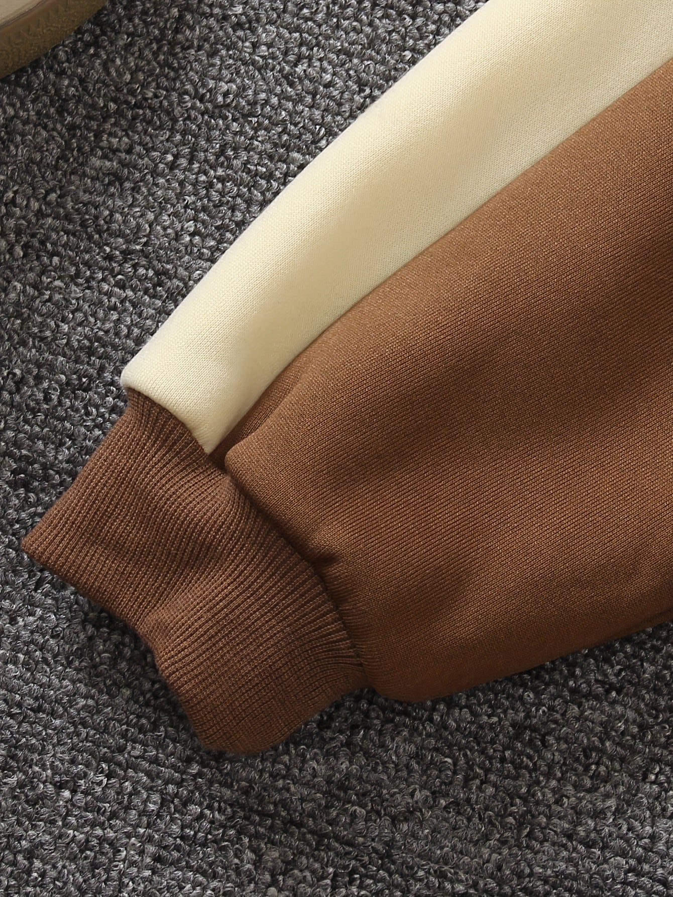 2pcs Set: Young Boys' Autumn/Winter -Lined Sweatshirt and Pants Set, Including a Stand Collar Half-Zip Contrast Long Sleeve Sweatshirt and Elastic Waist Contrast Pants, Very Casual, Comfortable, and Simple, Perfect for Outdoo