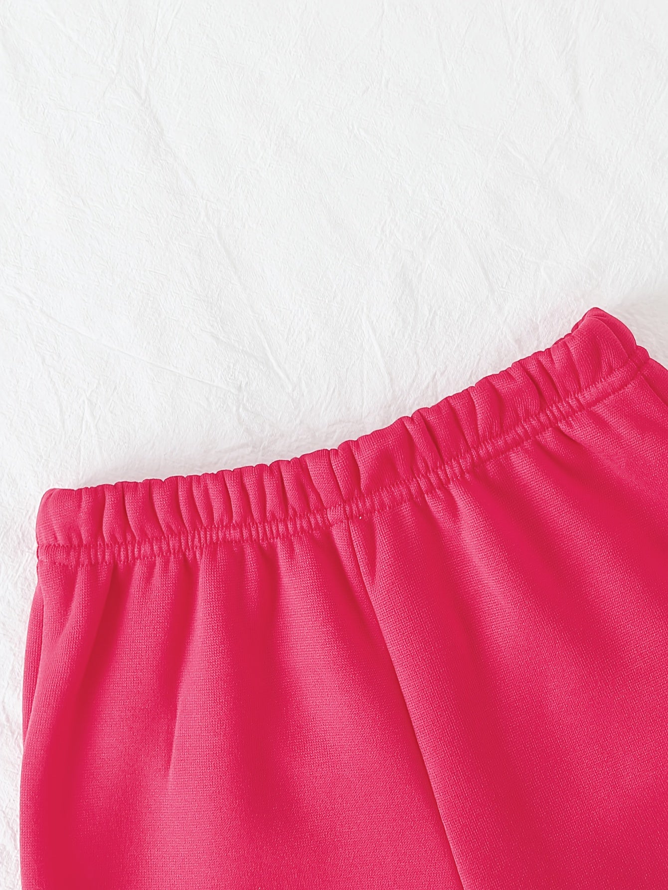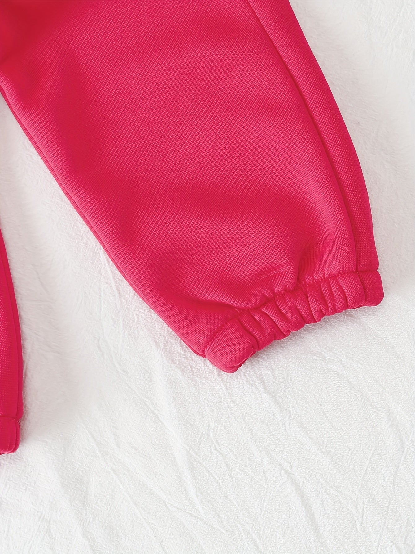 2pcs Soft Comfortable Girls' Outfit, New Year Christmas Valentine'S Day Set with Solid Color Long Sleeve Top + Elastic Waist Pants, LOVE Letter Embroidery Pattern, for Outdoor, Party, Birthday, Casual Wear, Party Attire, Eleg