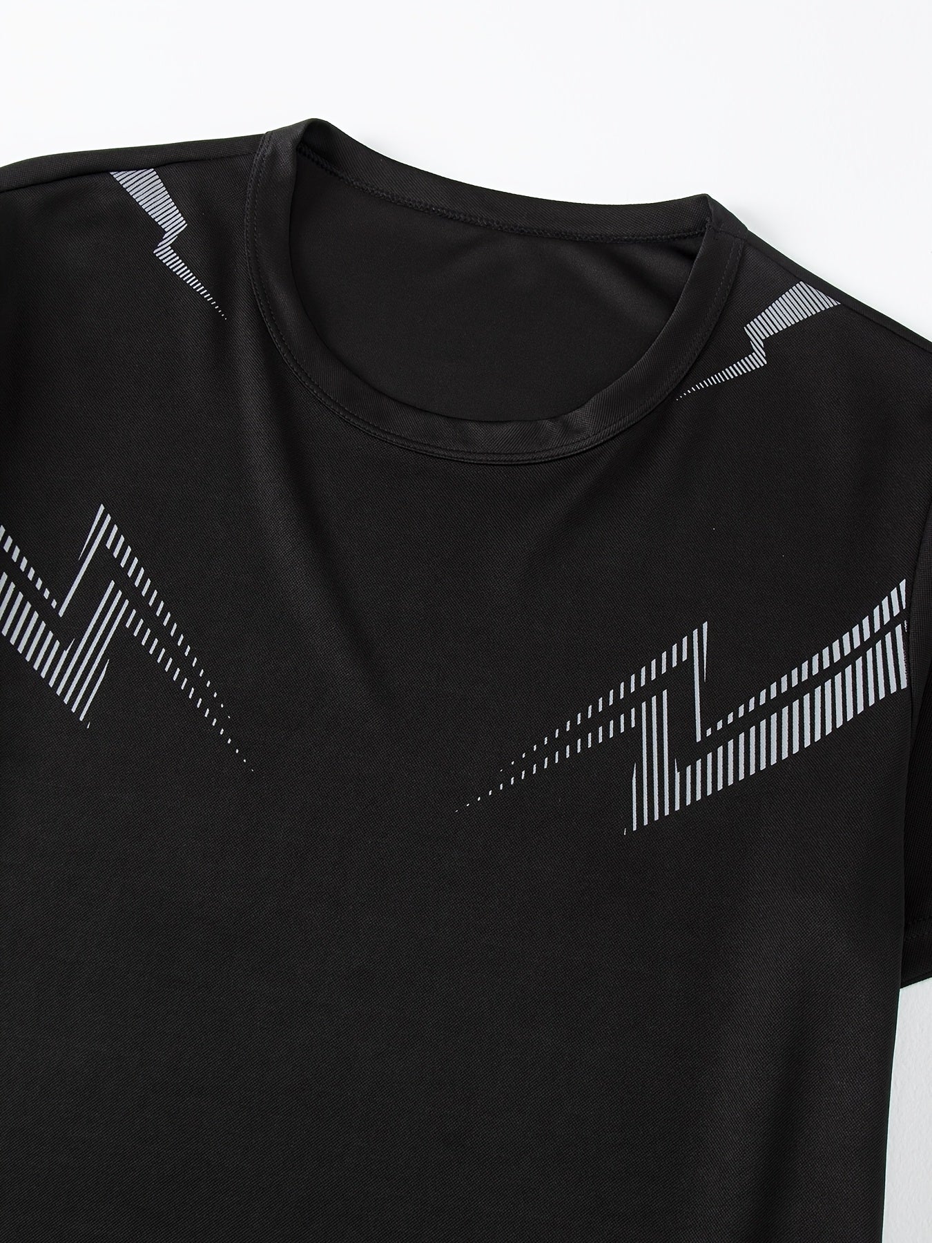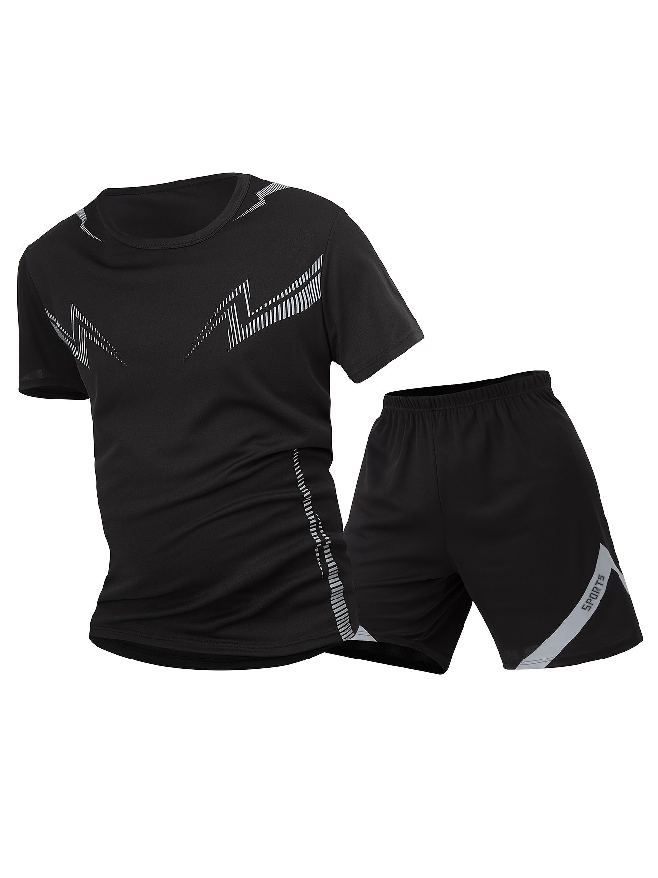 2pcs Summer New Lightning Print Sports Suit Men's Short Sleeve Shorts Outdoor Fitness Breathable Quick-Dry Loose Running Outfit Set