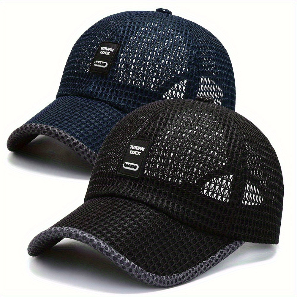 2pcs Unisex Quick-Dry Breathable Mesh Baseball Caps - Adjustable Lightweight Summer Sun Hats with Geometric Textured Design for Outdoor Sports, Football Games & Casual Streetwear (Black & Gray), Game Day Accessories, Durable