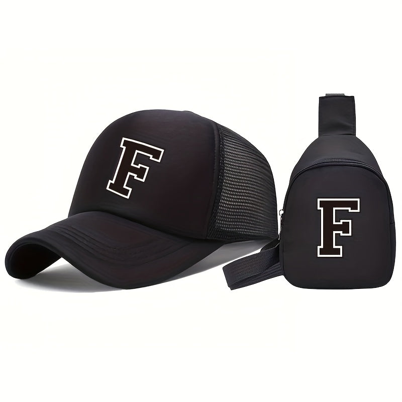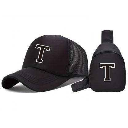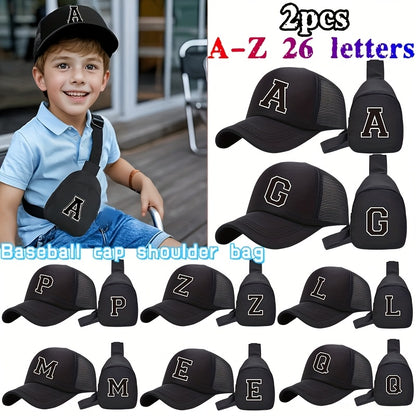 2pcs Youngsters' 26 Letter Print Truck Hat and Chest Bag Set, Fashionable Casual Sun Hat with Portable Storage Wallet, Suitable for Boys Girls Spring Summer Daily Outings, Perfect Back-to-School Season Gift