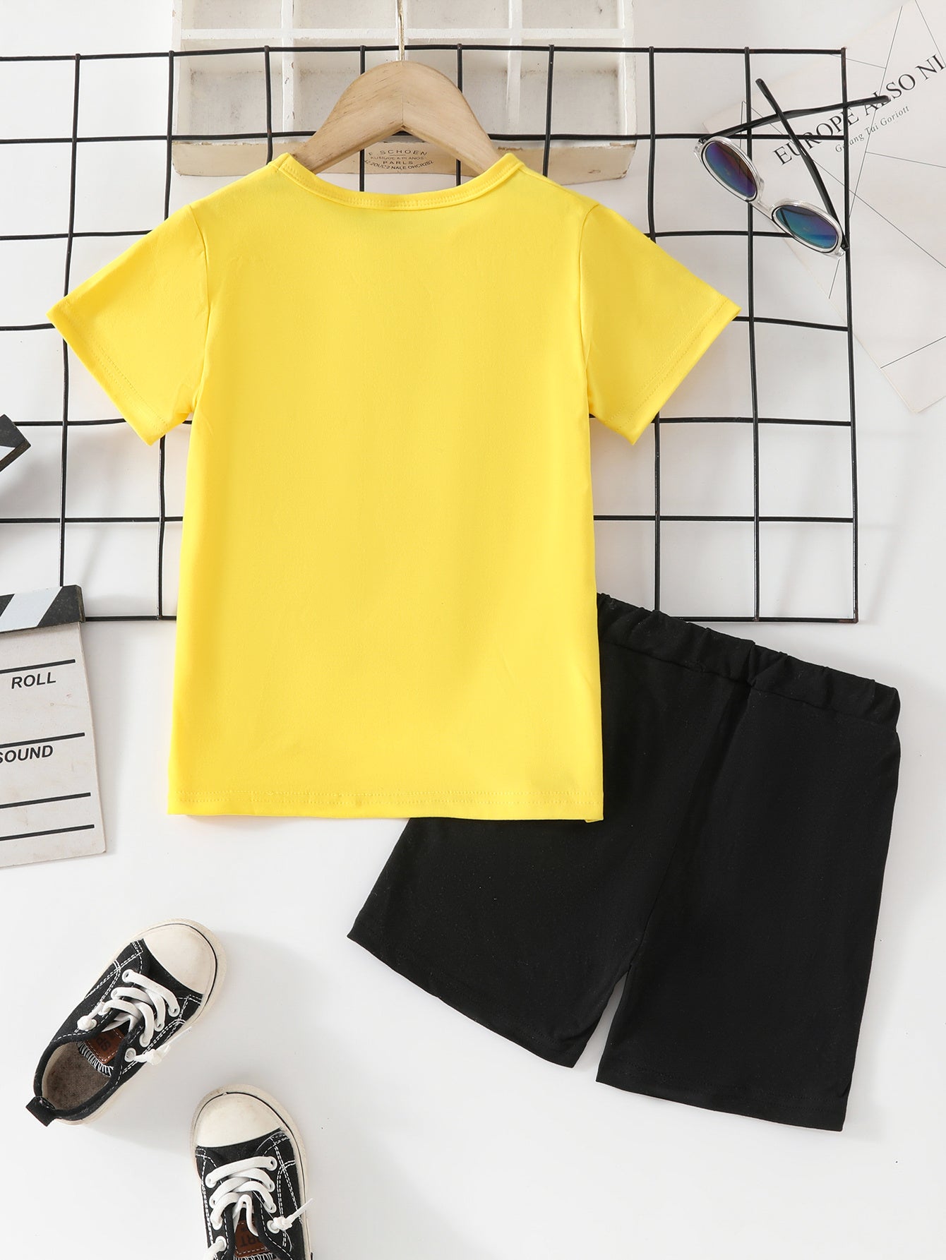 2pcs - Youngsters' Short Sleeve Shorts Set - Street Style Casual "Calvin" Letter Print, Vibrant Design - Summer Outdoor Outfit, Polyester Fabric, Comfortable for All Seasons, Daily Wear | Lively Printed Top | Stretchy Materia
