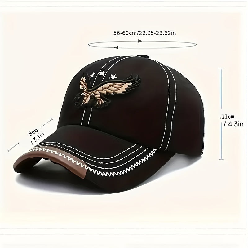 2pcs ZDEDE 3D Eagle Embroidered Baseball Cap - Stylish & Durable Adjustable Snapback Hat with Faux Leather Patch, Black Polyester for Outdoor Sports & Casual Wear - Perfect for Men & Women