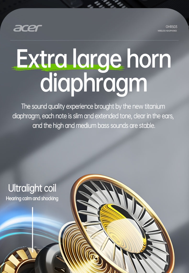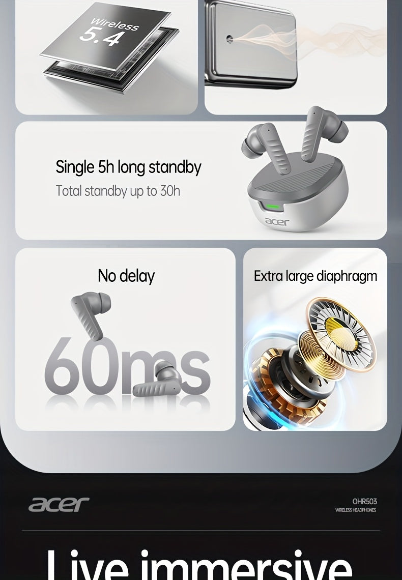 30h Wireless Earbuds Acer OHR503 Mini Sport Wireless Earbuds | Wireless Stereo, Long 30h Standby, Noise-Canceling, Comfortable Wear | Universal Fit, Latest Model, Touch Control