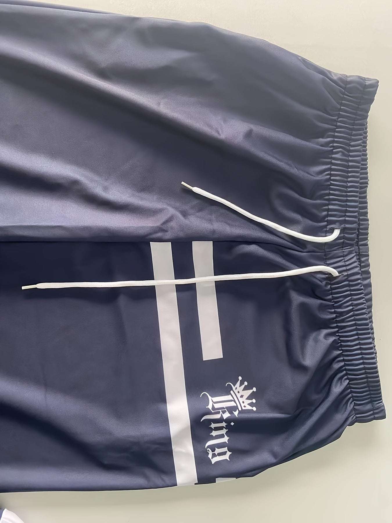 3D Digital Stripe Letter Crown Print - Suitable for Daily Outdoor Leisure Sports Men'S Two-Piece Set