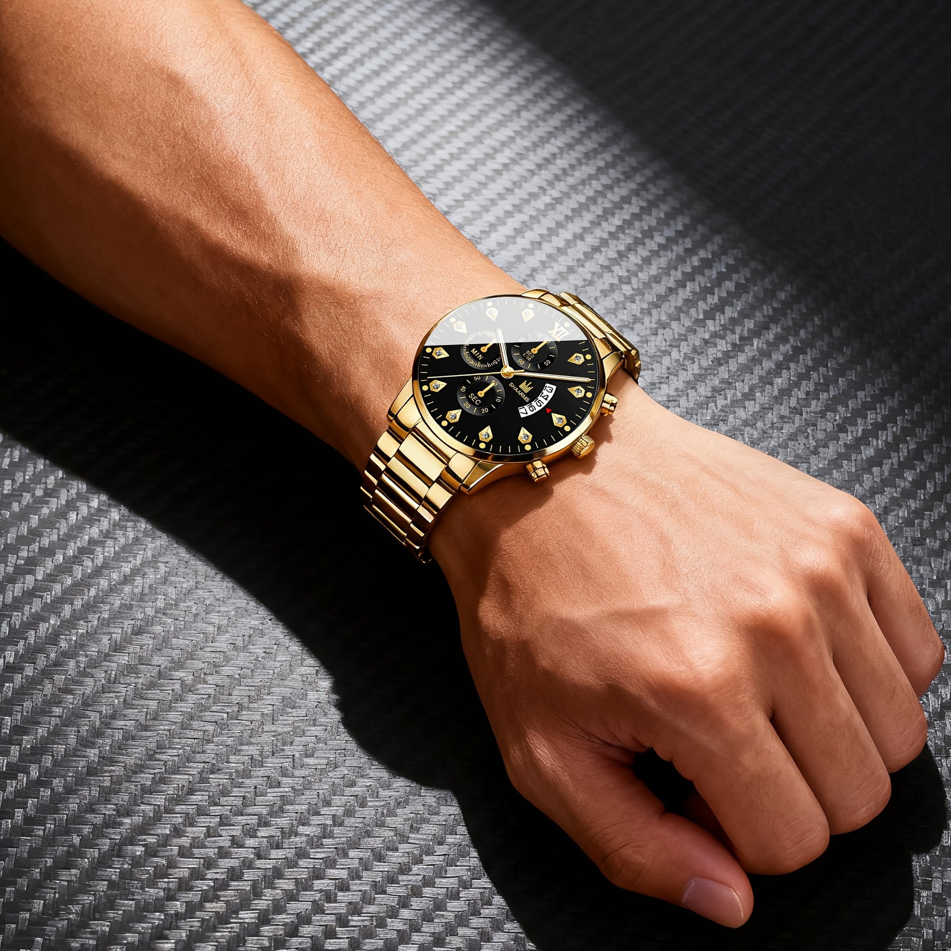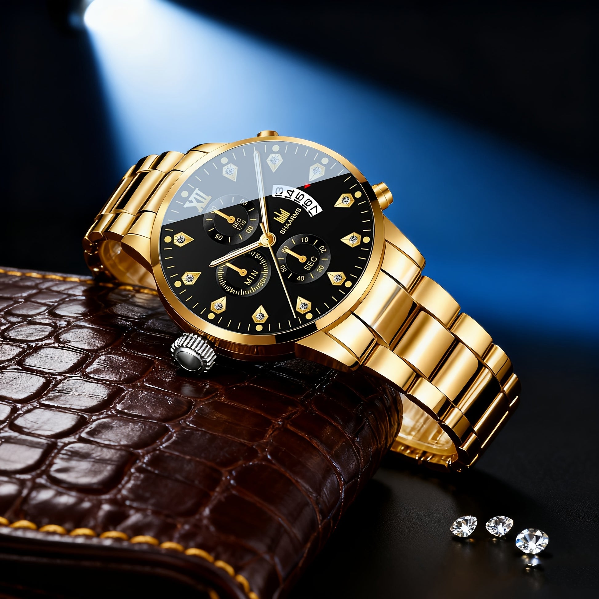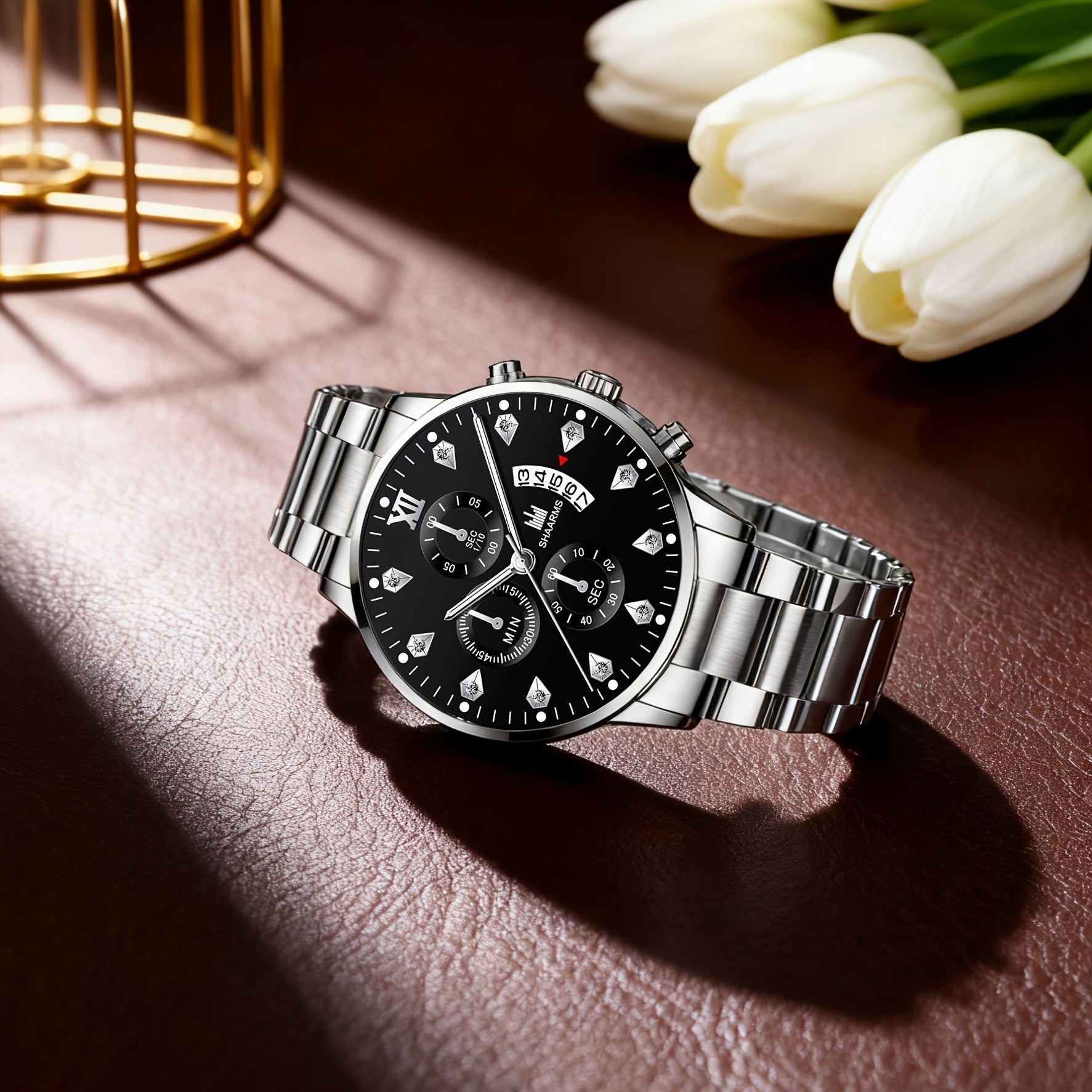 3pcs Men's Fashion High-End Quartz Watch + Business Casual Wallet and Versatile Glasses Combo Set, Perfect Gift for Friends on Holidays and Birthdays, Men's Gift