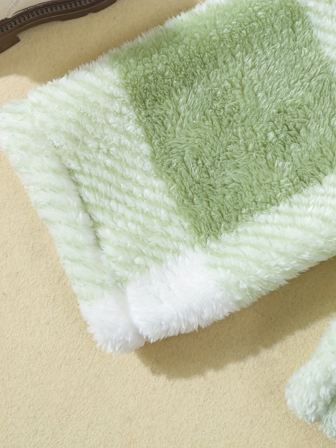 3pcs Plush Set Girl's Plaid Teddy Vest + Long-Sleeve Top + Teddy Pants, Casual outdoor Style Girls Winter/ Fall Clothes, Gift