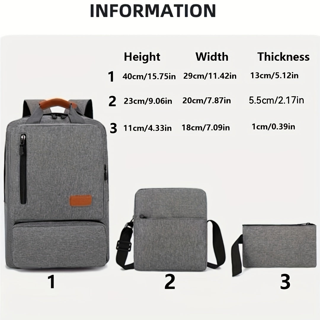 3pcs Set of Backpacks, Simple and Fashionable for Women and Men, Laptop Backpack with Shoulder Bag and Handbag, Suitable for Travel and Business Use
