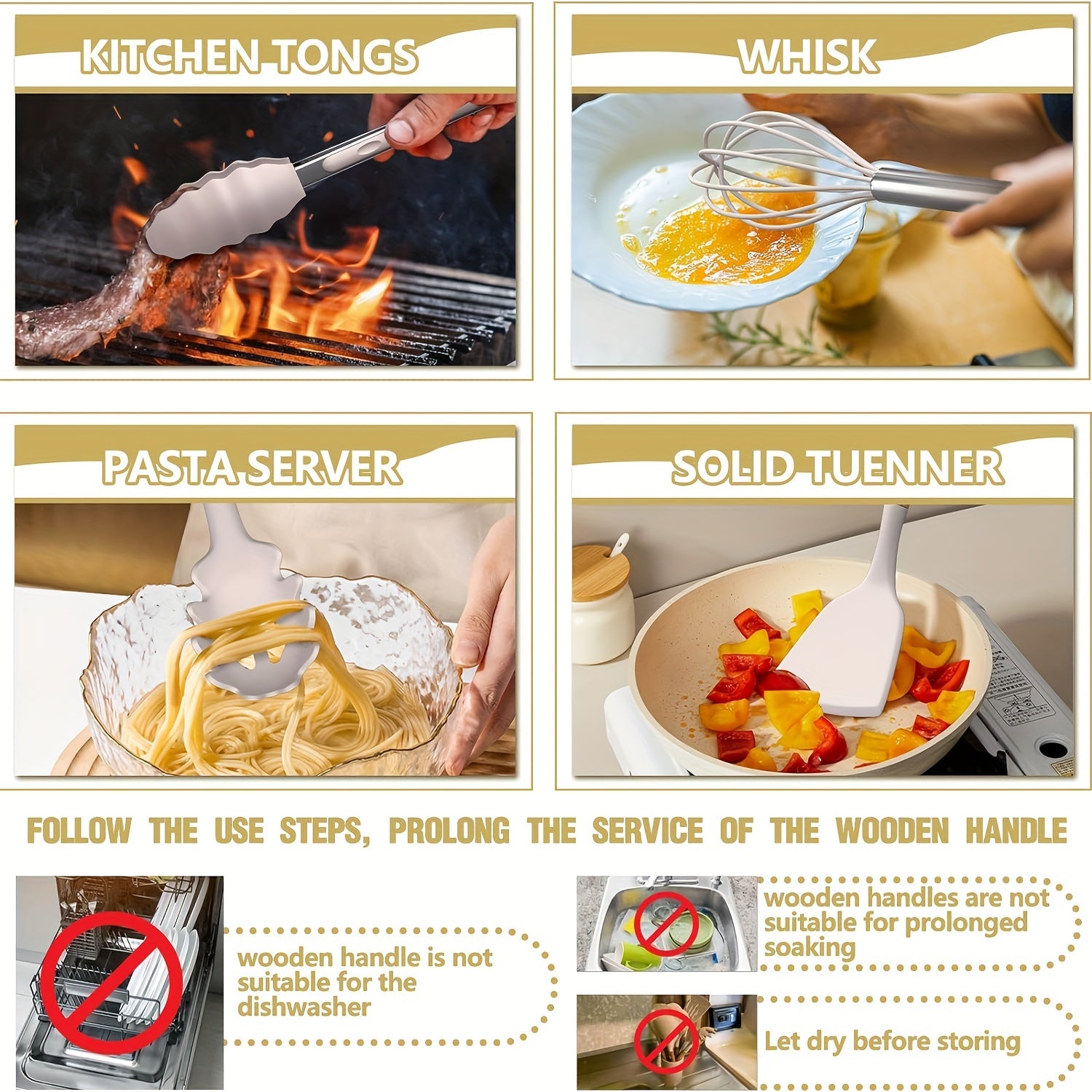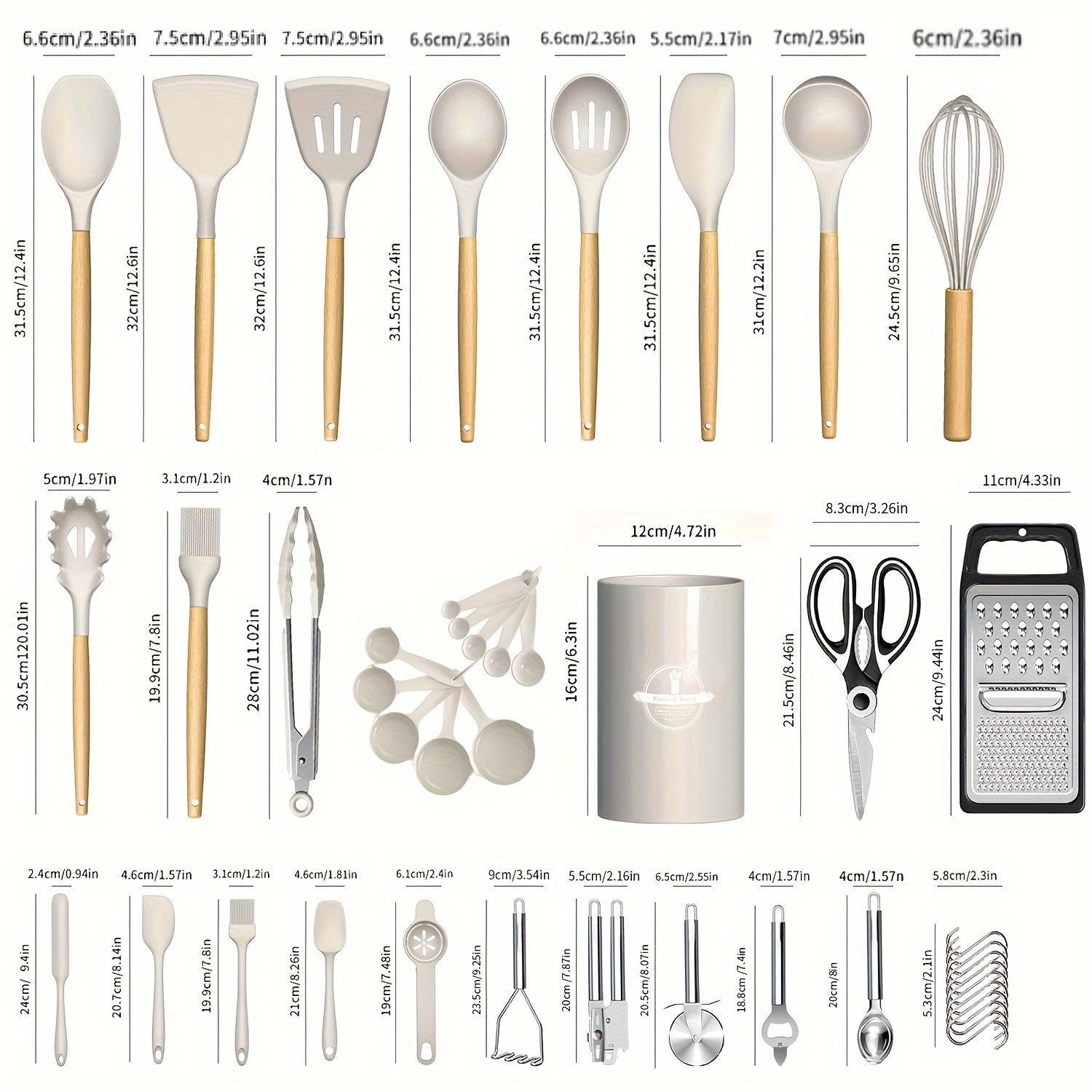 44pcs Set of Wooden Handle Silicone Non-stick Cookware Wooden Handle Cooking Spatula Spoon Stainless Steel Grater Bottle Opener Kitchen Cooking Tool Set