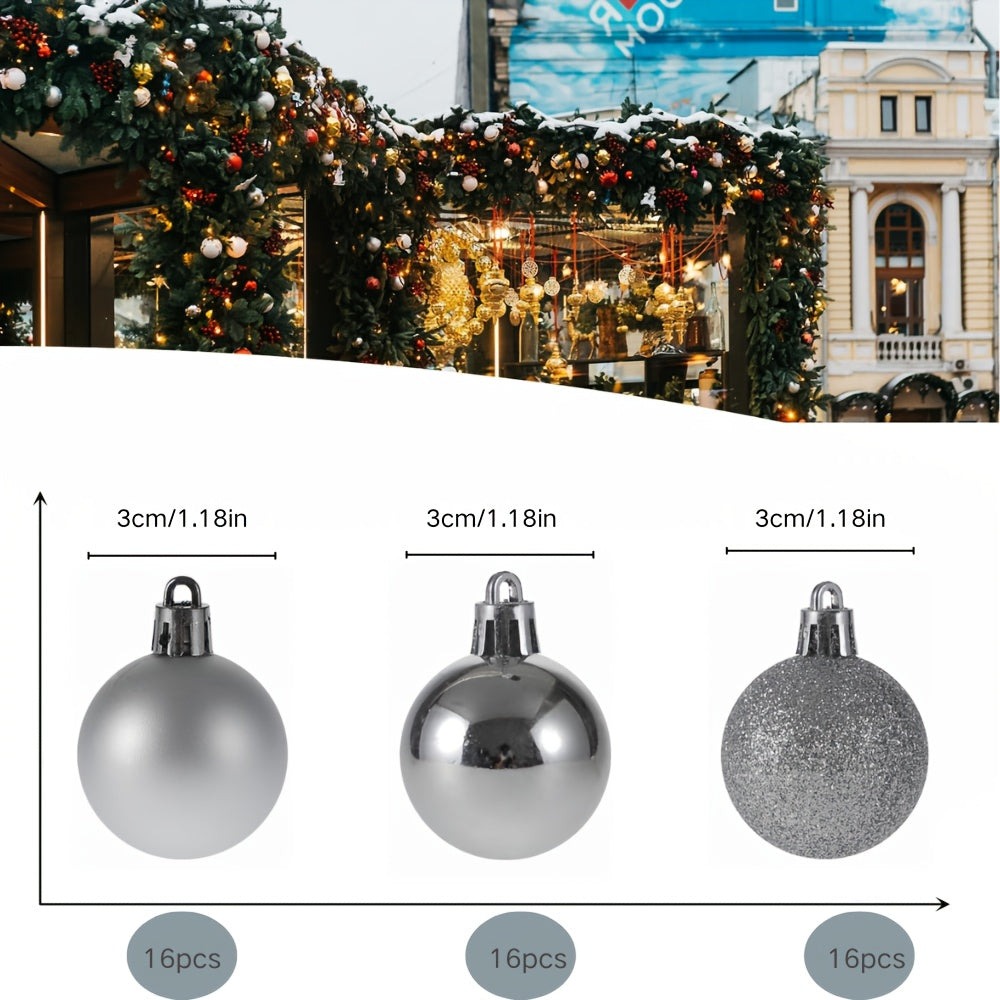 48 Red Christmas Tree Ornaments - 3cm Plastic Decorations, Includes 16 Glittery Miniature Trees with Strings for Christmas Tree Decoration and Holiday Décor,gift for new year,Valentine's Day