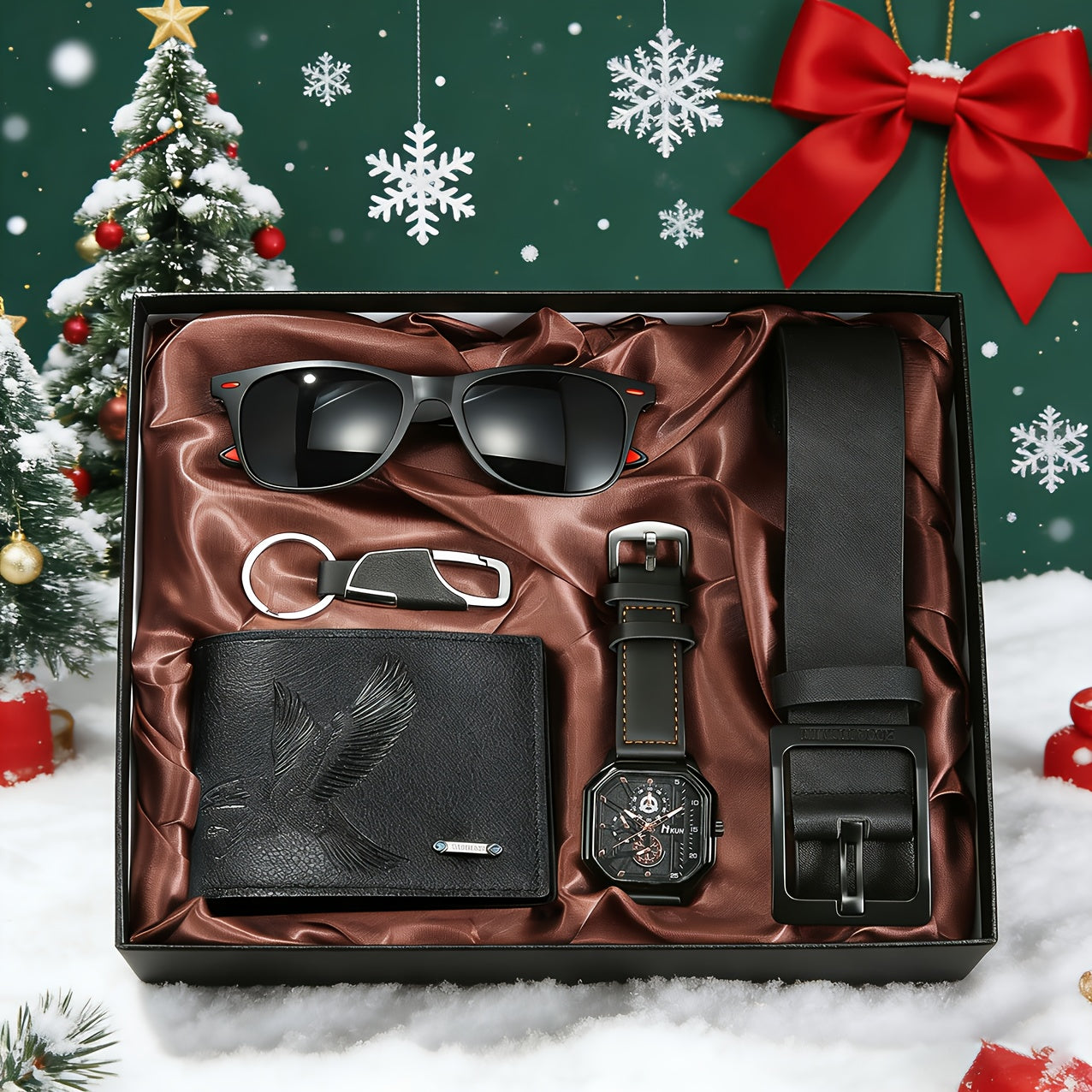 5pcs Men'S Fashionable Gift Set | Glasses, Wallet, Keychain, Watch, Belt in - Perfect for Daily Street Wear, Commuting, or as a Stylish Gift for Boyfriend'S Birthday, Father'S Day, Christmas