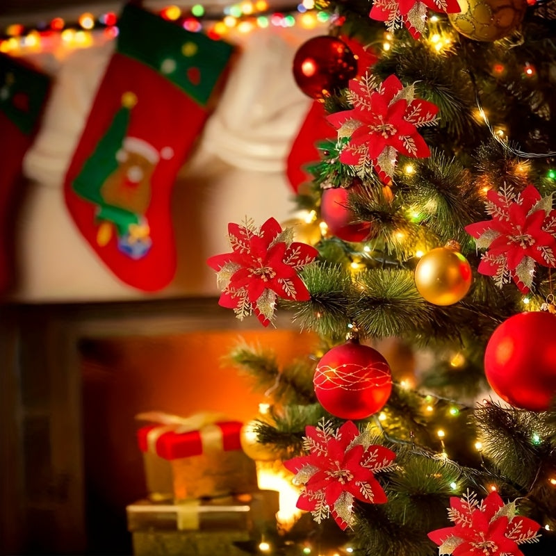 60 Shiny Flower Clips - 5.5-Inch Large Decorative Set, Suitable for Christmas, Weddings, New Year & Family Gatherings - Includes 30 Flowers & 30 Clips, Easy To Hang, Best For Christmas