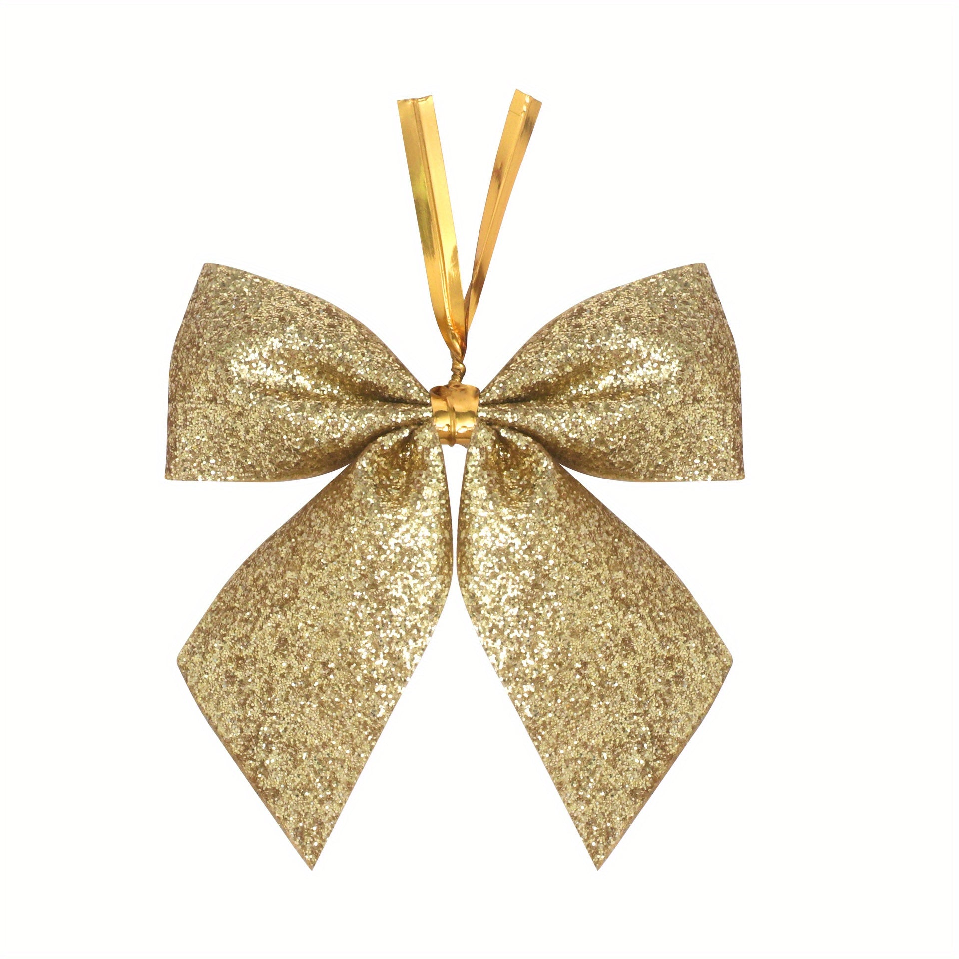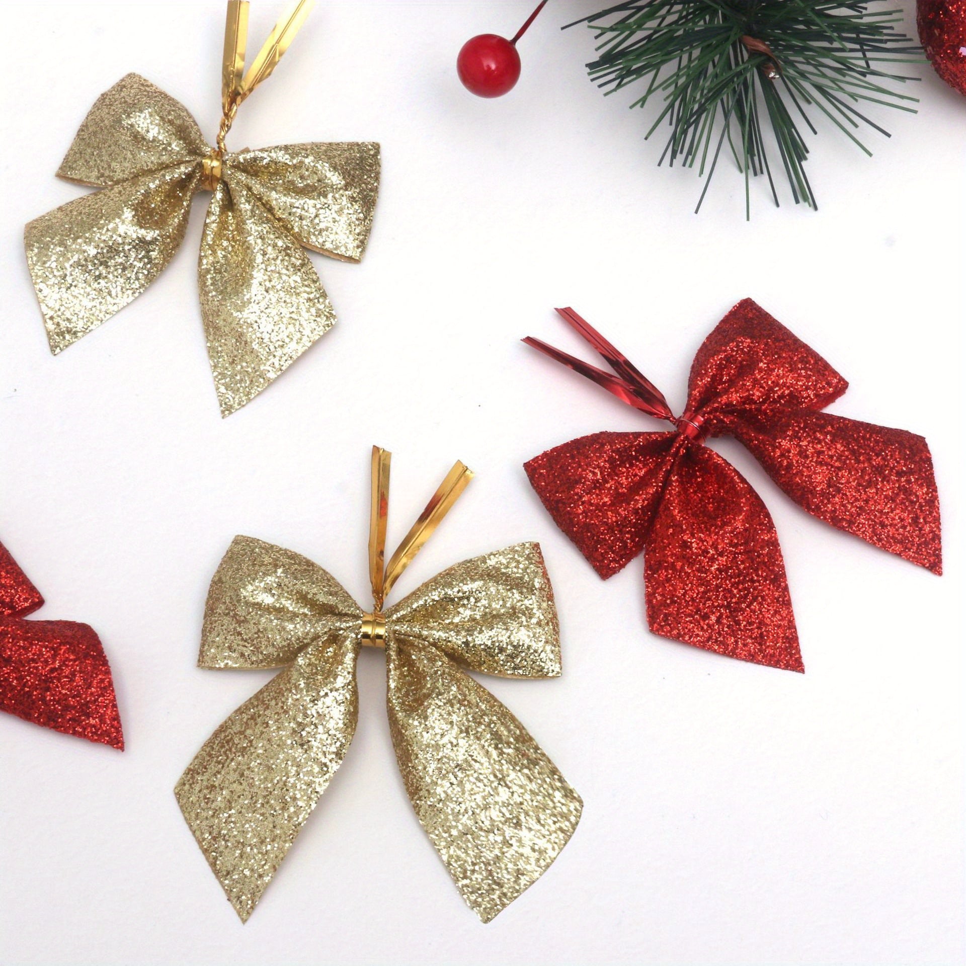 60pcs Elegant Red & Golden Glitter Mini Bows with Golden Ribbon - Durable Polyester Christmas Tree Decorations, Wreaths, Gift Wrapping, Crafts - Shiny Glossy Bows with Sharp Tip for DIY, Party Decorations, Holiday Ornaments (
