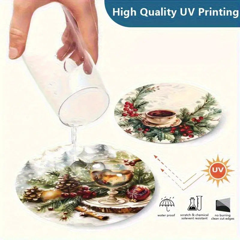 6pcs Holiday Wooden Coaster Set- Christmas and Holiday Themes, Suitable for Kitchen, Living Room, and Patio Tables- Perfect Holiday Gift, Christmas Decoration, Festive Tableware, Holiday Decor, Themed Coasters, Seasonal Desig
