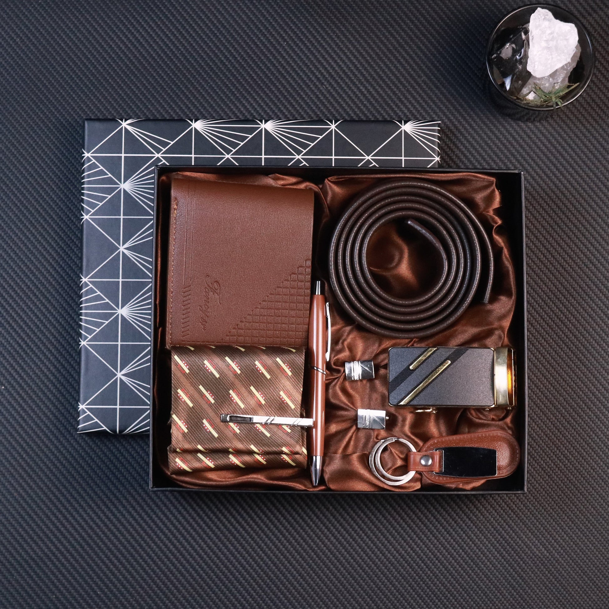 8pcs Men's Luxury Accessory Gift Set with Automatic-Docking Collar Tie System, Dress Belt, Cufflinks, Keychain, Pen & Wallet - Complete Corporate Attire Bundle for Weddings, Business Meetings, Prom - Ideal Birthday/Christmas/