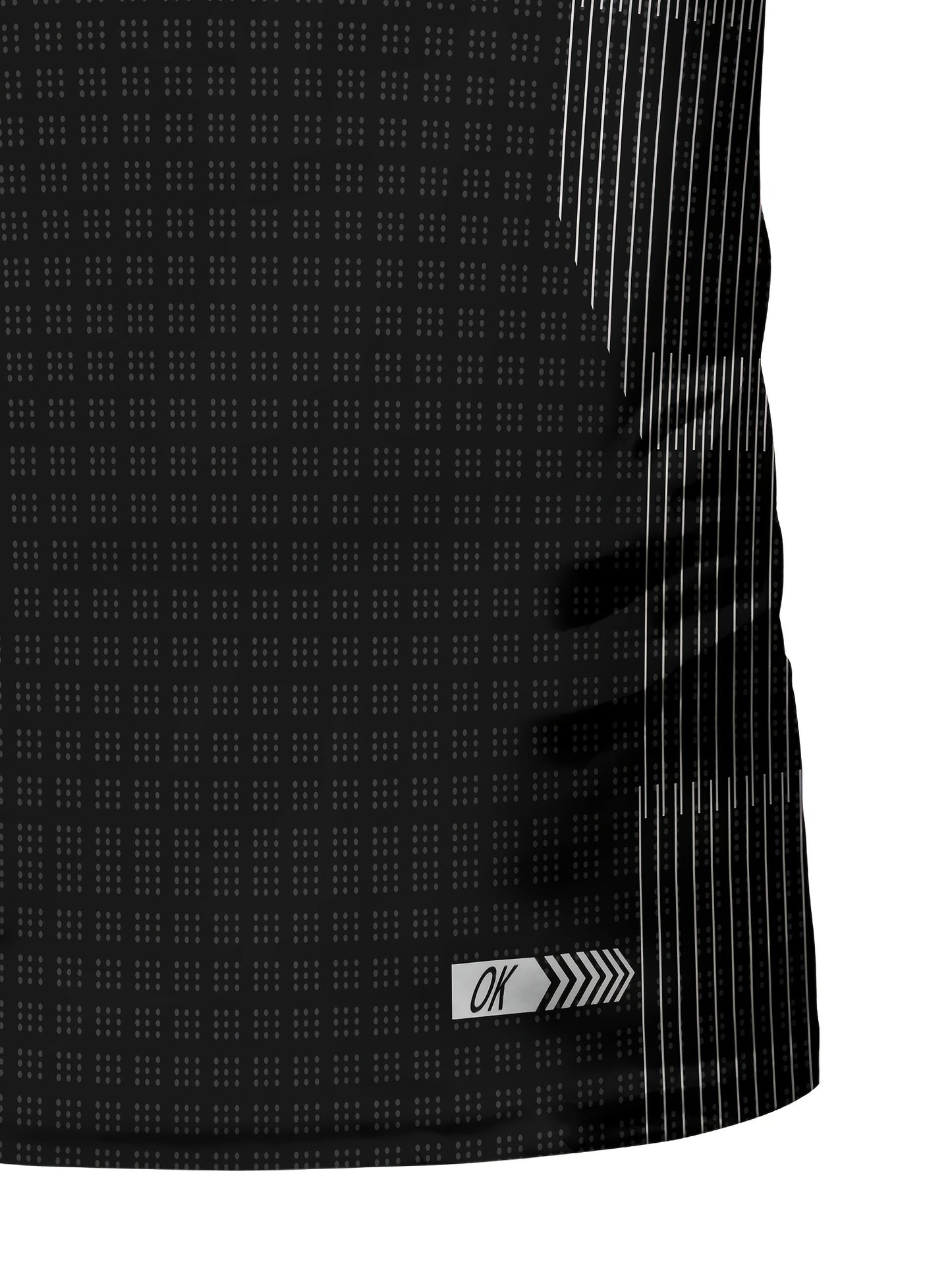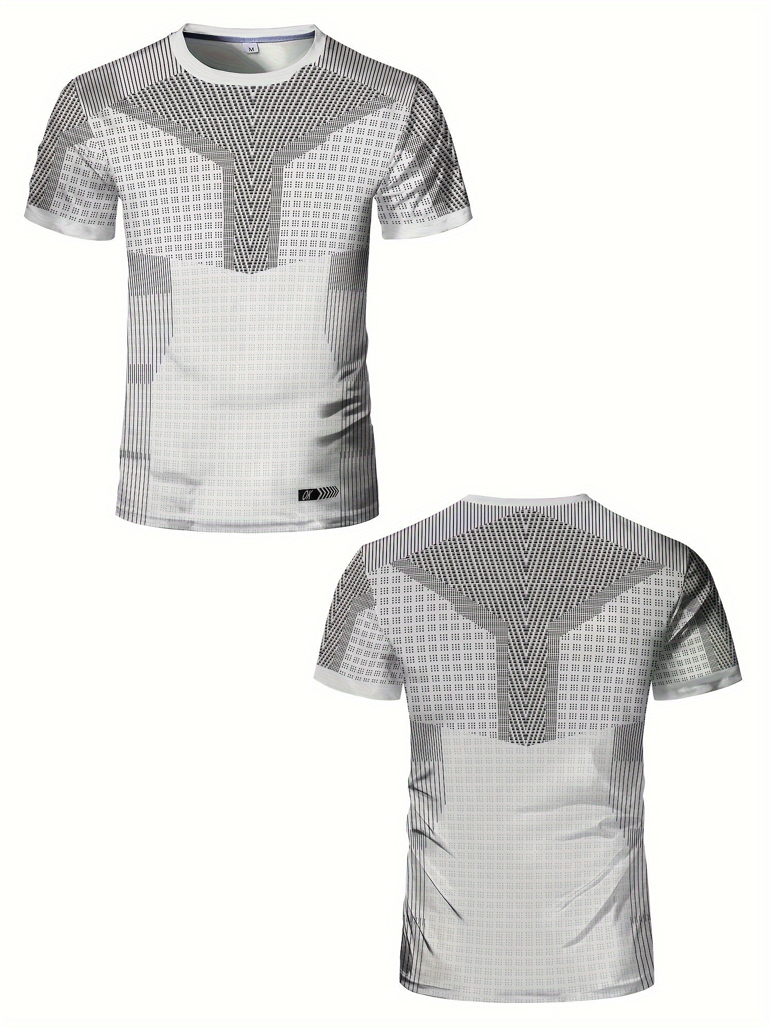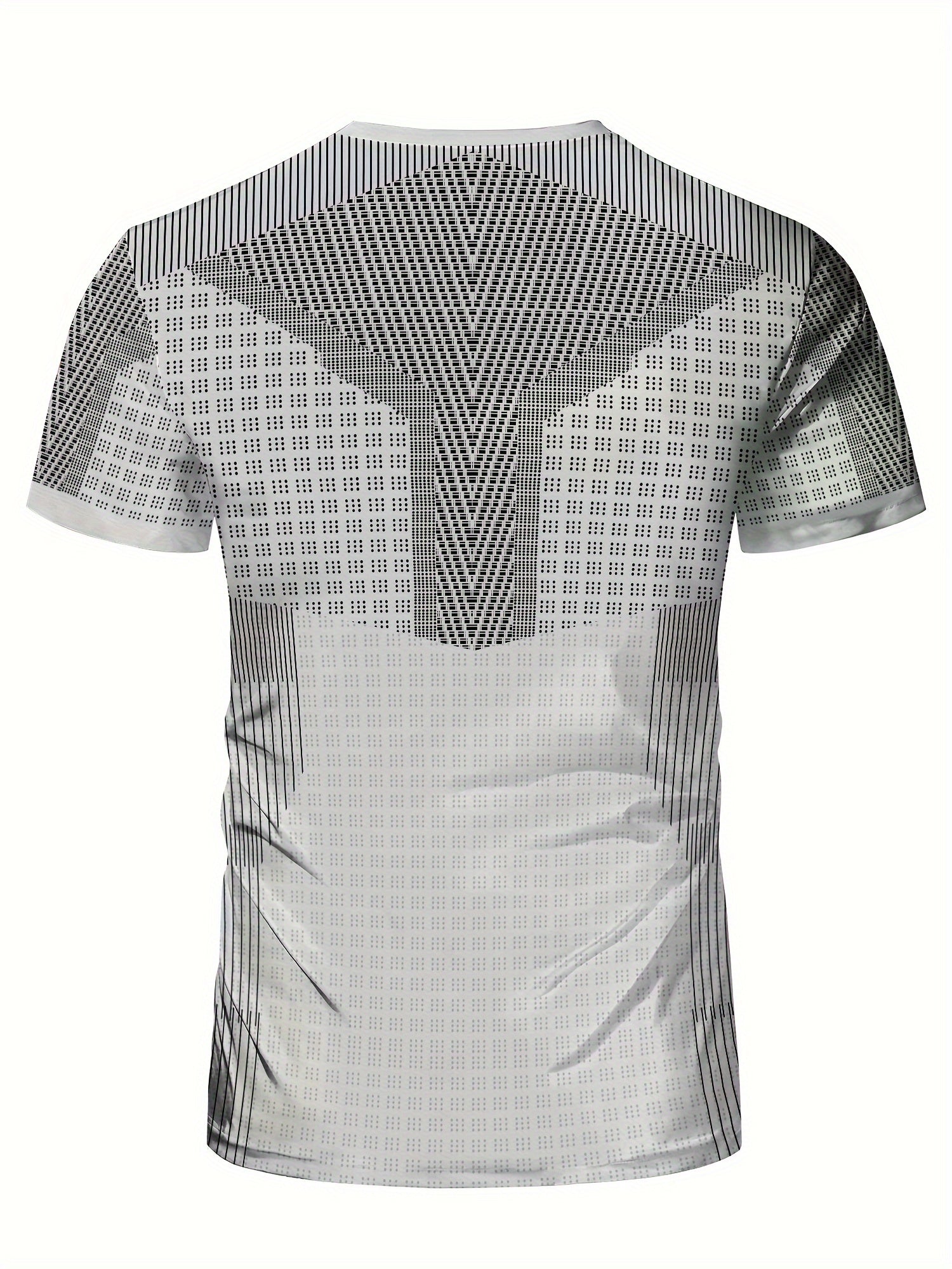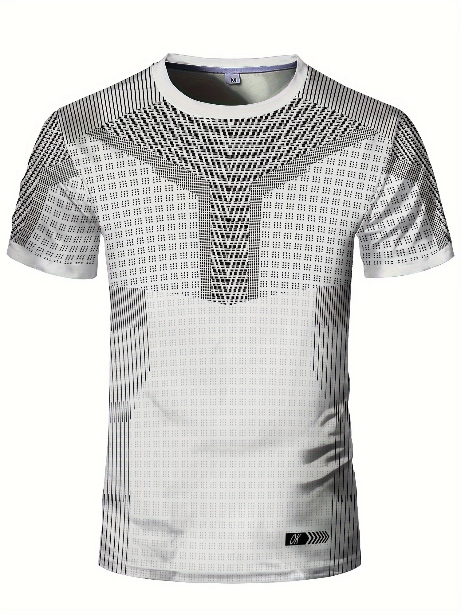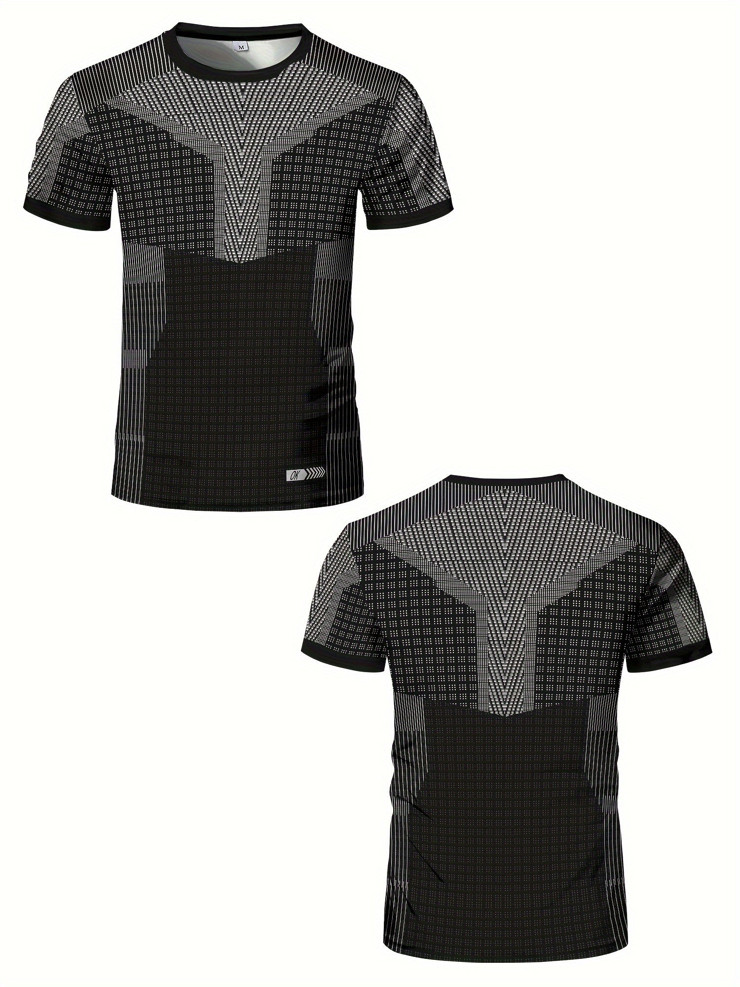 A Black And White Patterned Print Design, Men'S Sporty Fashion, Geometric Print High-Elastic Tight-Fitting Short-Sleeve Round-Neck T-Shirt, Quick-Drying Sports Top for Summer Fitness, Training, And Workout, with a Cool Feel,