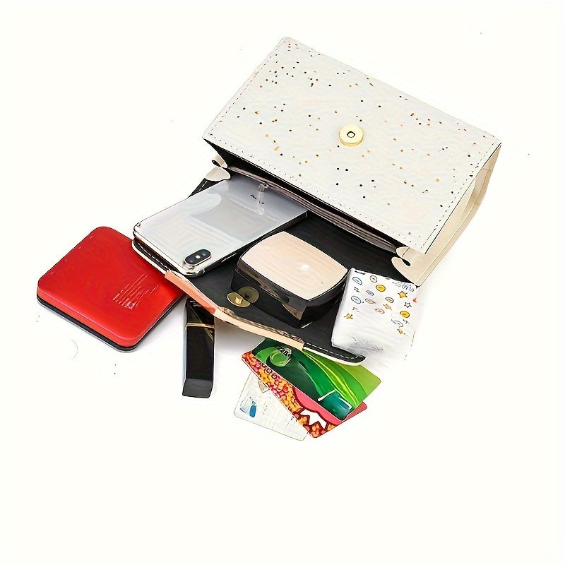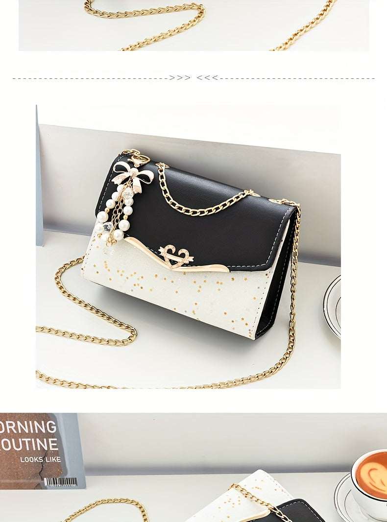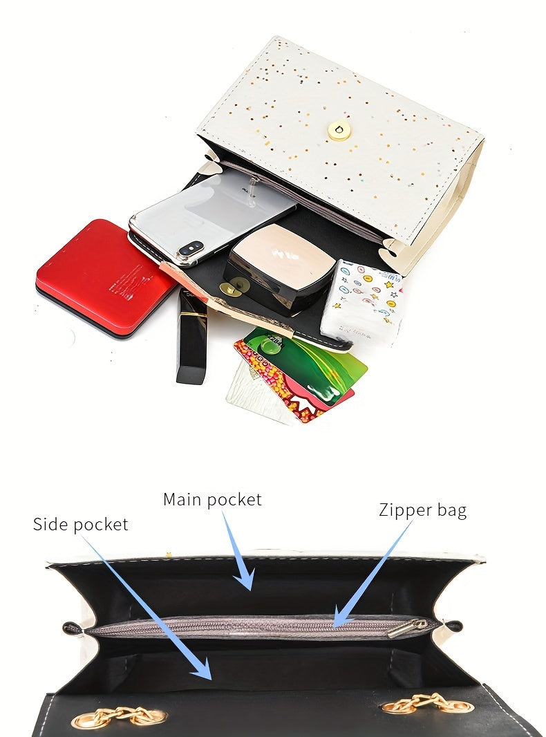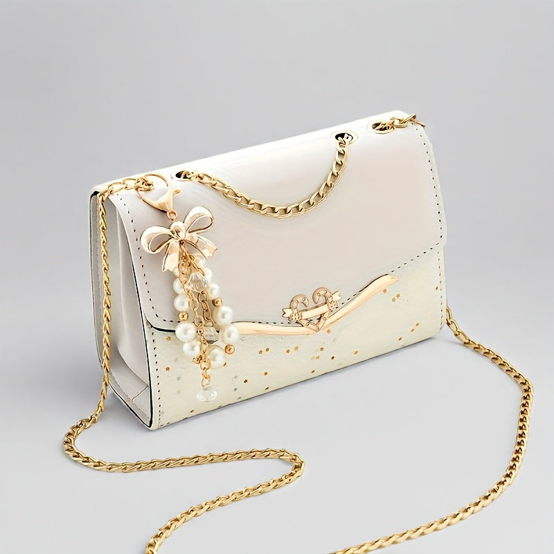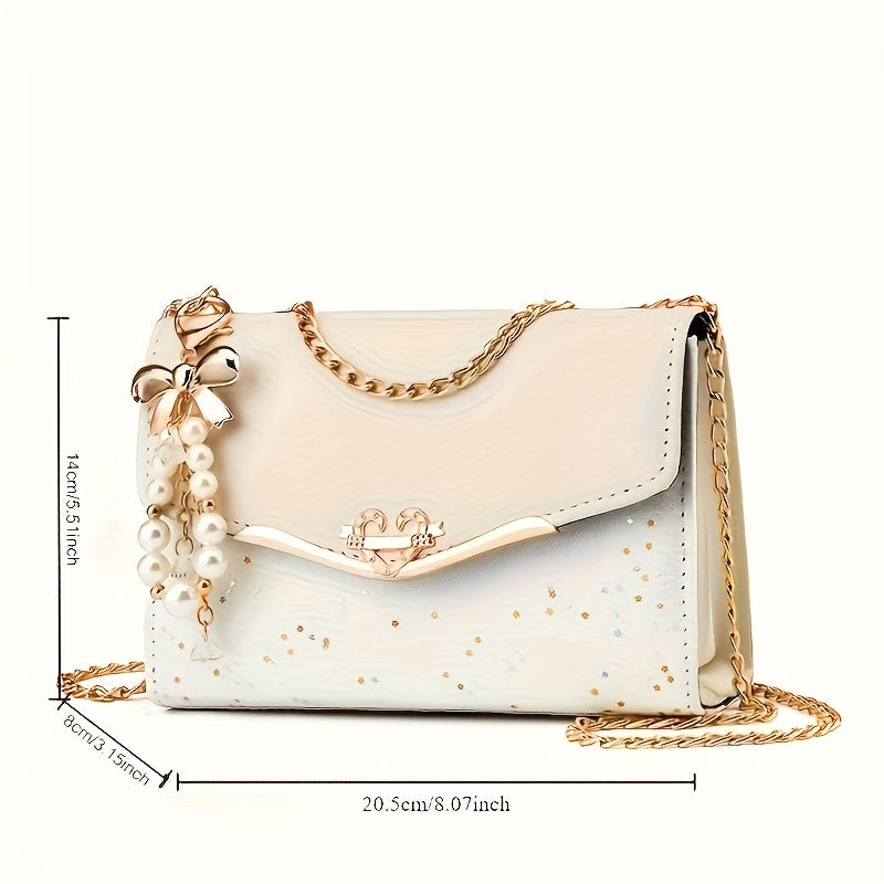 A Festive Mini Shoulder Bag with Shiny Details - Made of PU Material, Lightweight, Featuring an Adjustable Strap And Magnetic Closure, Perfect for Gifting to Family And Friends During The Holidays.