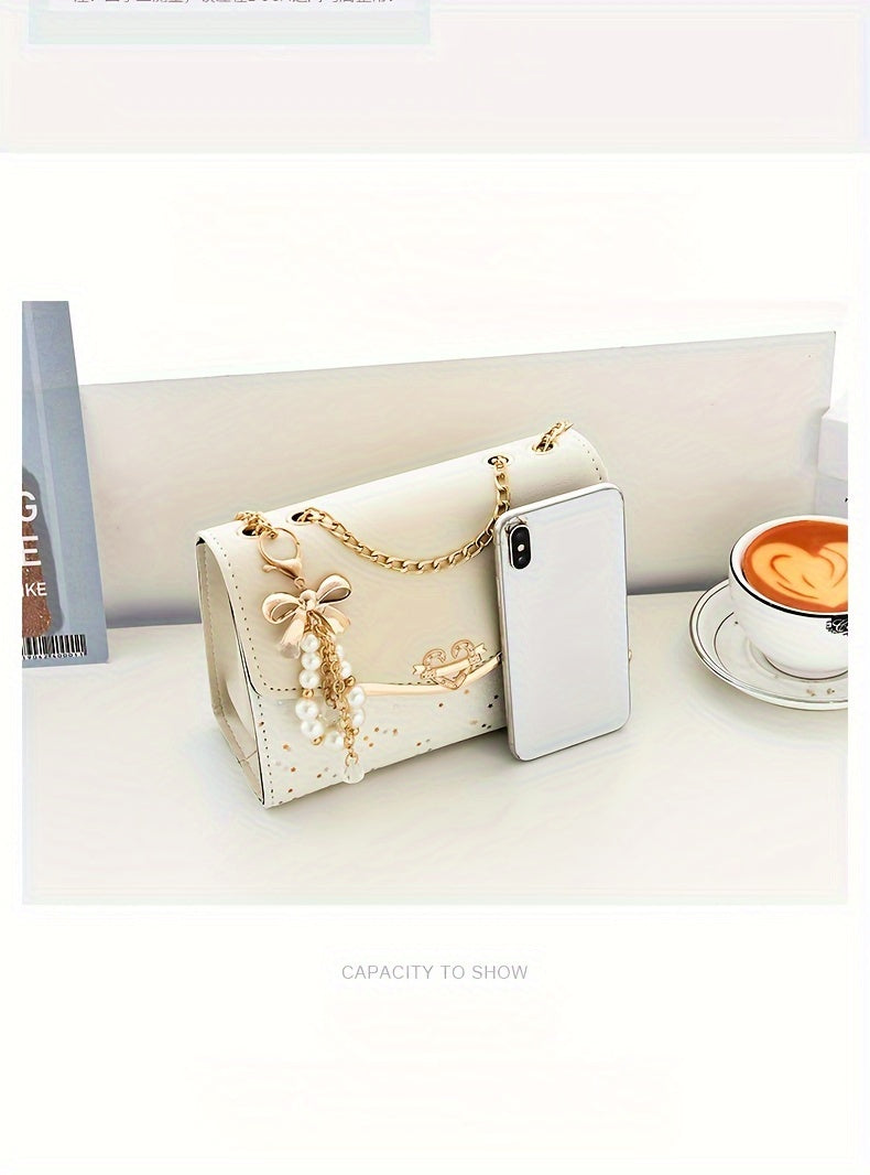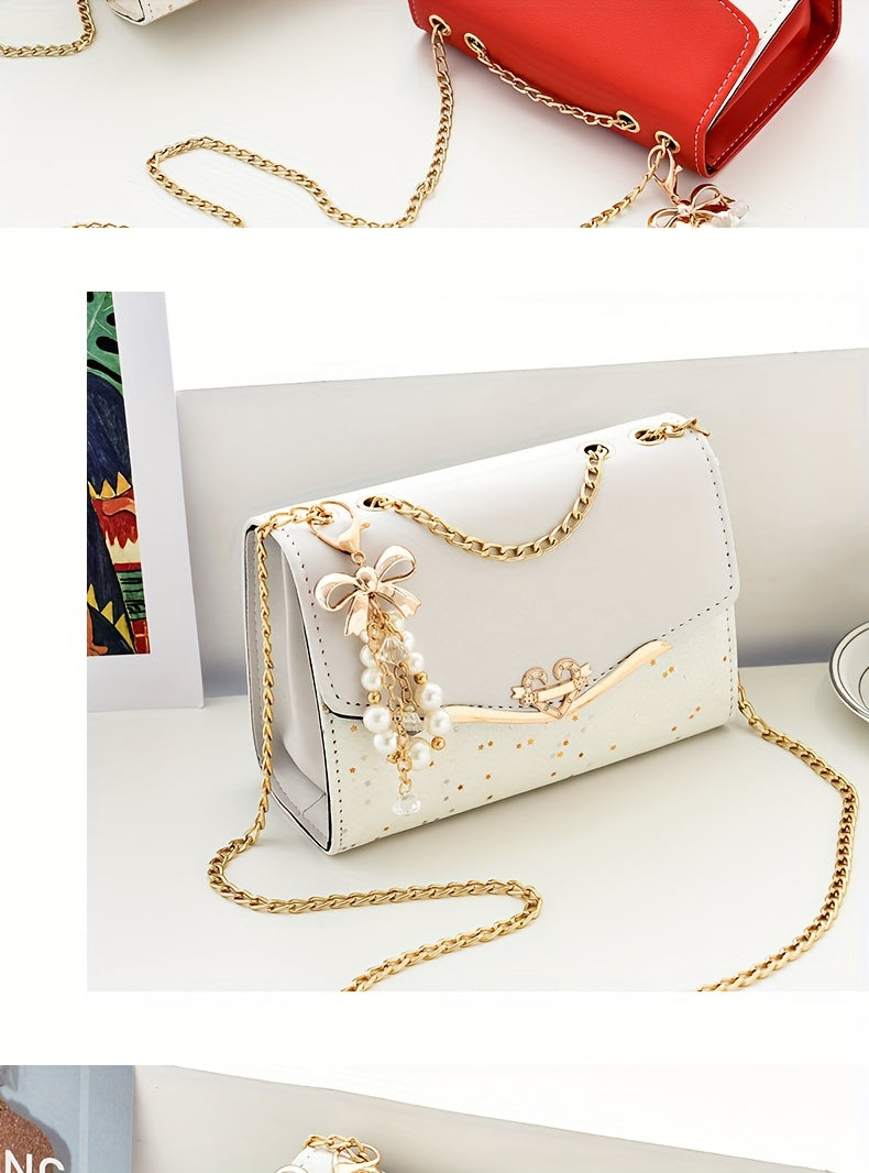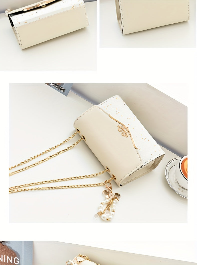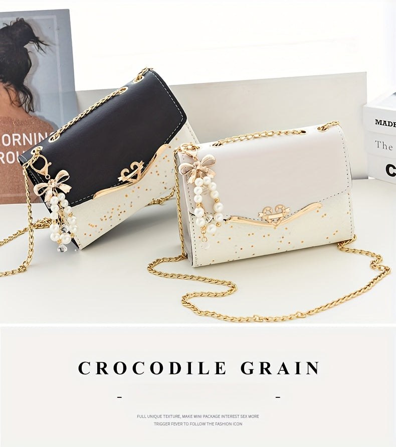 A Festive Mini Shoulder Bag with Shiny Details - Made of PU Material, Lightweight, Featuring an Adjustable Strap And Magnetic Closure, Perfect for Gifting to Family And Friends During The Holidays.