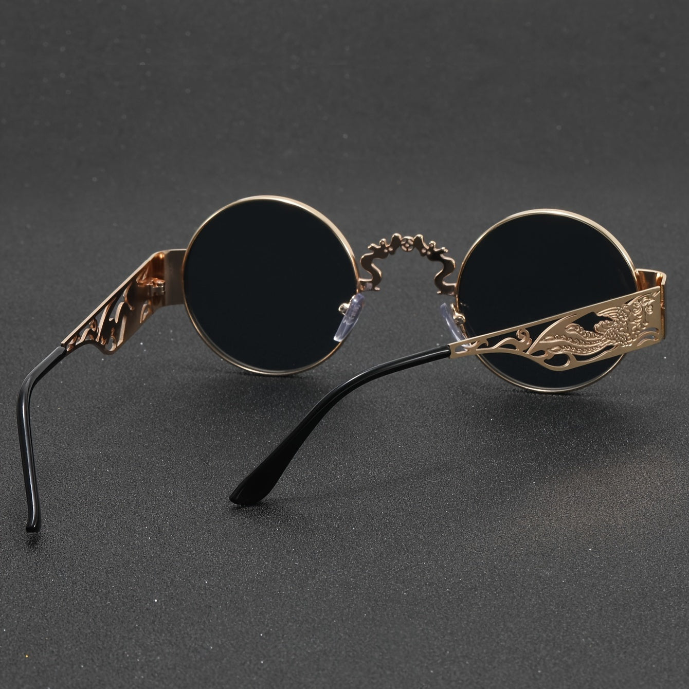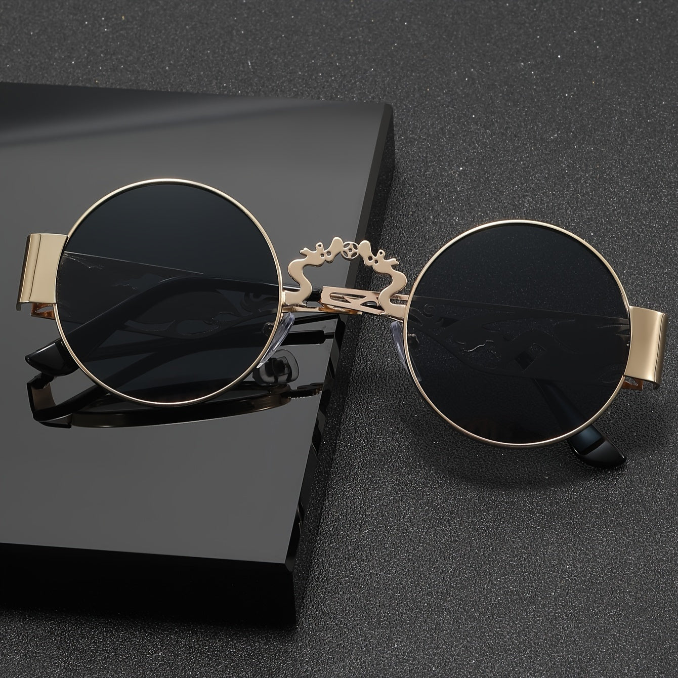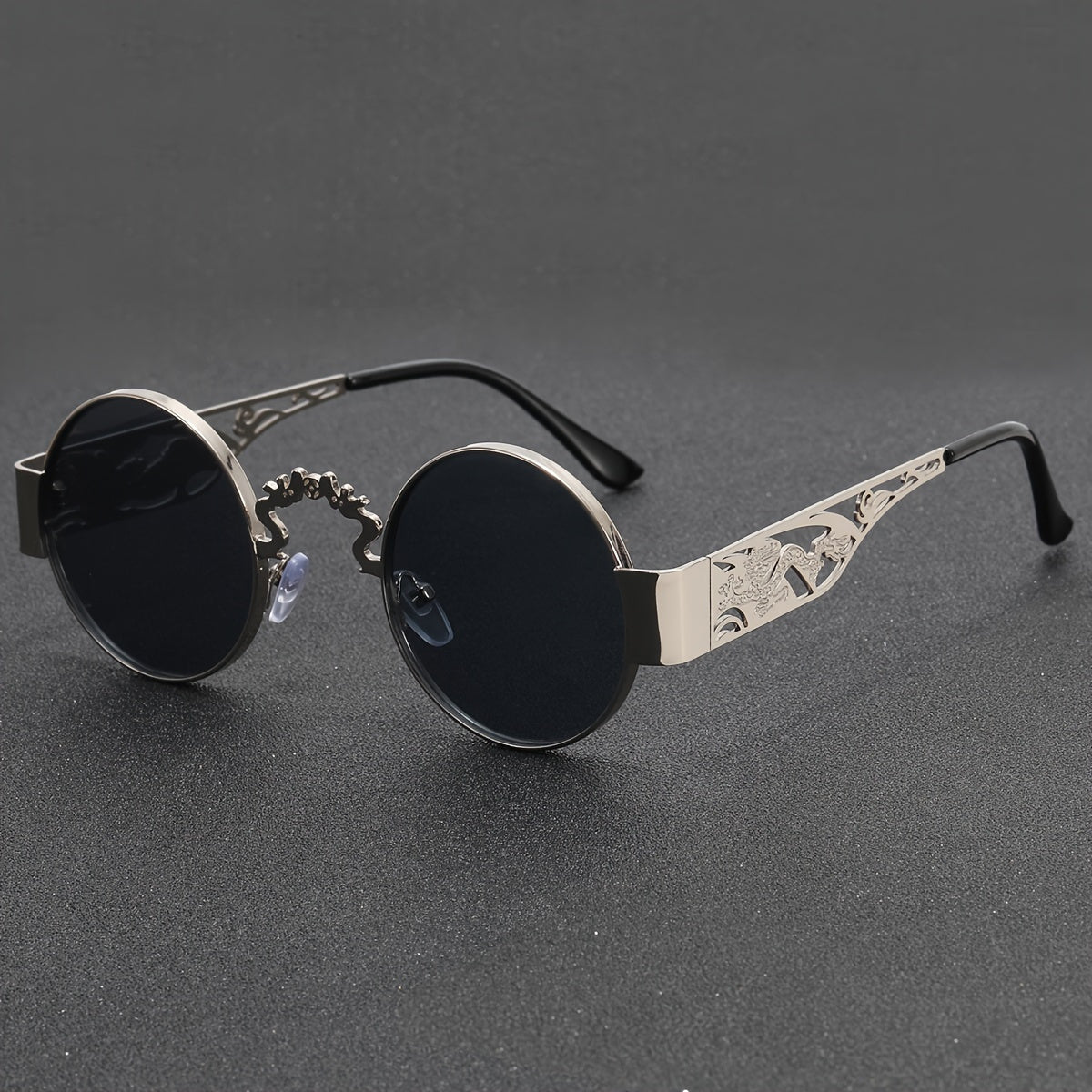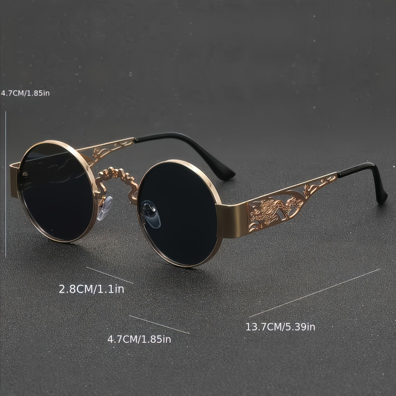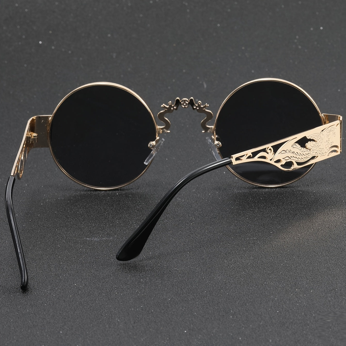 A Pair Of Men's Stainless Steel Retro Round Frame Glasses, Chinese Dragon And Phoenix Carving Hollow Arms, Casual Hip-hop Punk Street Party Fashion Trend Decorative Glasses, With PC Lenses
