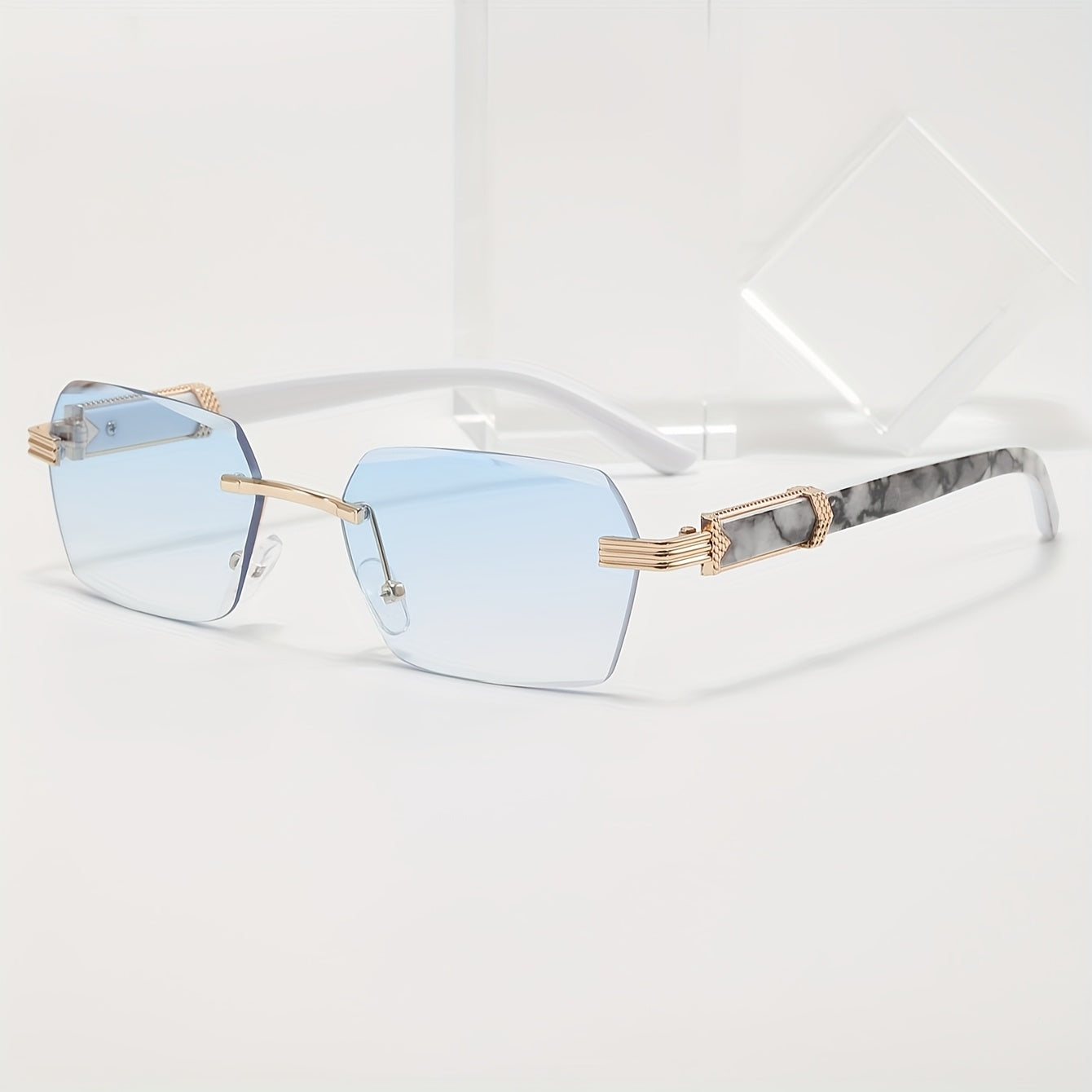 A Pair of Men'S Stylish Metal Square Frameless Glasses with Gradient Ocean Lenses, Perfect for Streetwear And Everyday Use for Trendy Guys in Europe And America.