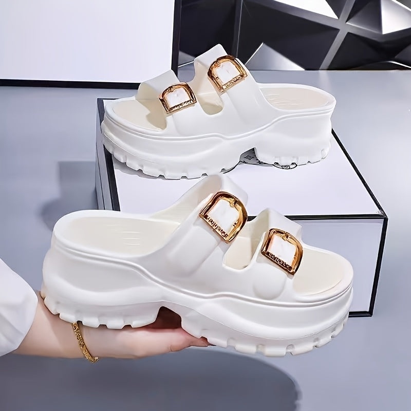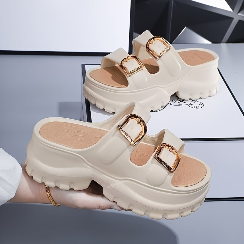 A pair of Women's new summer slippers, versatile and fashionable thick soles comfortable sandals, casual wedge EVA slippers for students, increase height and height for women commuting comfortable semi-slippers