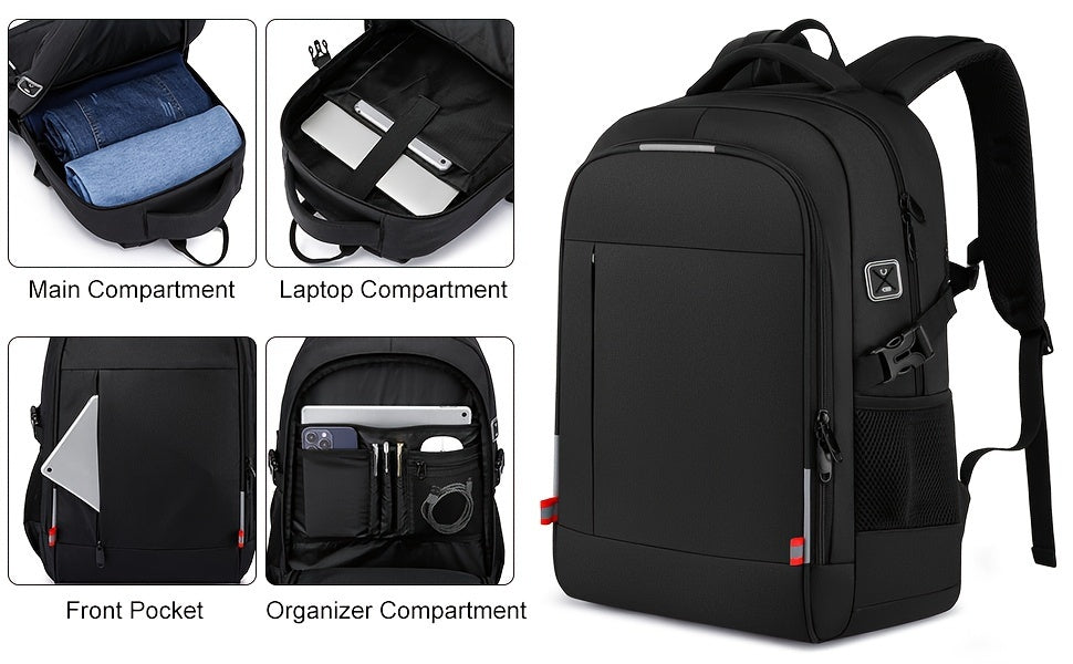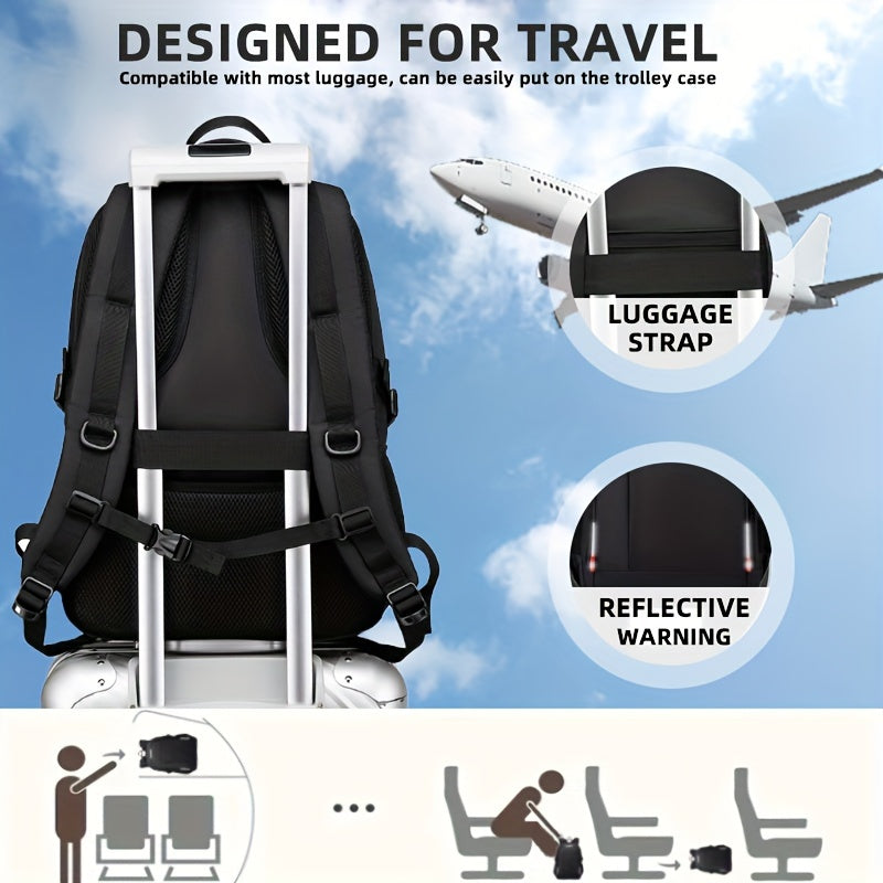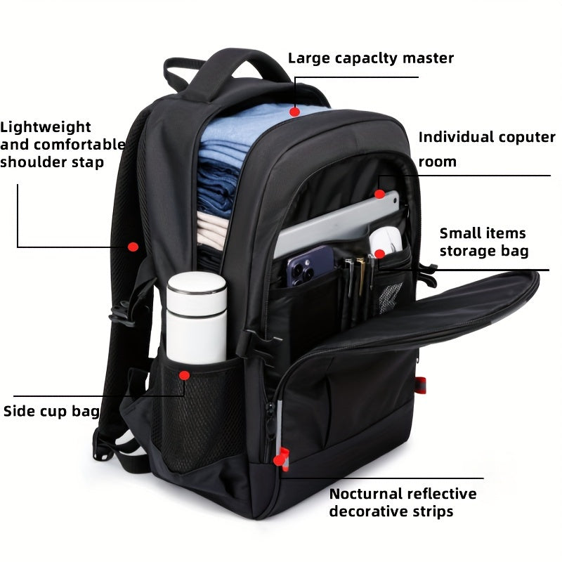 A Spacious, Minimalist, Lightweight, And Breathable Backpack Made of Oxford Cloth, Suitable for a 15.6-Inch Laptop. It Features a Luminous Safety Logo, Making It Ideal for Business Travel for Both Men And Women, As Well As fo