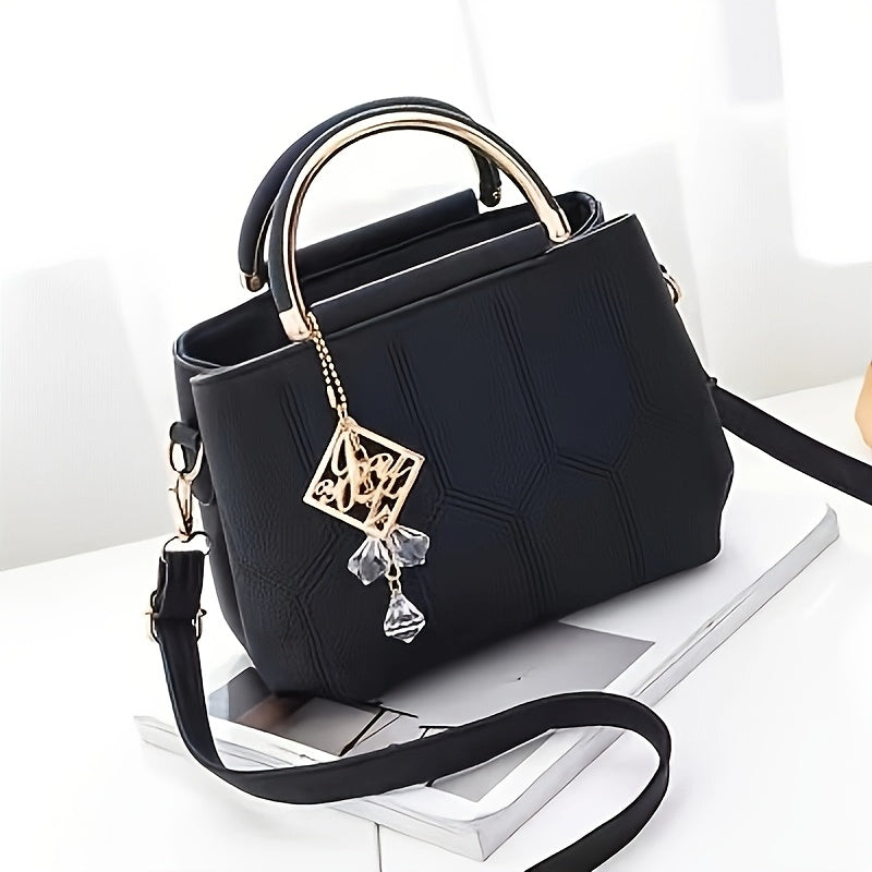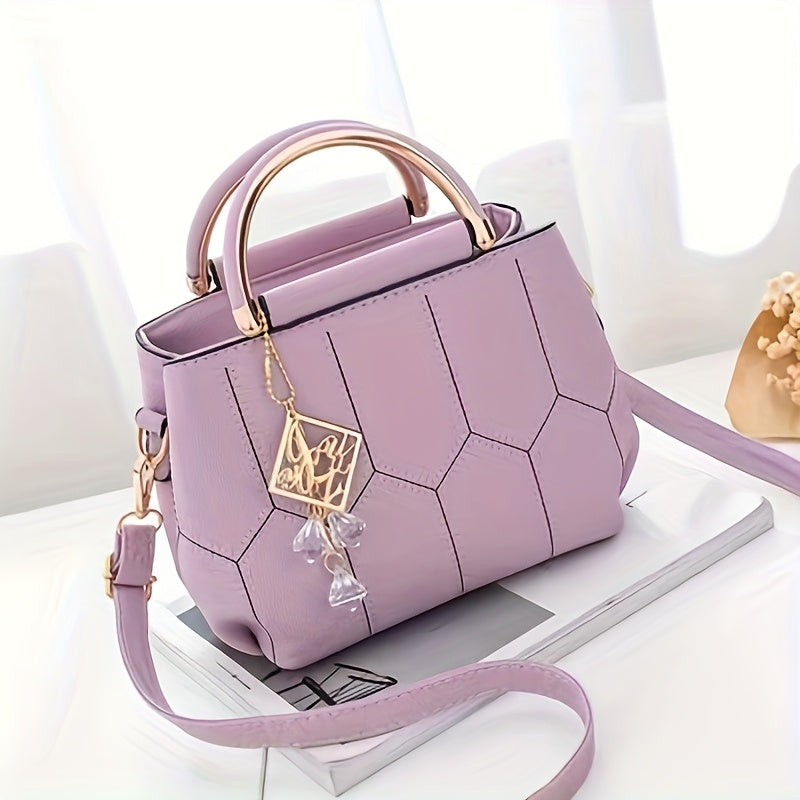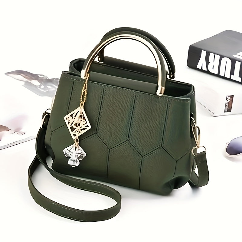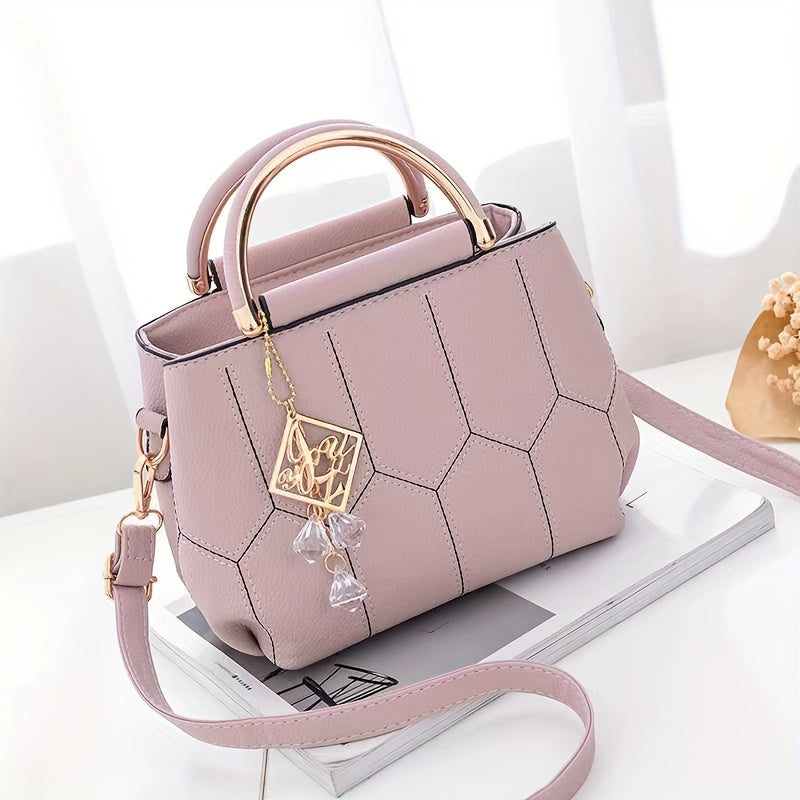 A Stylish Crossbody Bag for Women, Perfect for Everyday Needs, Featuring a Stitched Design, a Golden Chain, And a Decorative Stone.