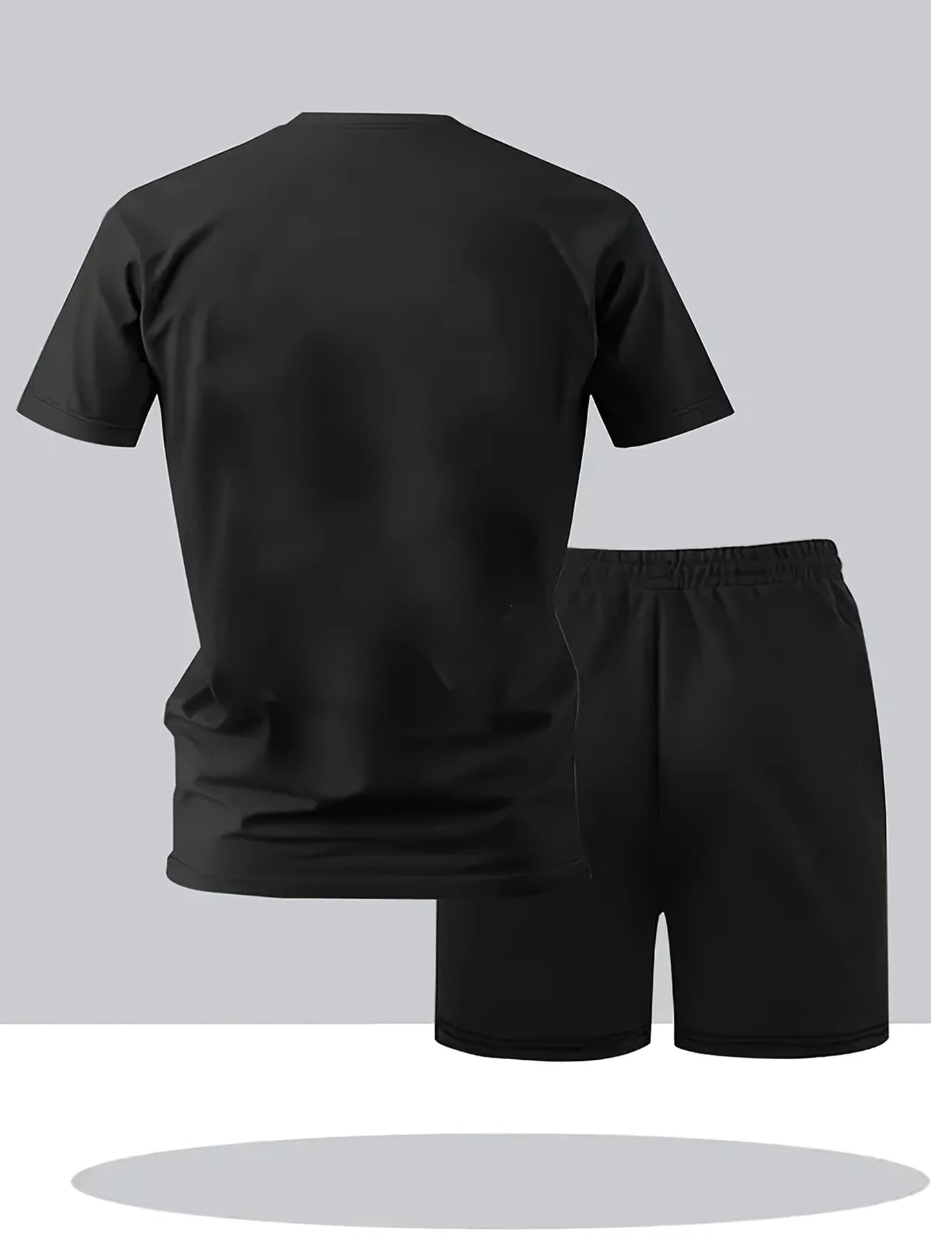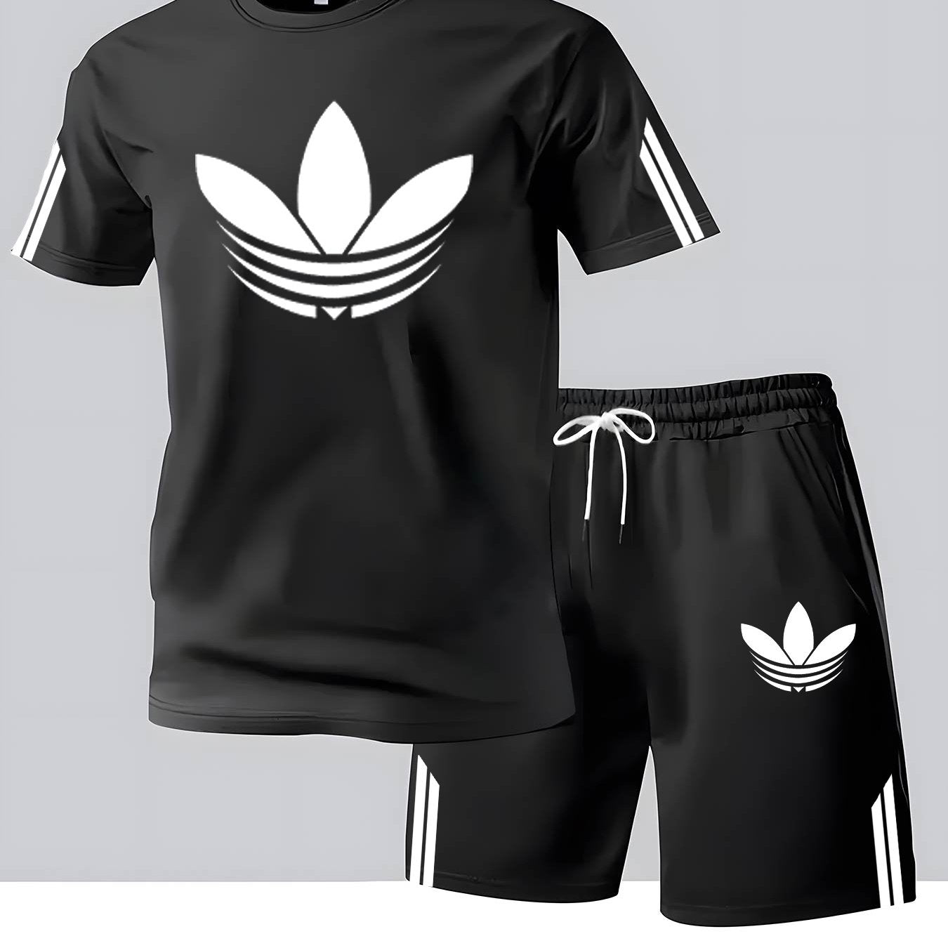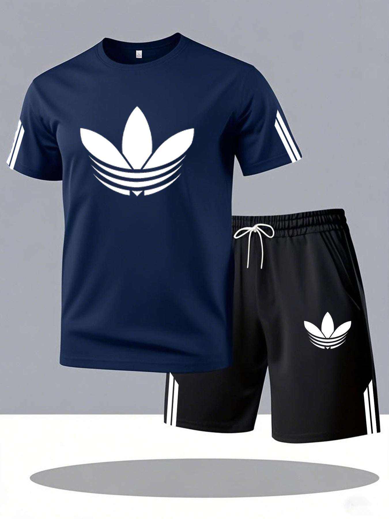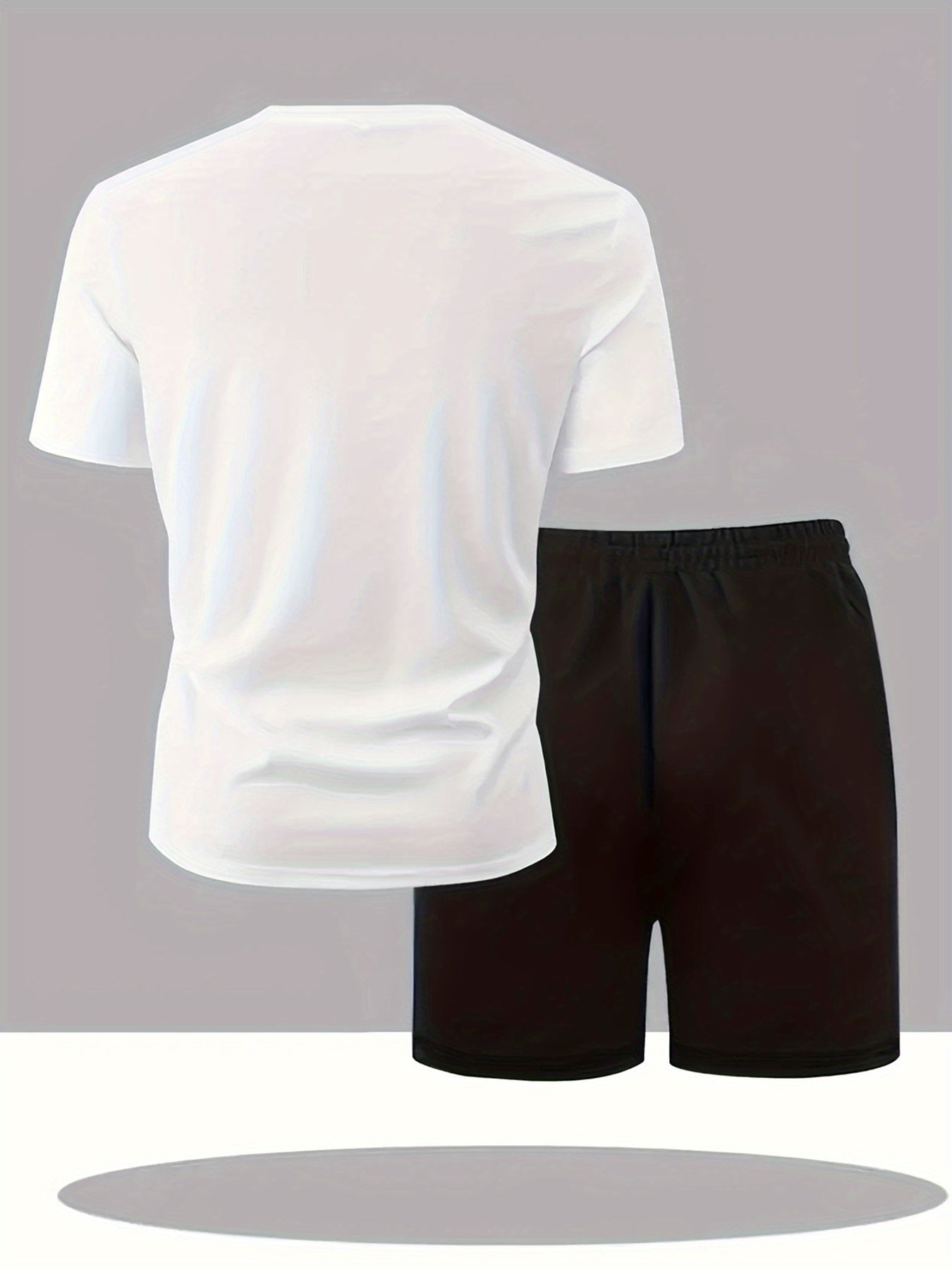 ADIDA Letter Set Short Sleeve + Shorts Two-Piece Men's Fashion Casual Round Neck T-Shirt Outfit, European Style Trendy Short Sleeve Set