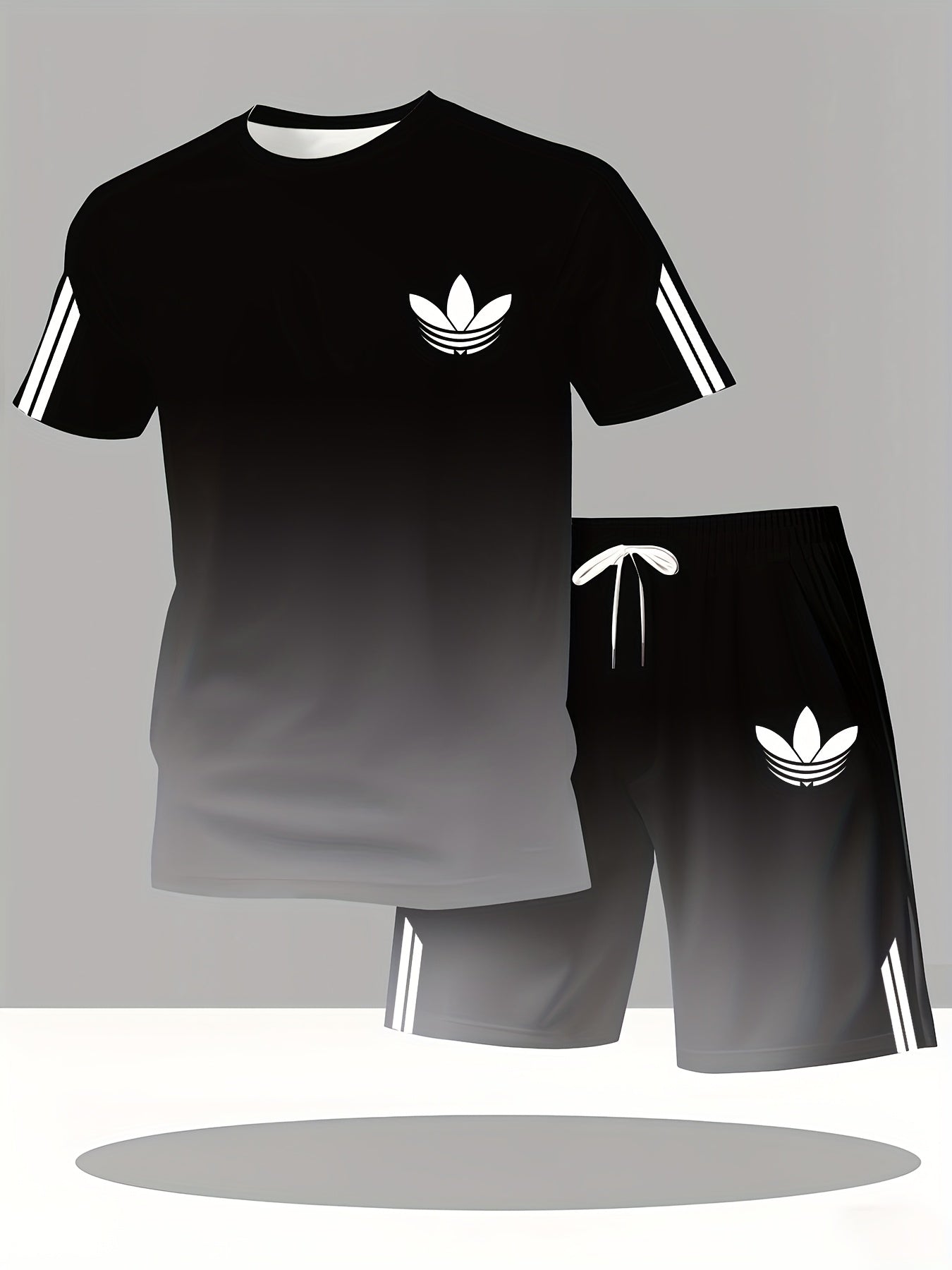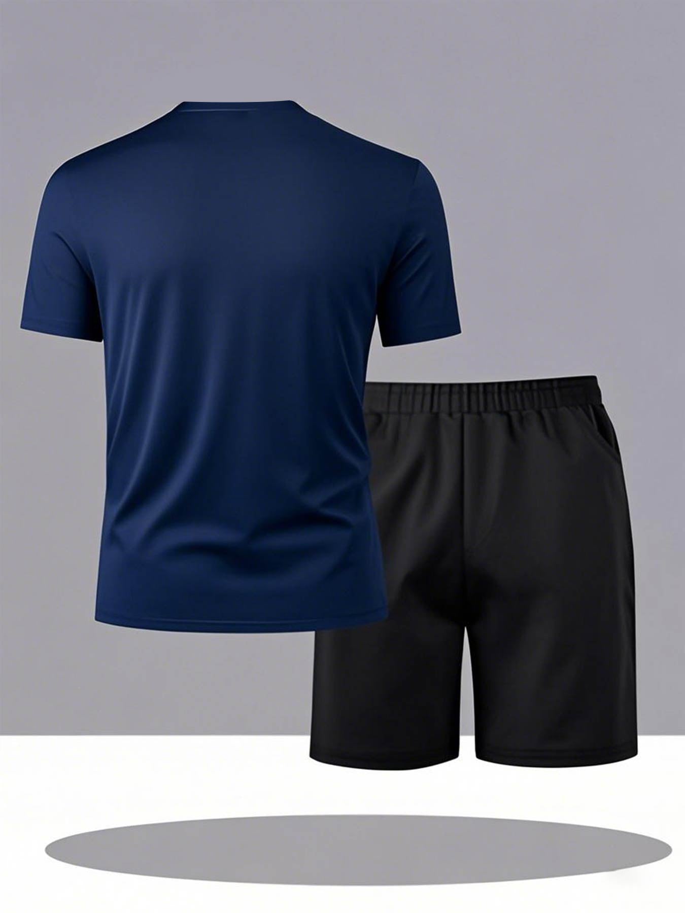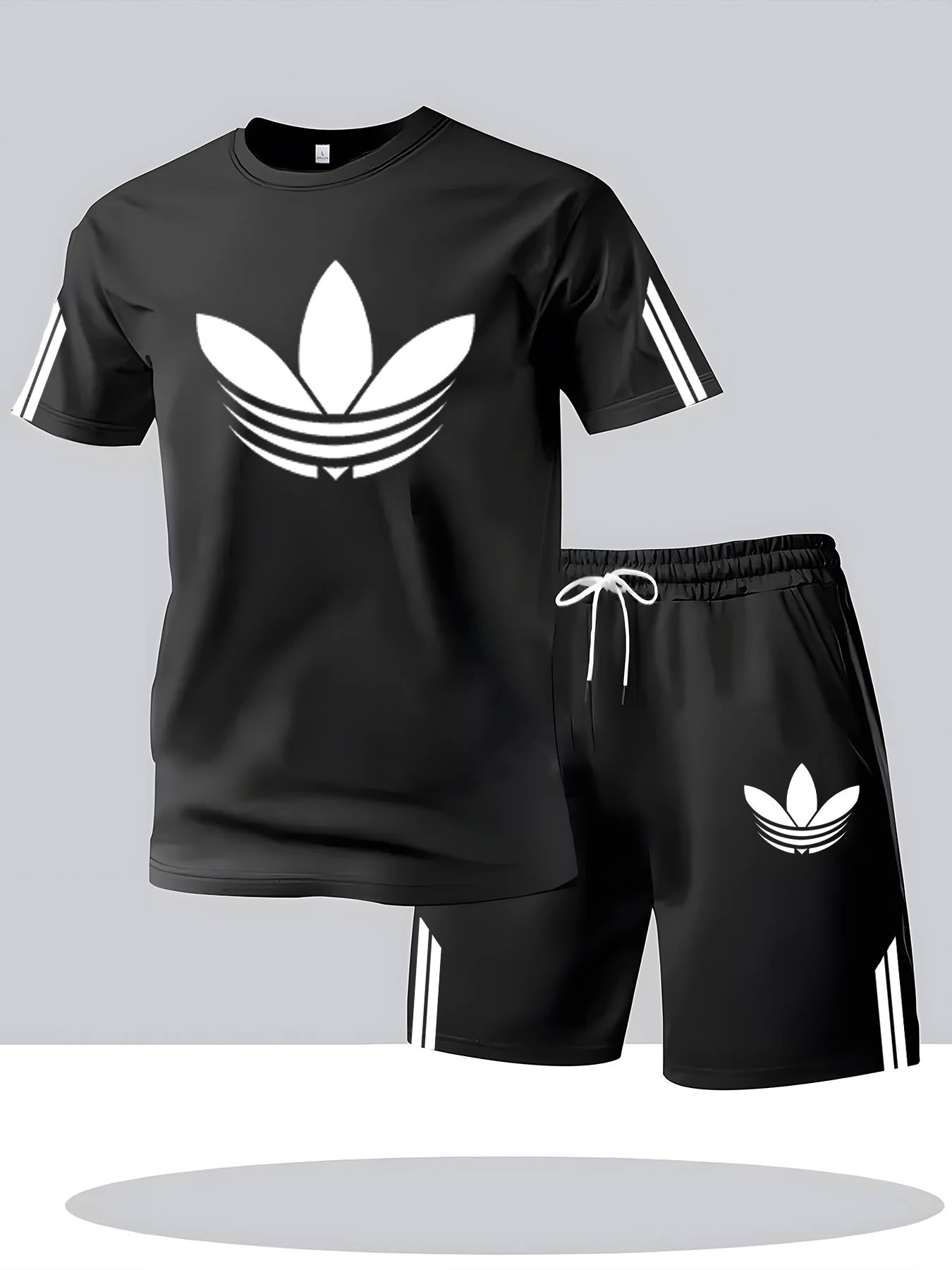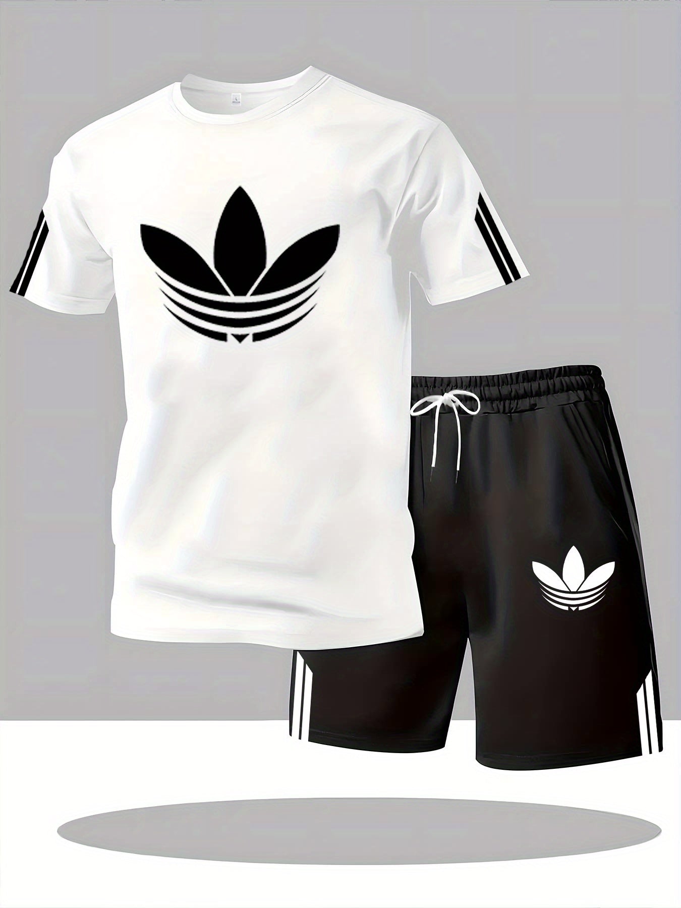 ADIDA Letter Set Short Sleeve + Shorts Two-Piece Men's Fashion Casual Round Neck T-Shirt Outfit, European Style Trendy Short Sleeve Set