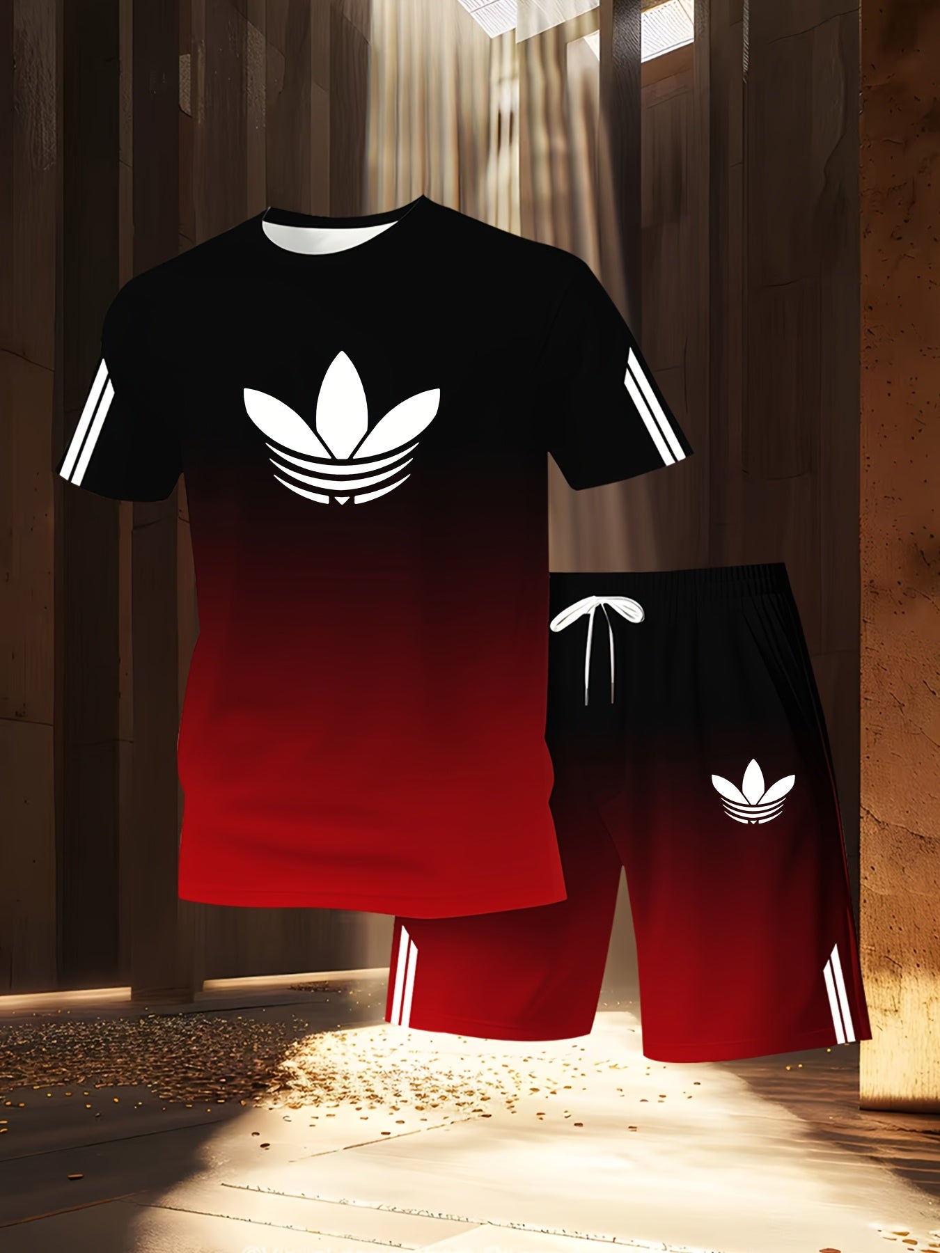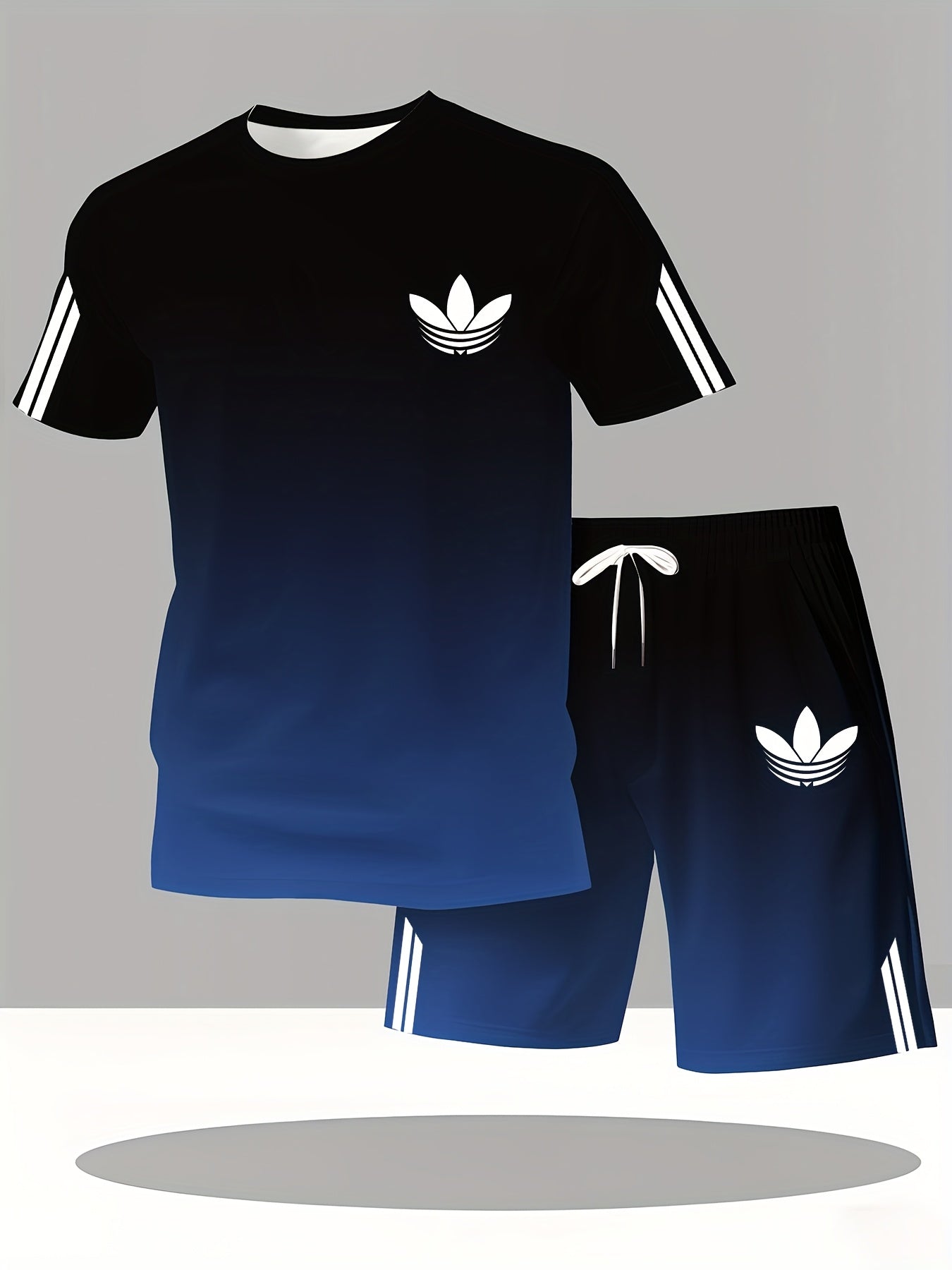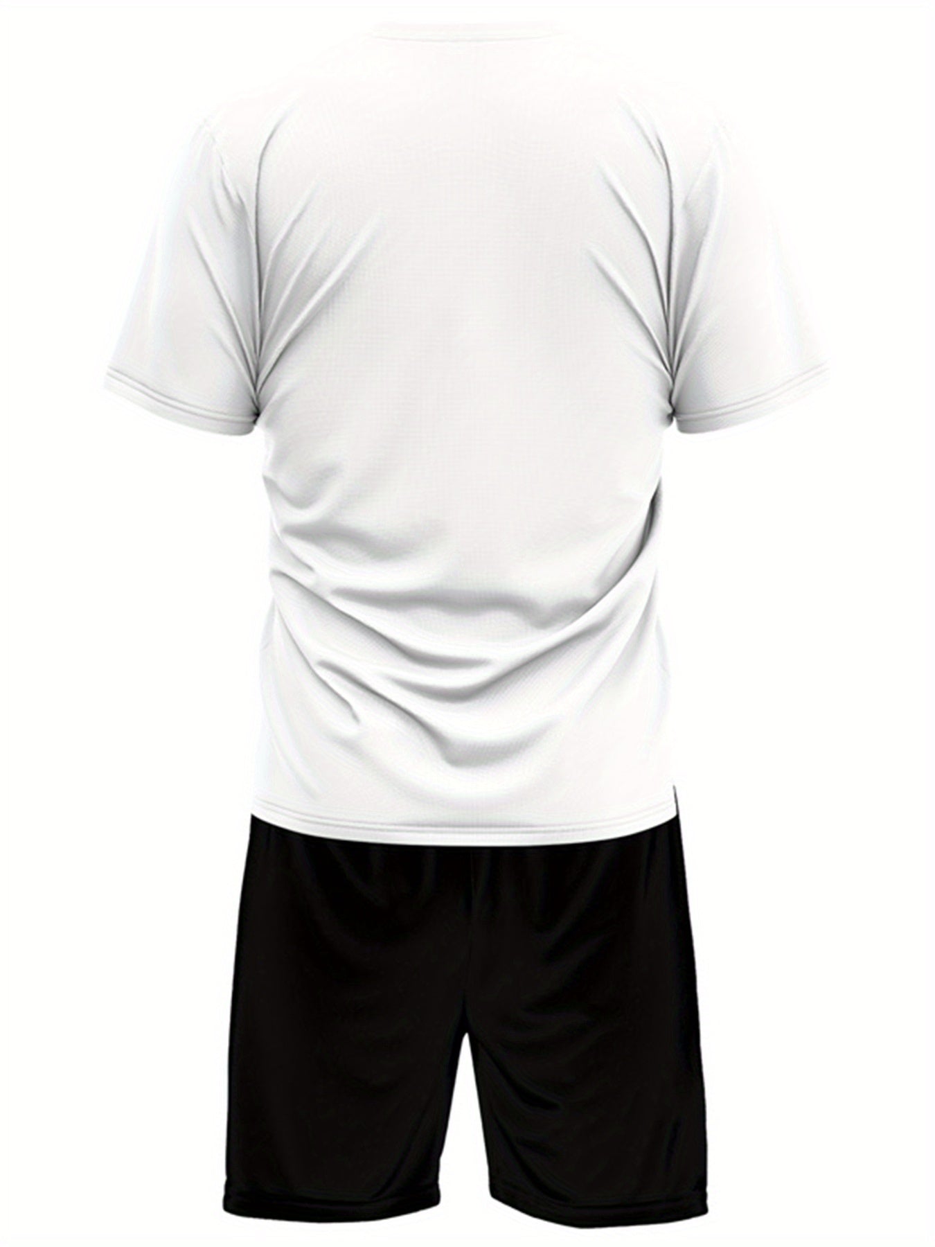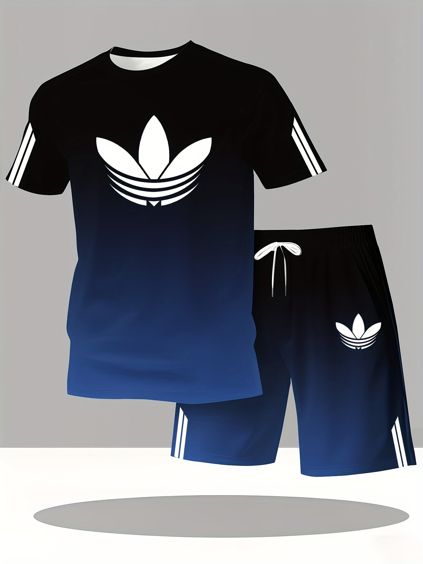 ADIDA Letter Set Short Sleeve + Shorts Two-Piece Men's Fashion Casual Round Neck T-Shirt Outfit, European Style Trendy Short Sleeve Set