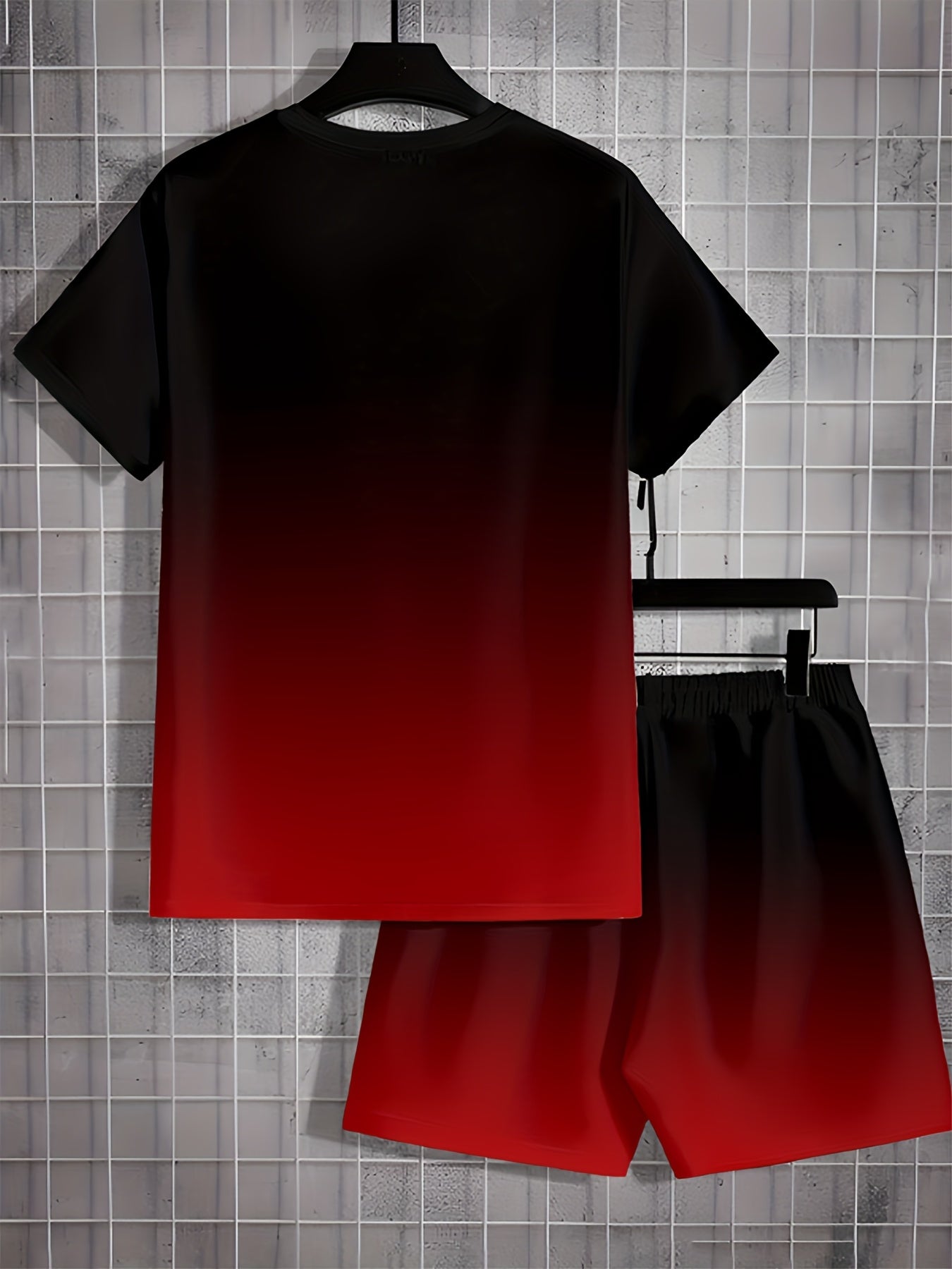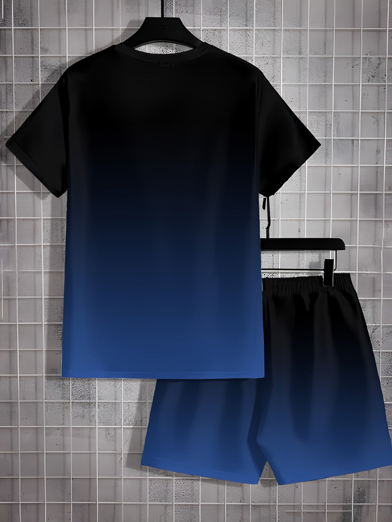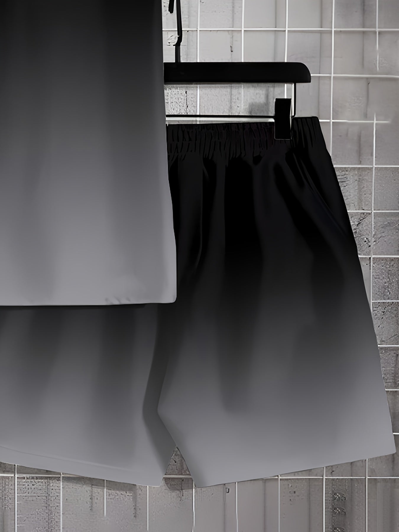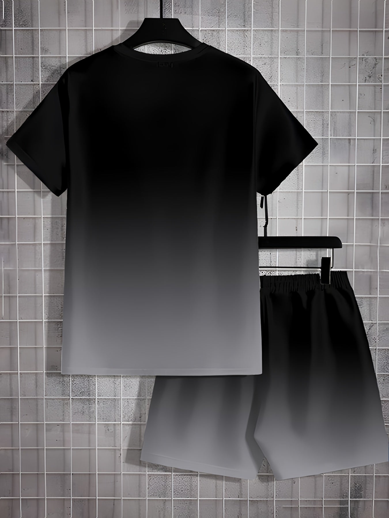 ADIDA Letter Set Short Sleeve + Shorts Two-Piece Men's Fashion Casual Round Neck T-Shirt Outfit, European Style Trendy Short Sleeve Set