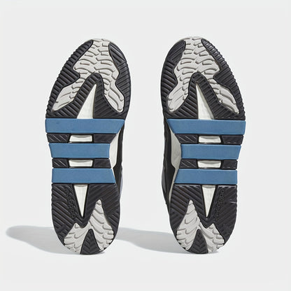 Adidas Niteball Low-Top Sneakers for Men Women - Striped Casual Shoes with Genuine Leather Upper, Breathable Fabric Lining Rubber Sole, Black/Blue/Orange Accents (FZ5742), Athletic Footwear, Modern Triptych Design, Durabl