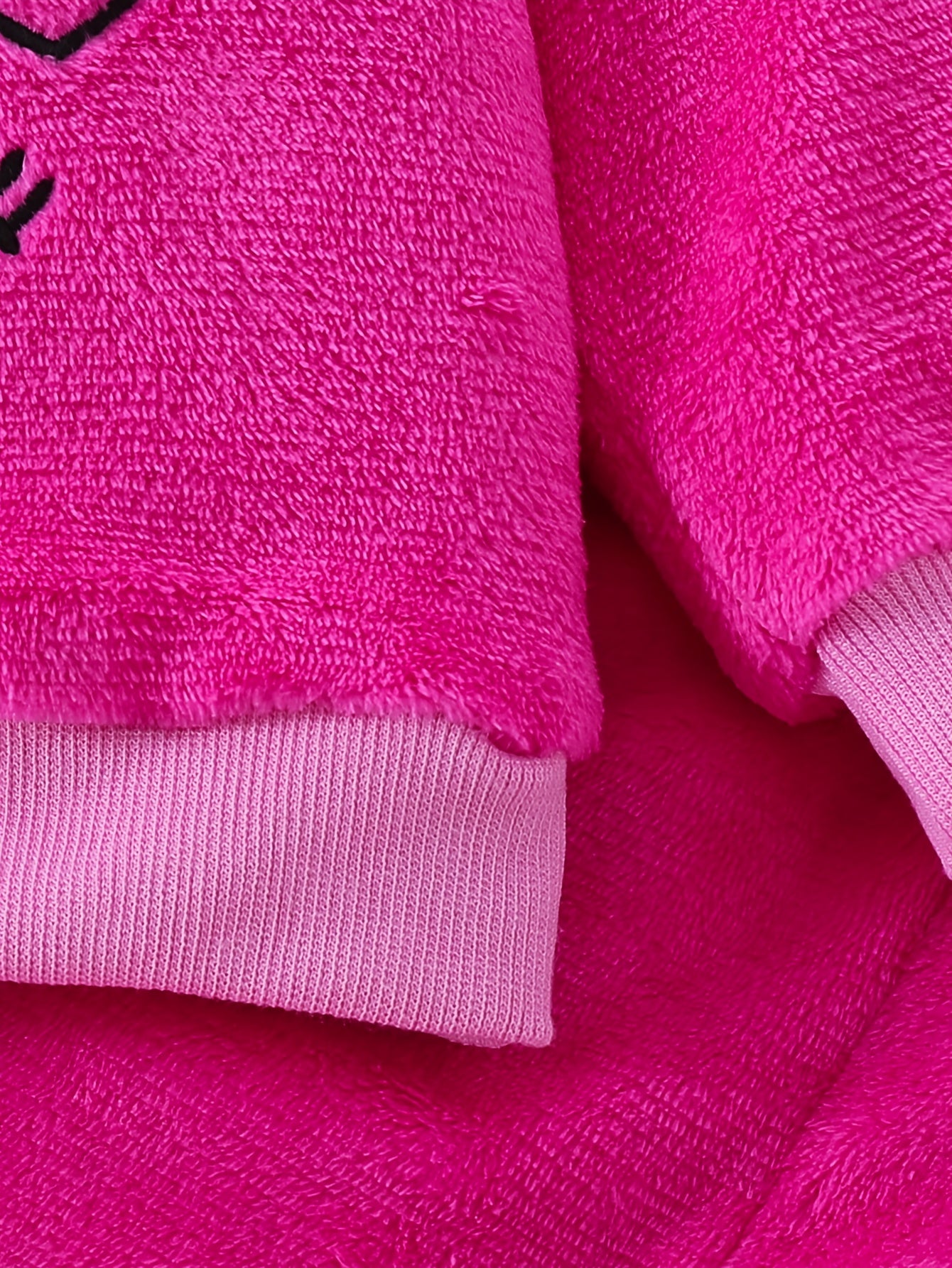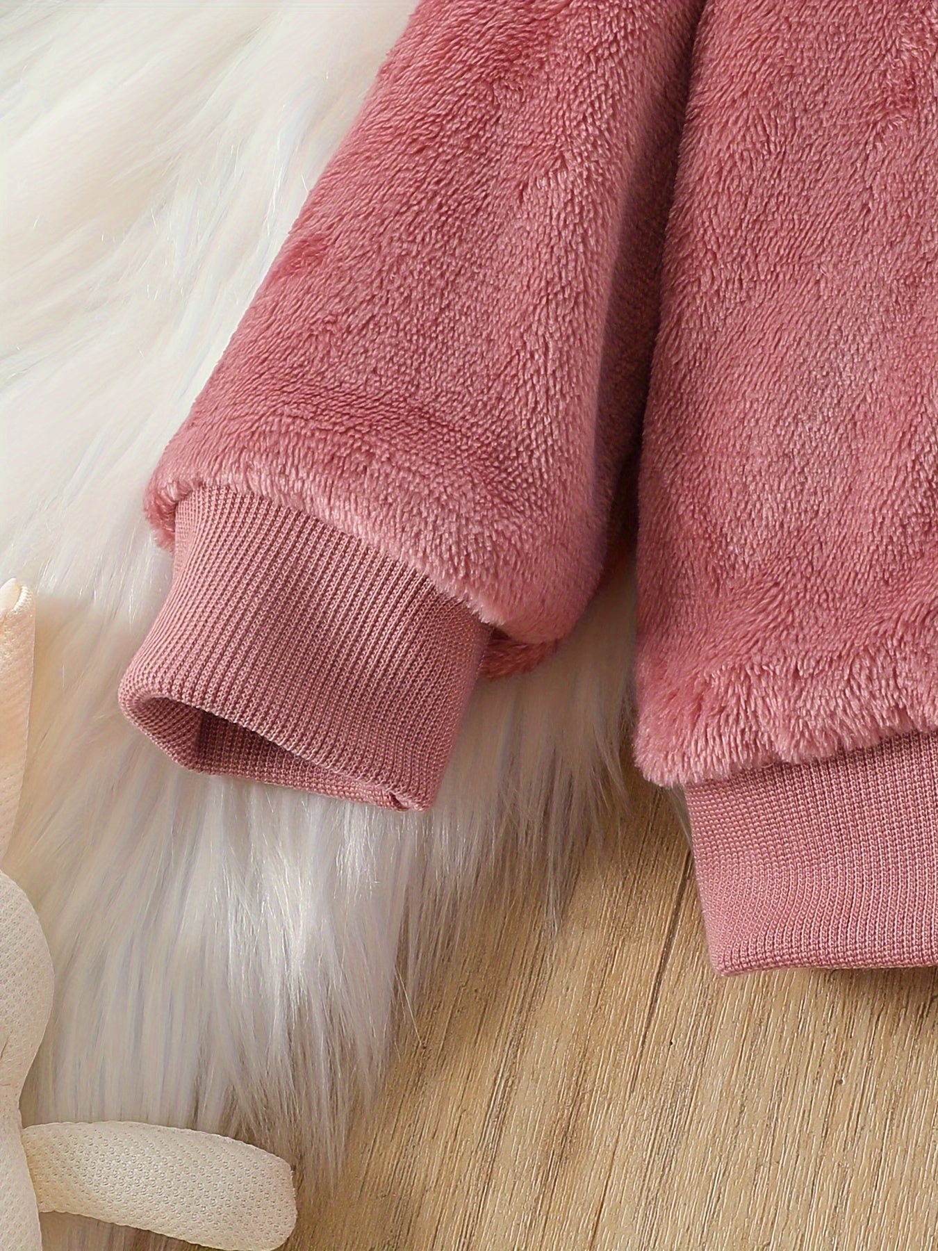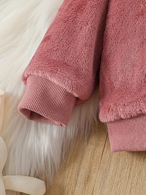 Adorable Cartoon Rabbit Embroidered Two-Piece Set for Youngsters - Soft Coral Fleece Outfit with Matching Pants, Perfect for Fall/Winter Casual Wear, Youngsters'S Playwear|Playful Design|Stretchy Fabric, Youngsters Girl Cloth