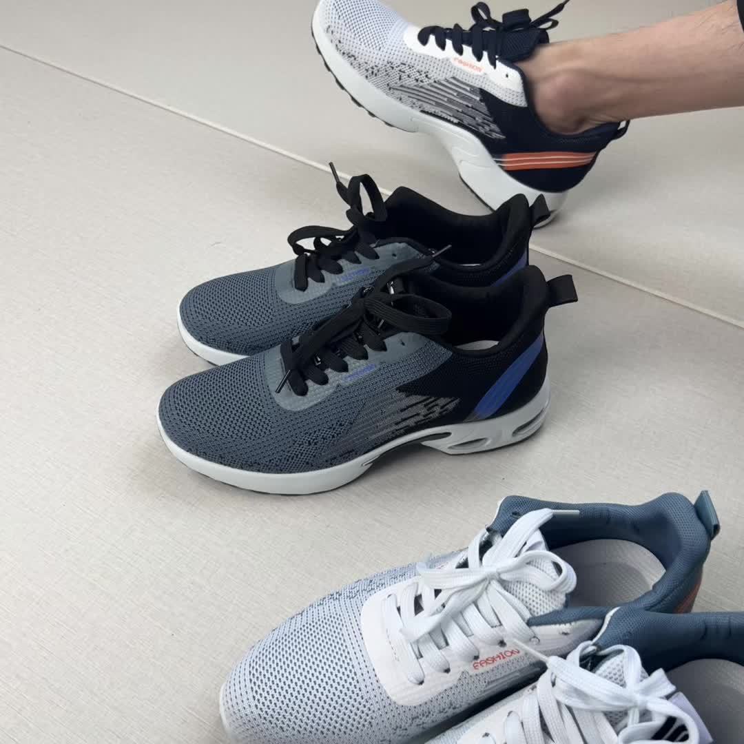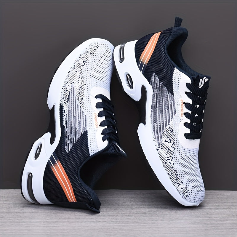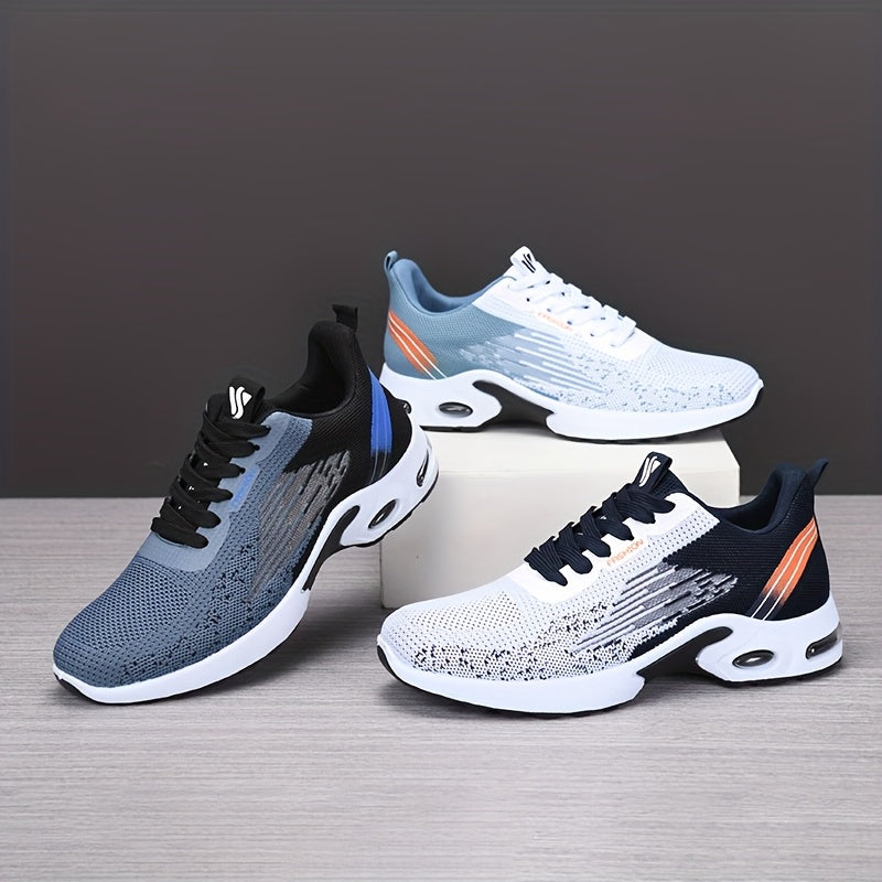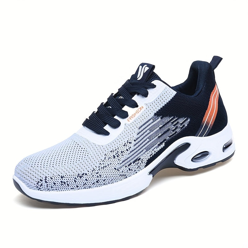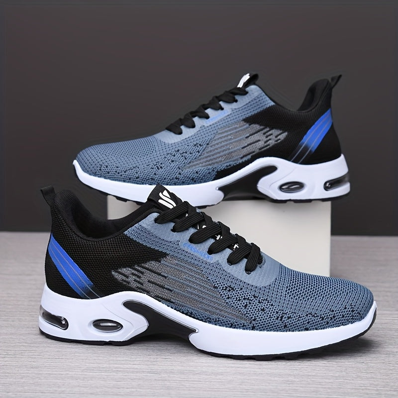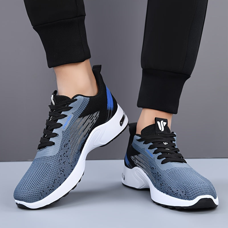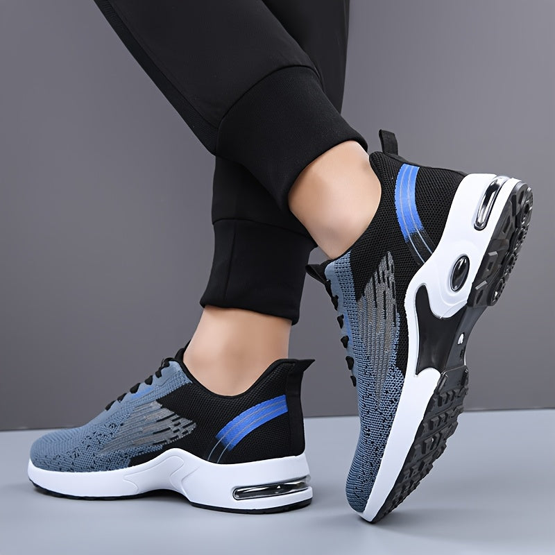 All-Season Breathable Knit Men'S Shoes with Cushioning Air Cushion for Sports, Lightweight And Soft Elastic Running Fitness Shoes, Versatile for Daily Commuting, Lace-Up, Low Top, Fabric Upper, Fabric Inner, PVC Sole, Fabric