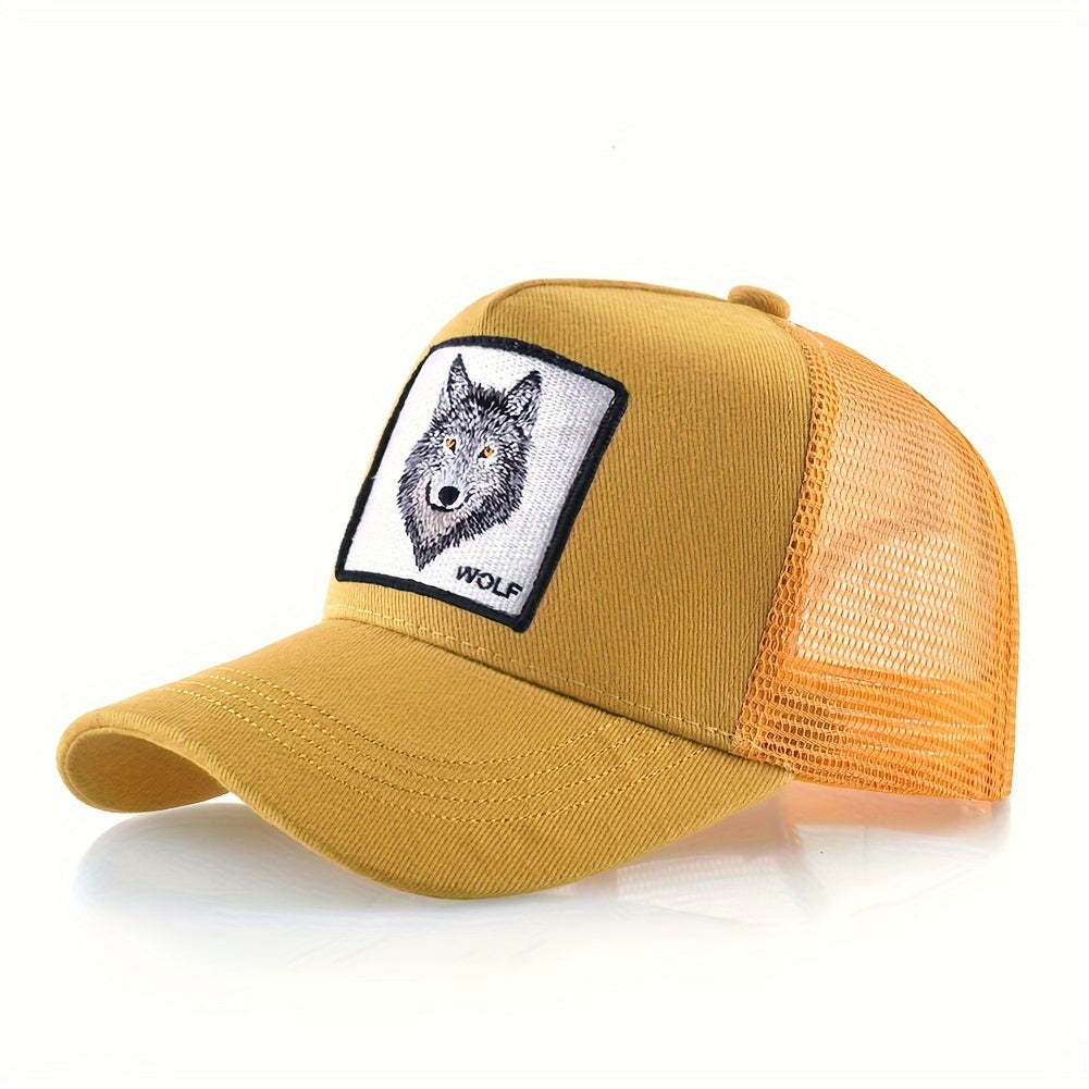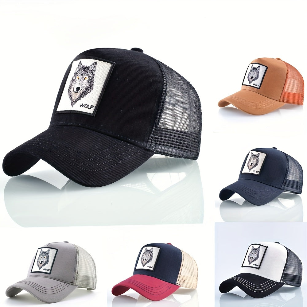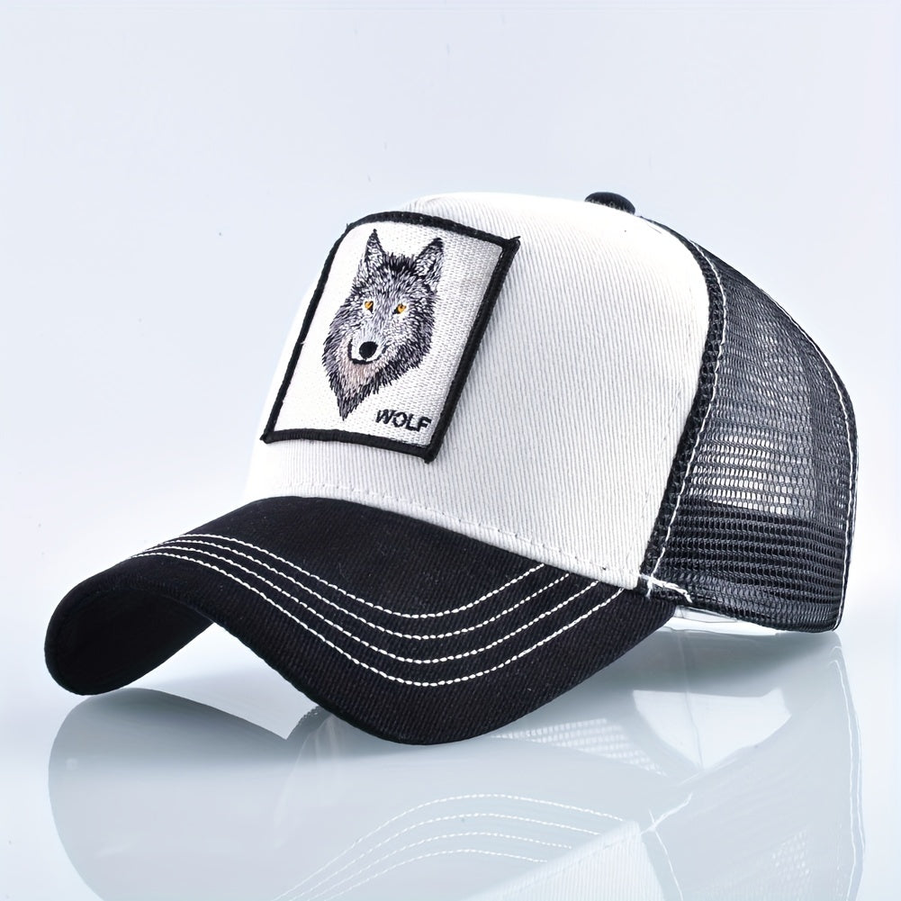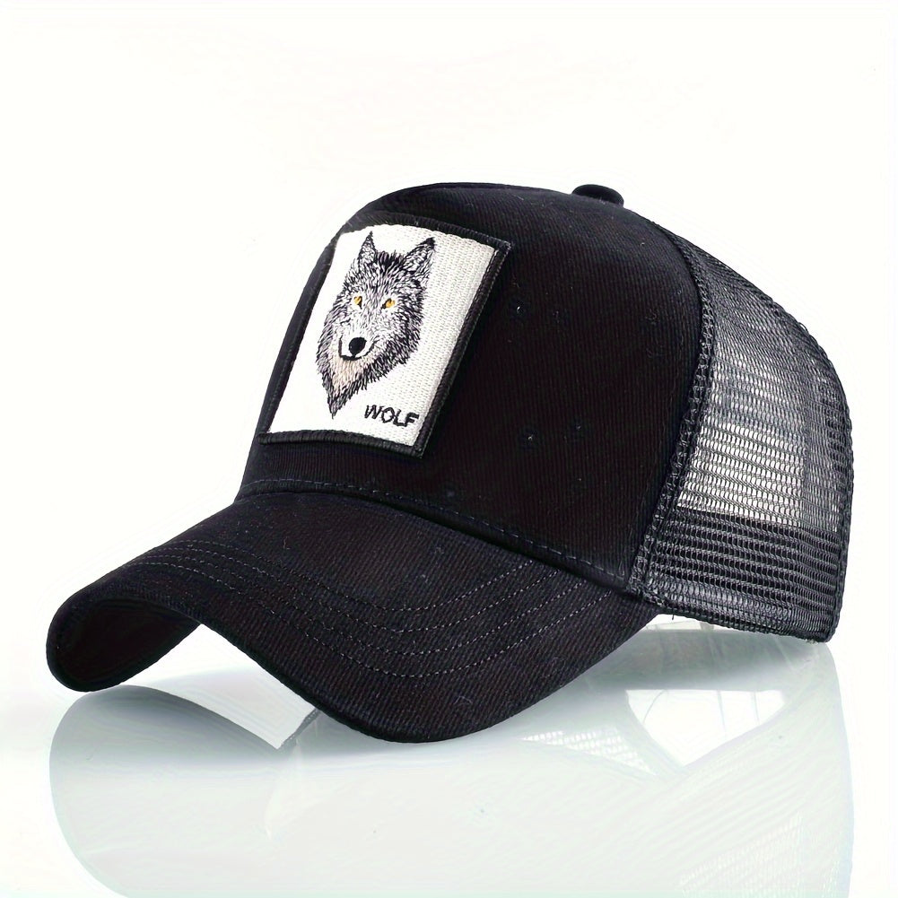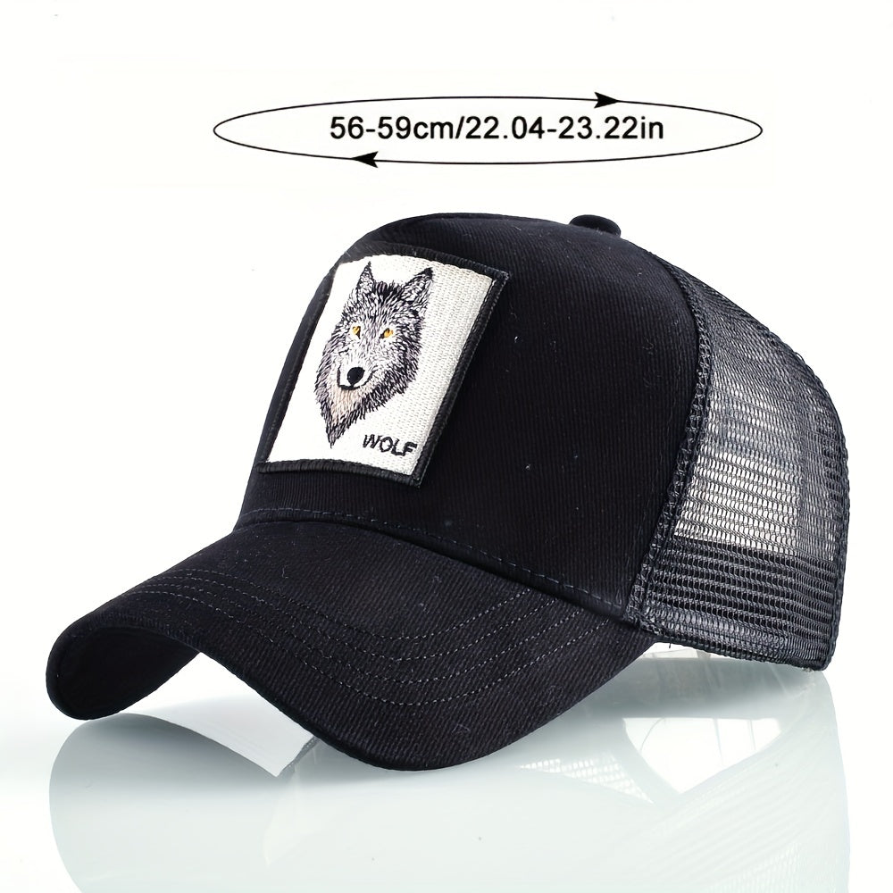 Animal Caps Trucker Hat Men Black Baseball Cap Women White Baseball Cap Men Wolf Trucker Cap Breathable Mesh Summer Baseball Caps Men'S & Women'S Wolf Embroidery Snapback Trucker Hat Fitted Outdoor Sports Adjustable Cap Gorra