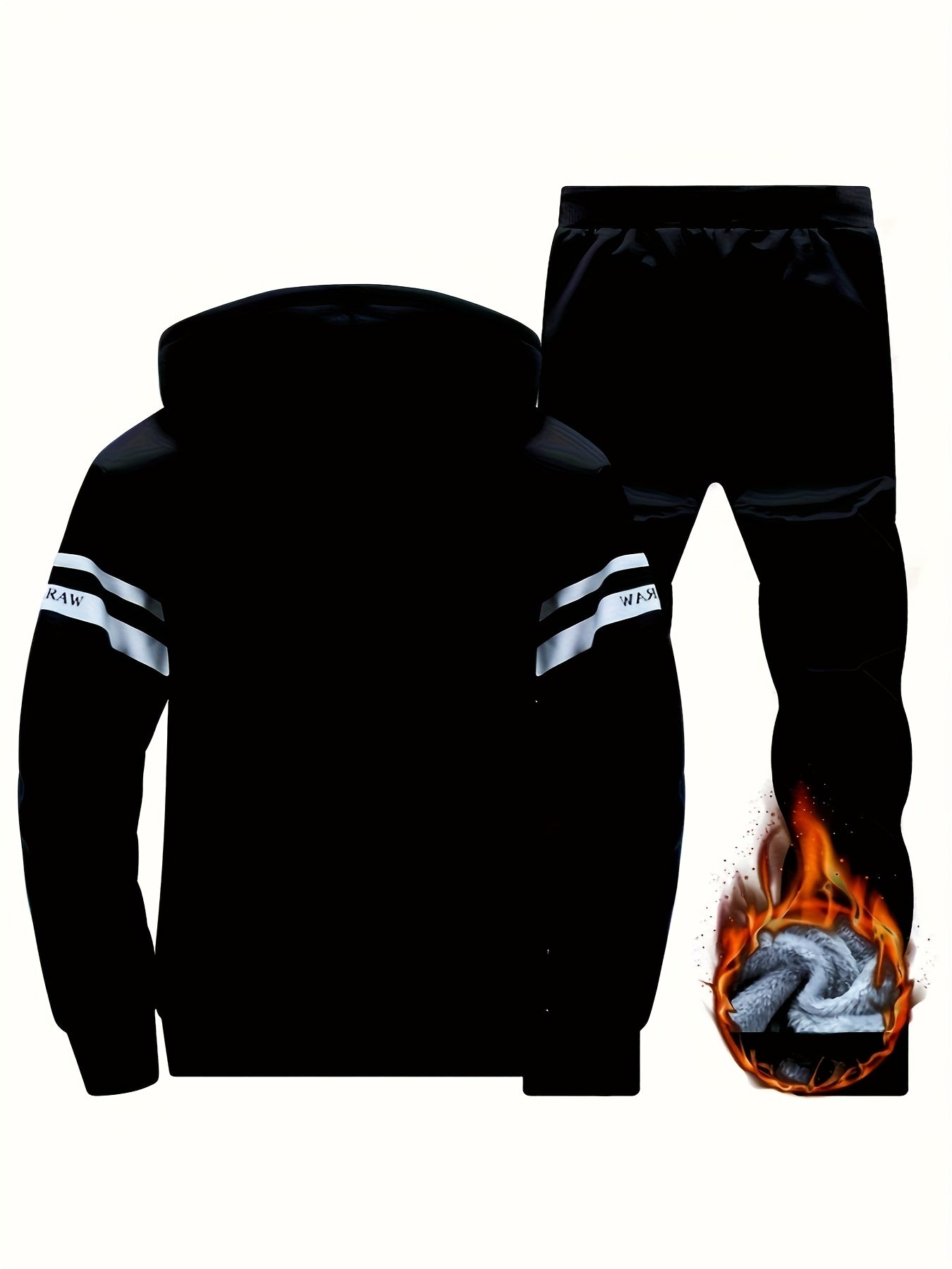 Autumn and Winter Men'S Sports Casual Suit, Men'S Velvet Thickened Sports Suit, Hooded Opening Fitness Suit, Warm Home Suit, Two-piece Set
