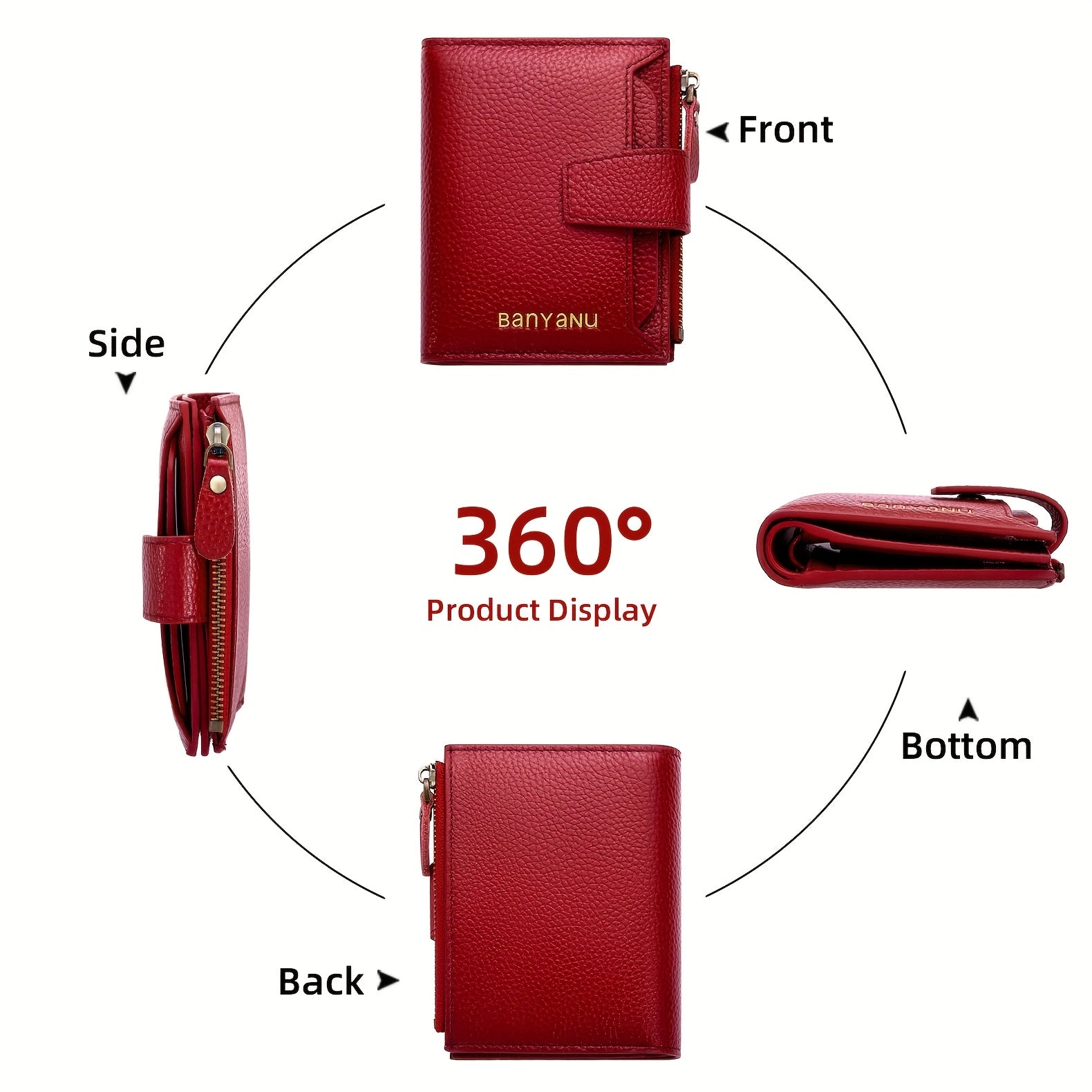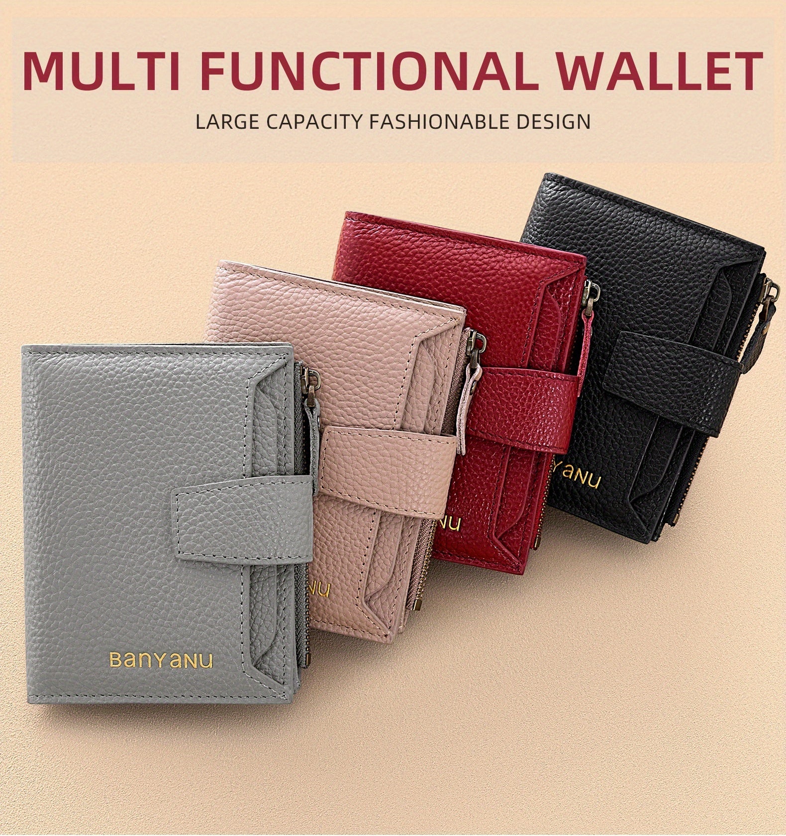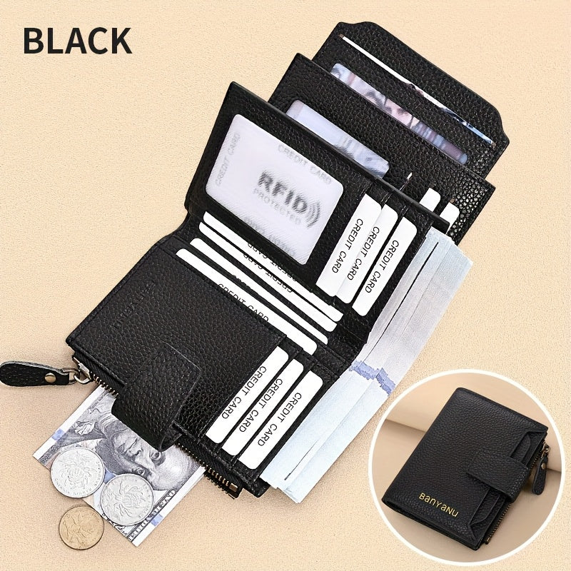 BANYANU Women'S Genuine Faux Leather Wallet - Red Lychee Grain Texture, Multi-Card Slots, Zippered Coin Pocket, Detachable ID Window, Compact Design for Everyday Use, Secure Coin Storage | Stylish Wallet | Synthetic