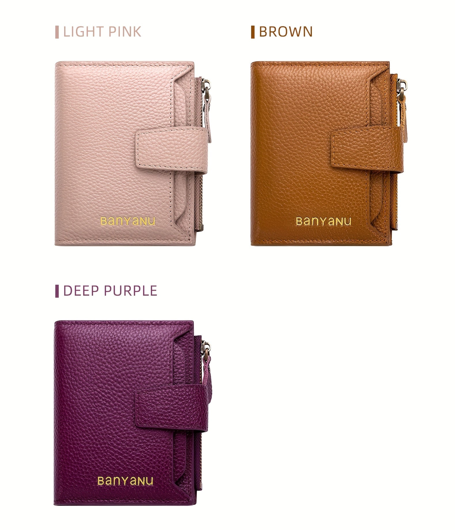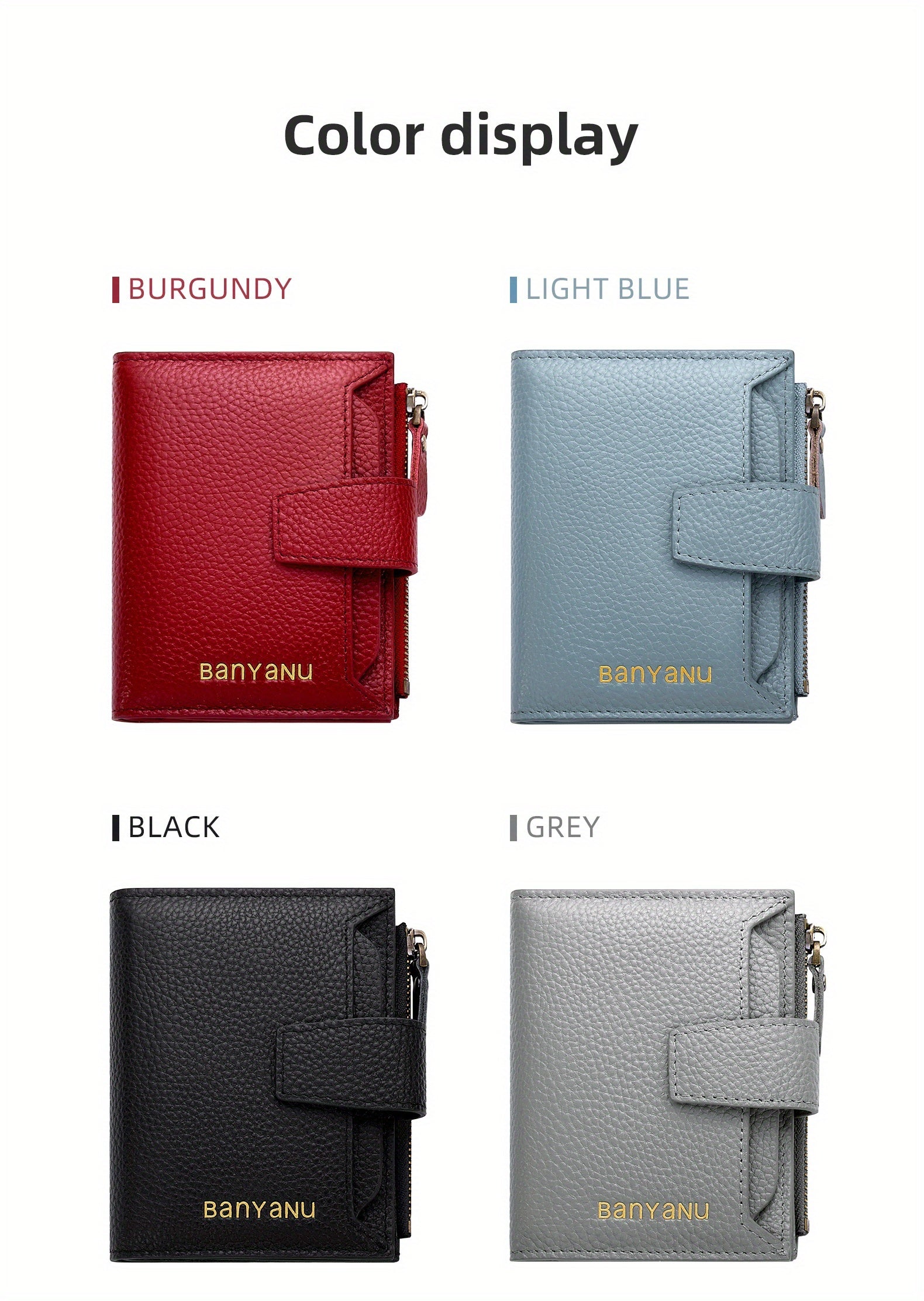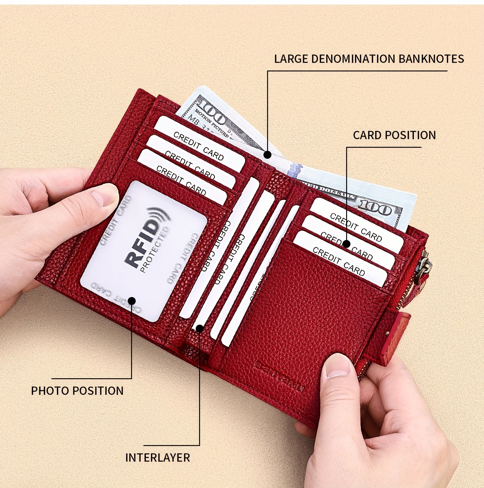 BANYANU Women'S Genuine Faux Leather Wallet - Red Lychee Grain Texture, Multi-Card Slots, Zippered Coin Pocket, Detachable ID Window, Compact Design for Everyday Use, Secure Coin Storage | Stylish Wallet | Synthetic