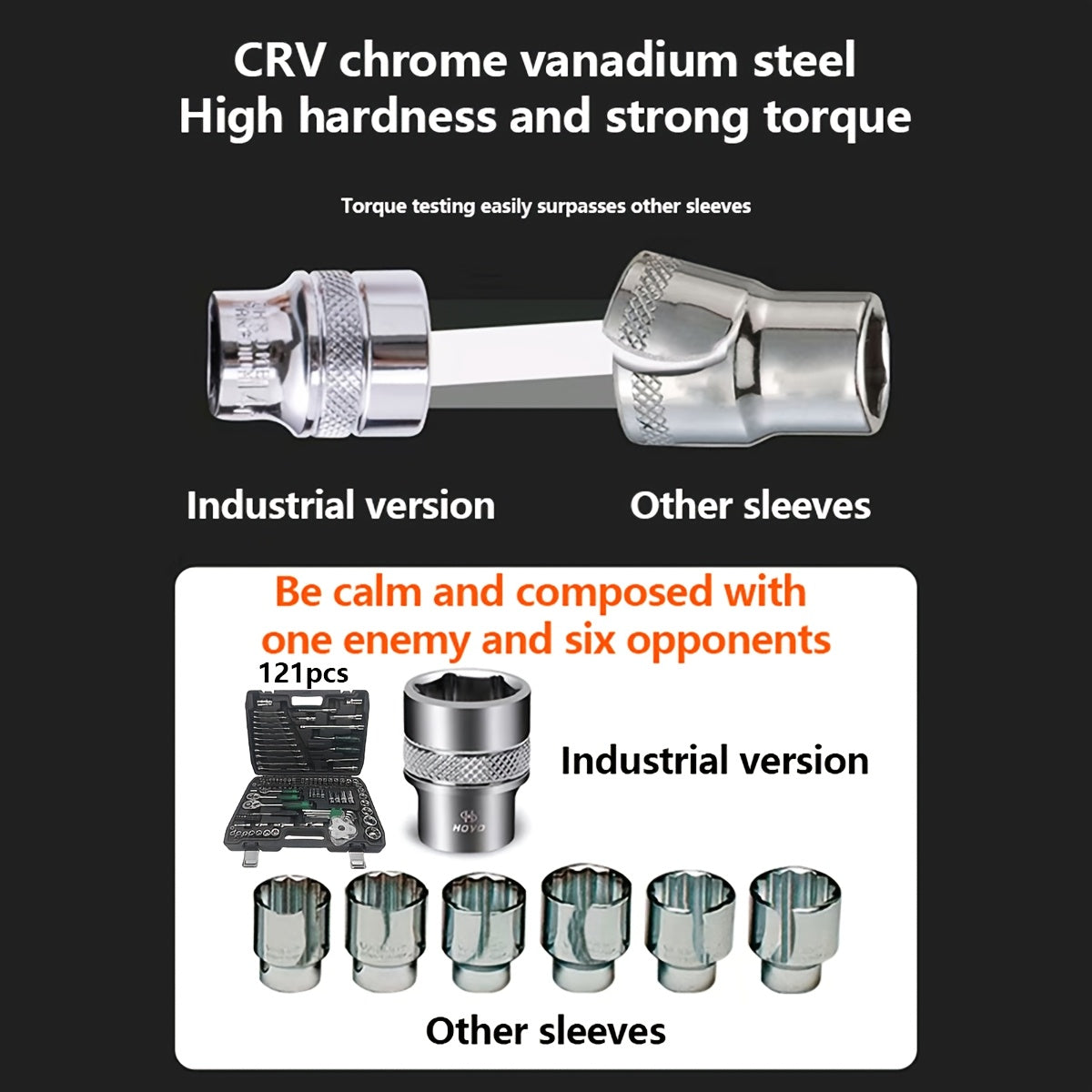 Black 46 and 121pcs of household car repair kit with plastic storage box, motorcycle repair kit, outdoor bicycle emergency bicycle repair tool, including hex wrench, universal joint, screwdriver, extension piece, slider