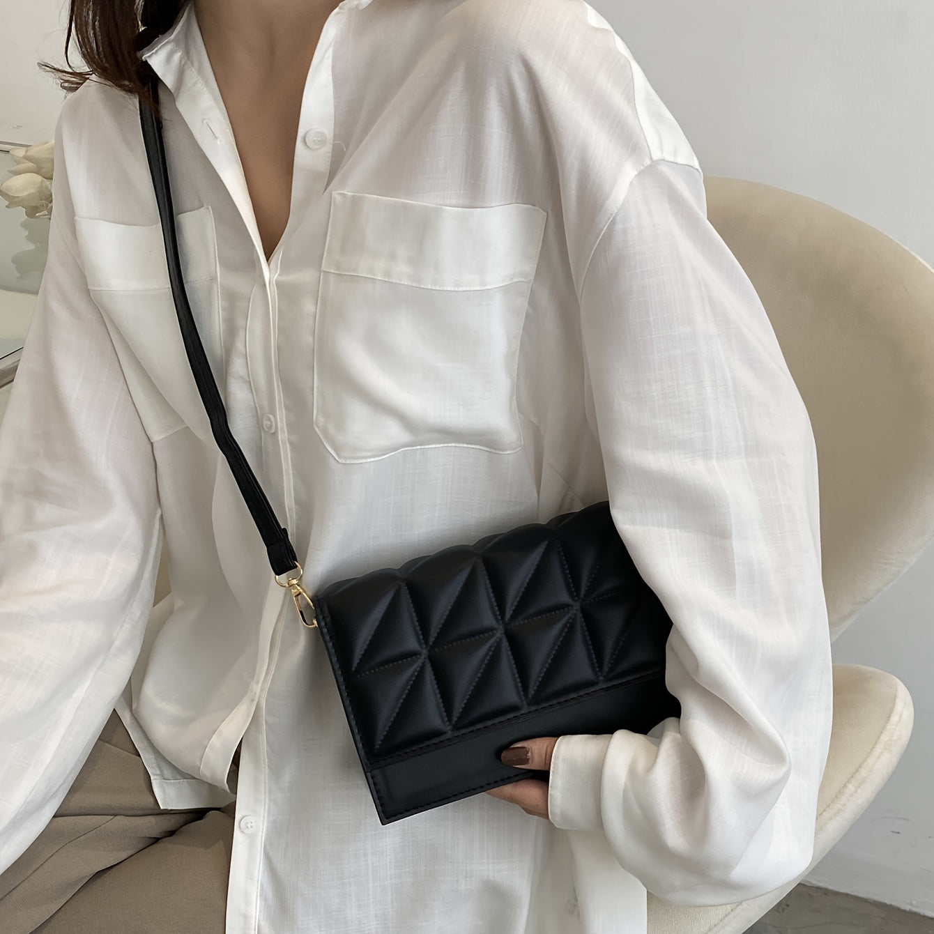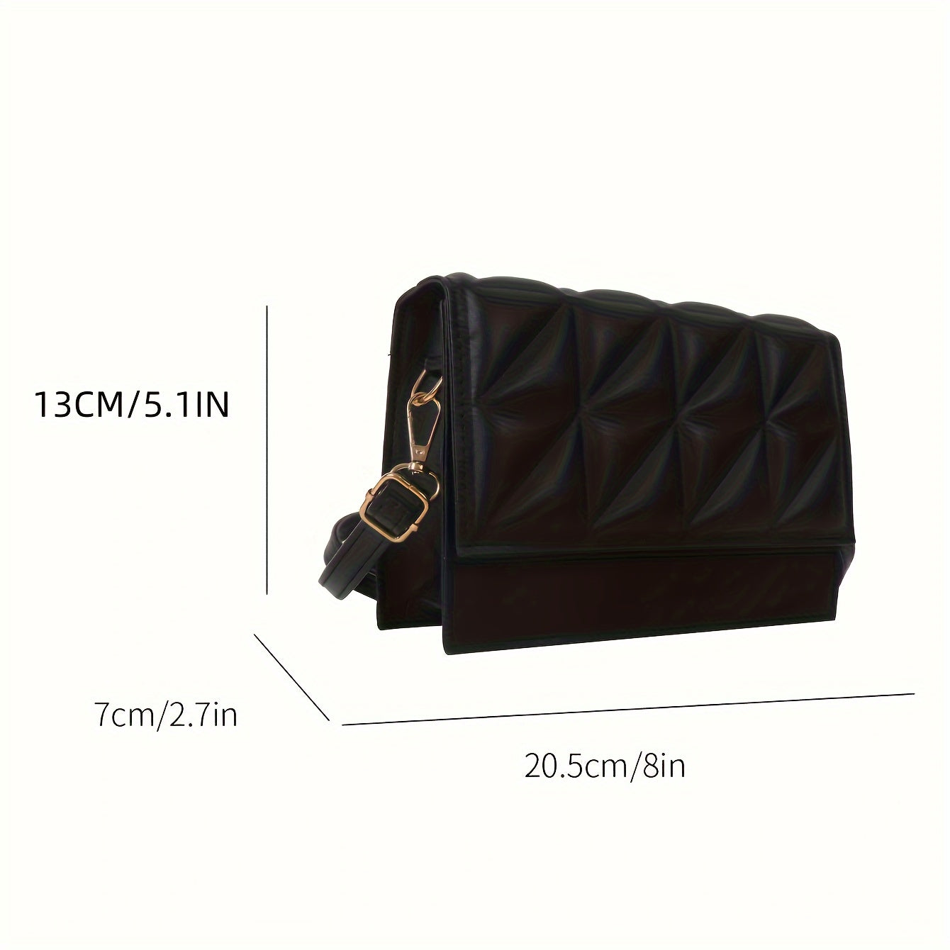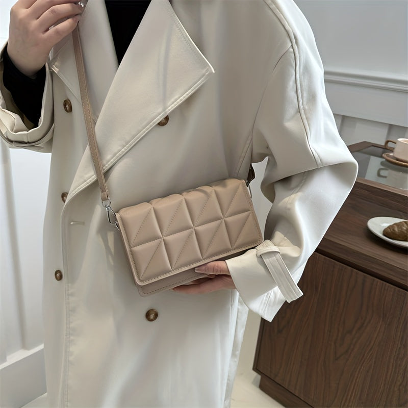 Black Minimalist Mini Square Shoulder Bag, All Matching Argyle Pattern Flap Crossbody Bag