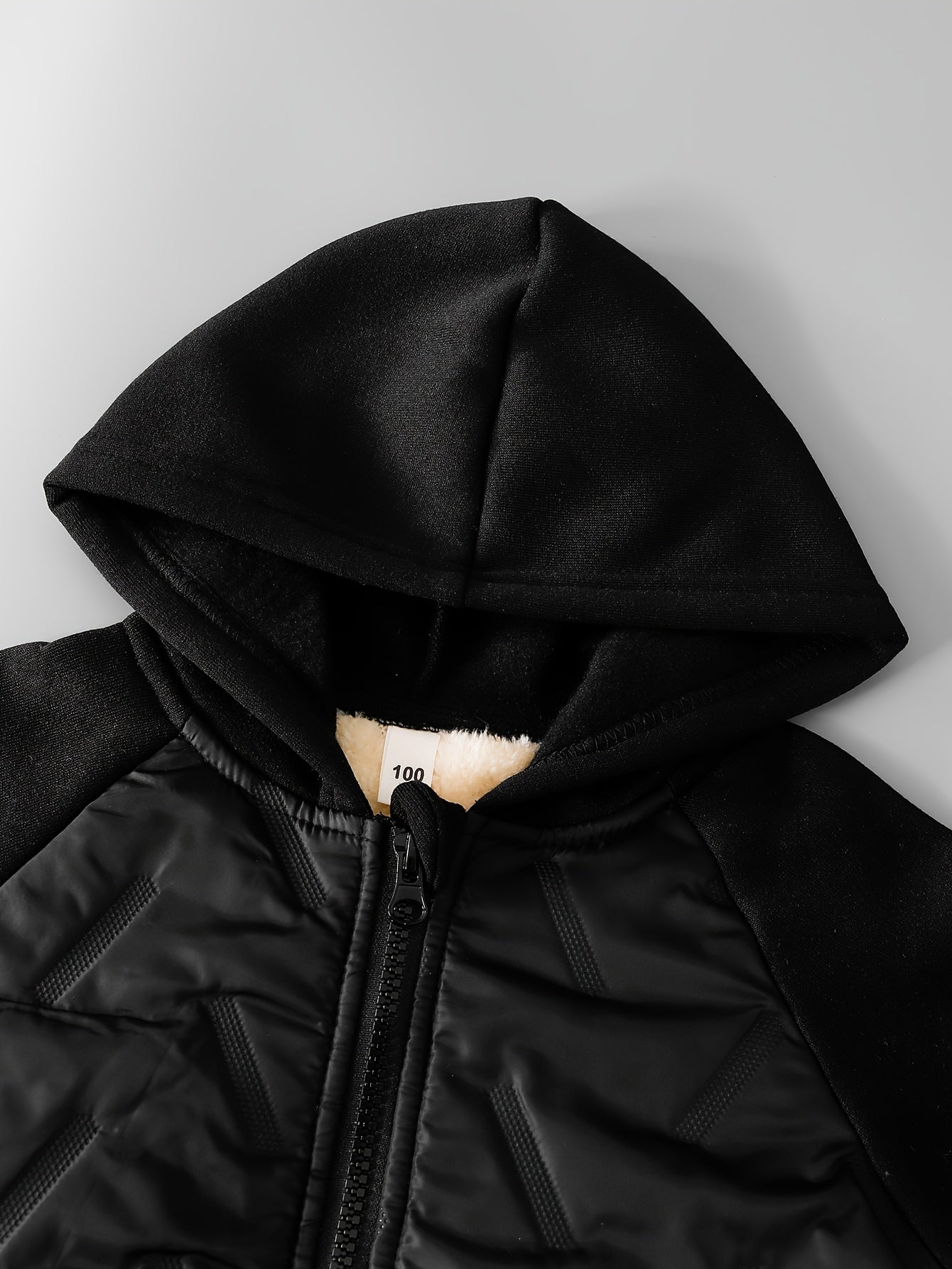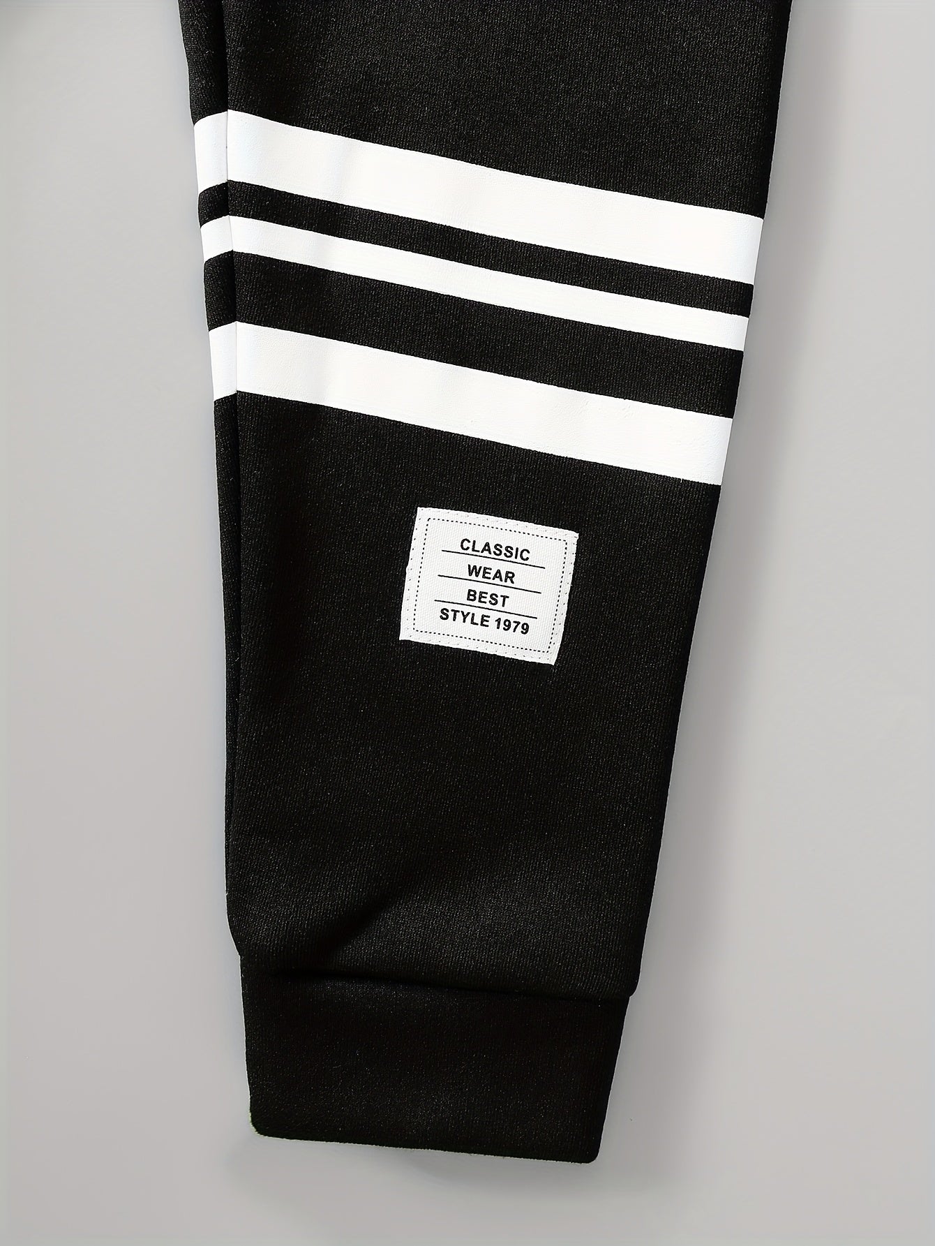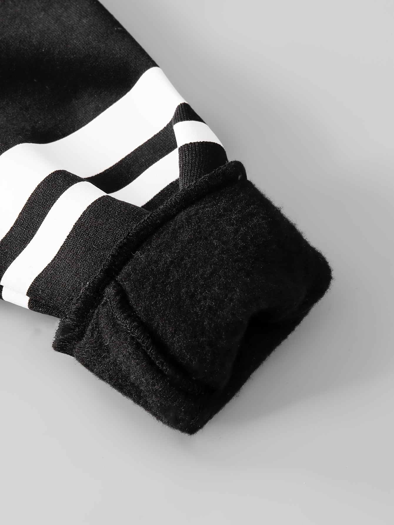 Boys' Autumn/Winter New Jacket with Striped Print, Letter Patch, Zipper Hooded Thickened Warm Coat and Casual Comfortable Everyday Versatile Sweatpants 2pcs Set, Perfect for Outdoor