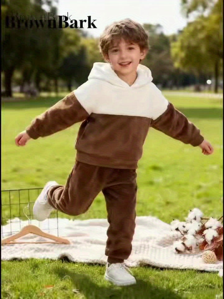 Boys' Cozy Fleece Hoodie & Pants Set - Gray & White Geometric Pattern, Long Sleeve Pullover with Hood, Soft Knit Fabric, Perfect for Fall & Winter, Casual Style, Everyday Comfort, Everyday Comfort Wear | Geometric Pattern Hoo