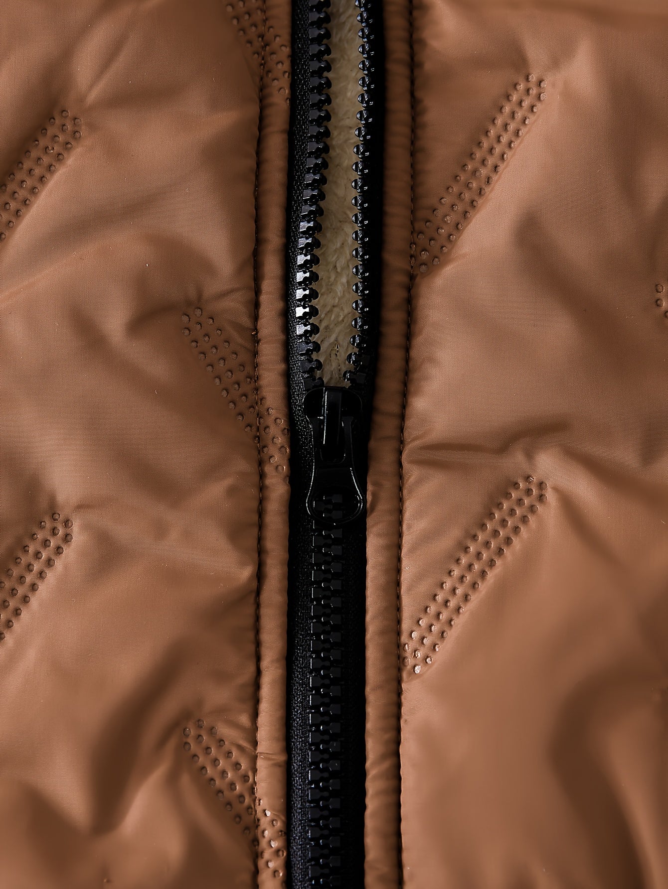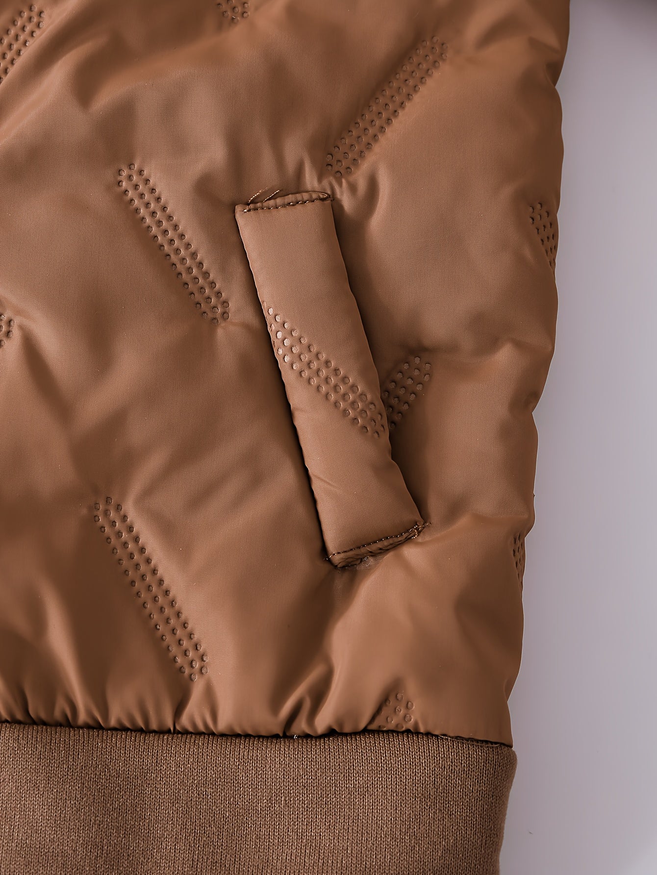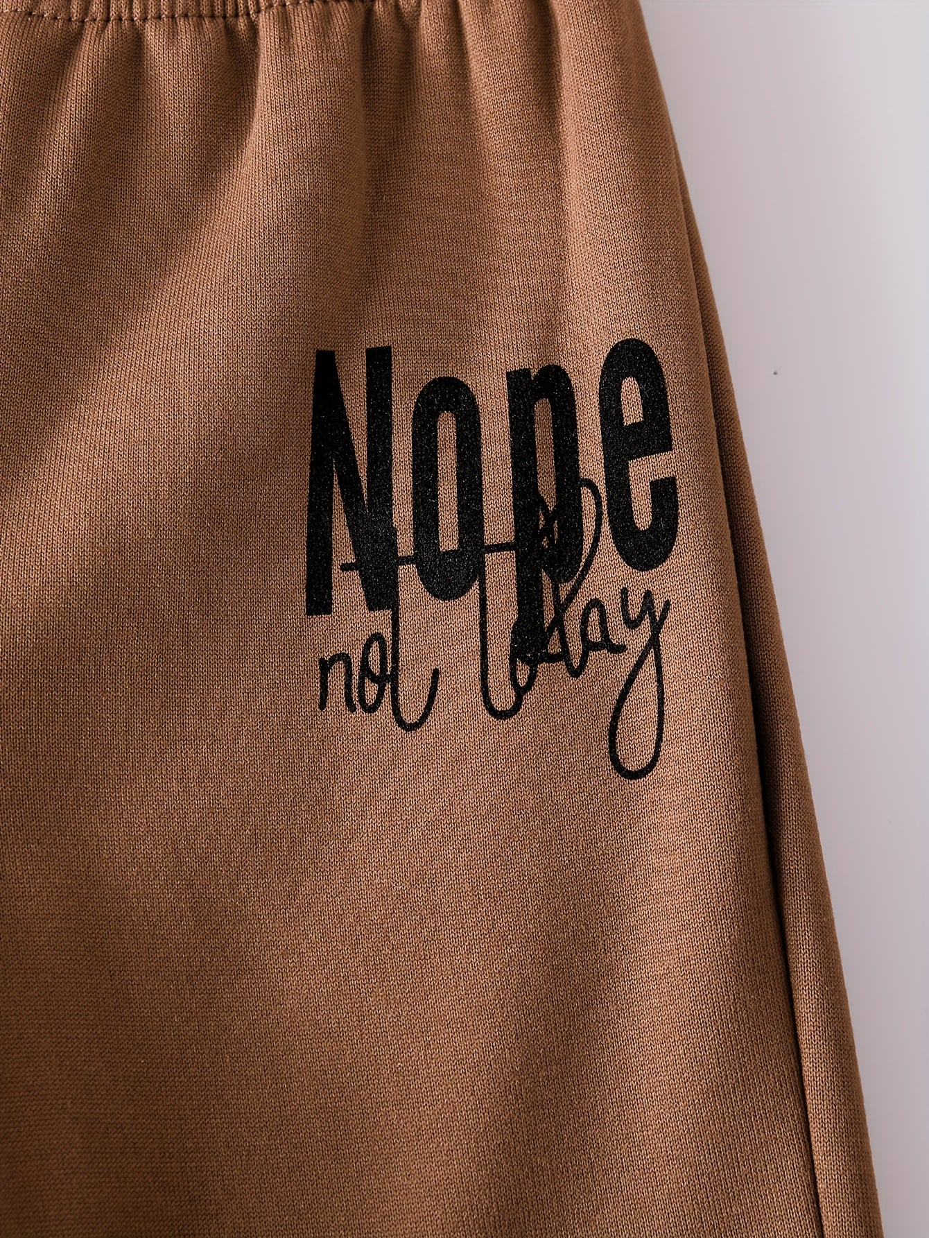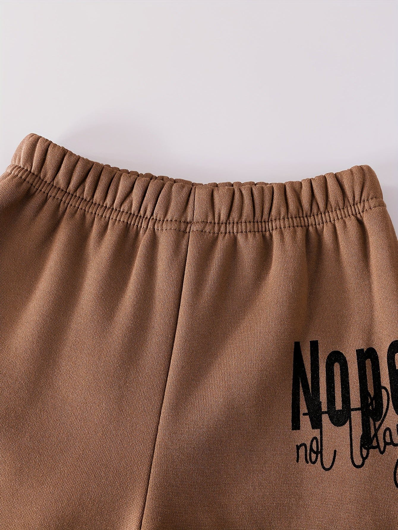 Boys' Fashion Set, Autumn/Winter Coffee Brown Hooded Lined Warm Jacket & Elastic Waist Velvet Pants with "ONPE‘" Letter Pattern - Casual Comfortable Thermal Sportswear Gift, Perfect for