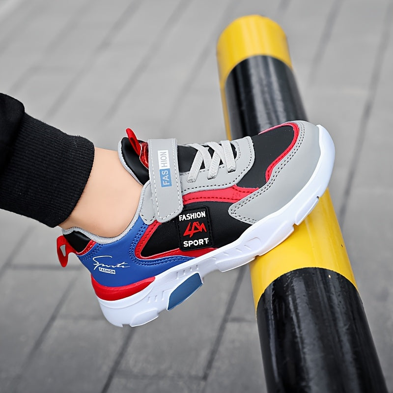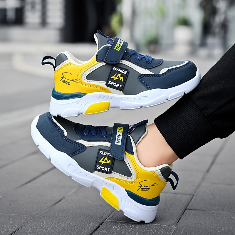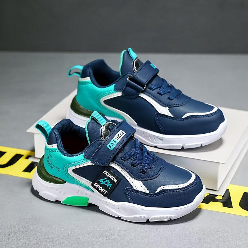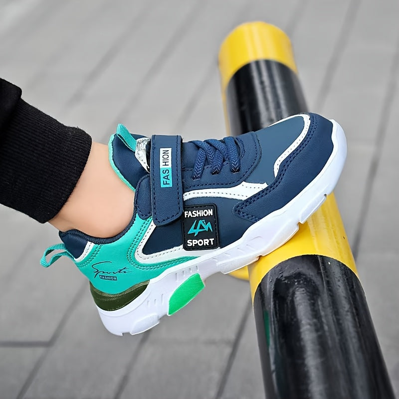Boys' Lightweight Running Shoes with Closure - Stylish Low-Top Sneakers, Navy Blue & Teal Accents, EVA Cushioned Sole for All-Season Outdoor Activities, Youngsters Running Shoes, Allseason Footwear, Modern Sneakers, Fabric Li