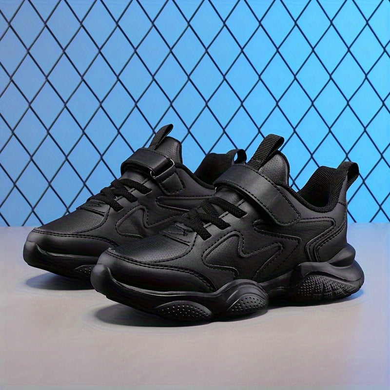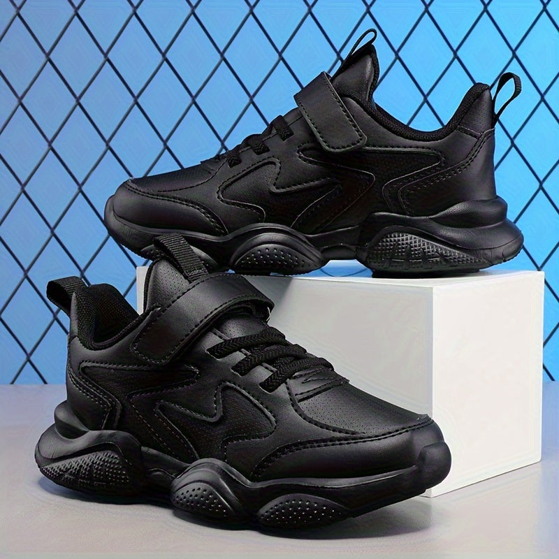Boys' Lightweight Soft Casual Sneakers with No-Lace Design - Breathable Synthetic, MD Sole for Hiking & Daily Wear, Low-Top Round Toe, Black, Hiking Shoes, Stylish Sportswear, Fabric Lined Interior