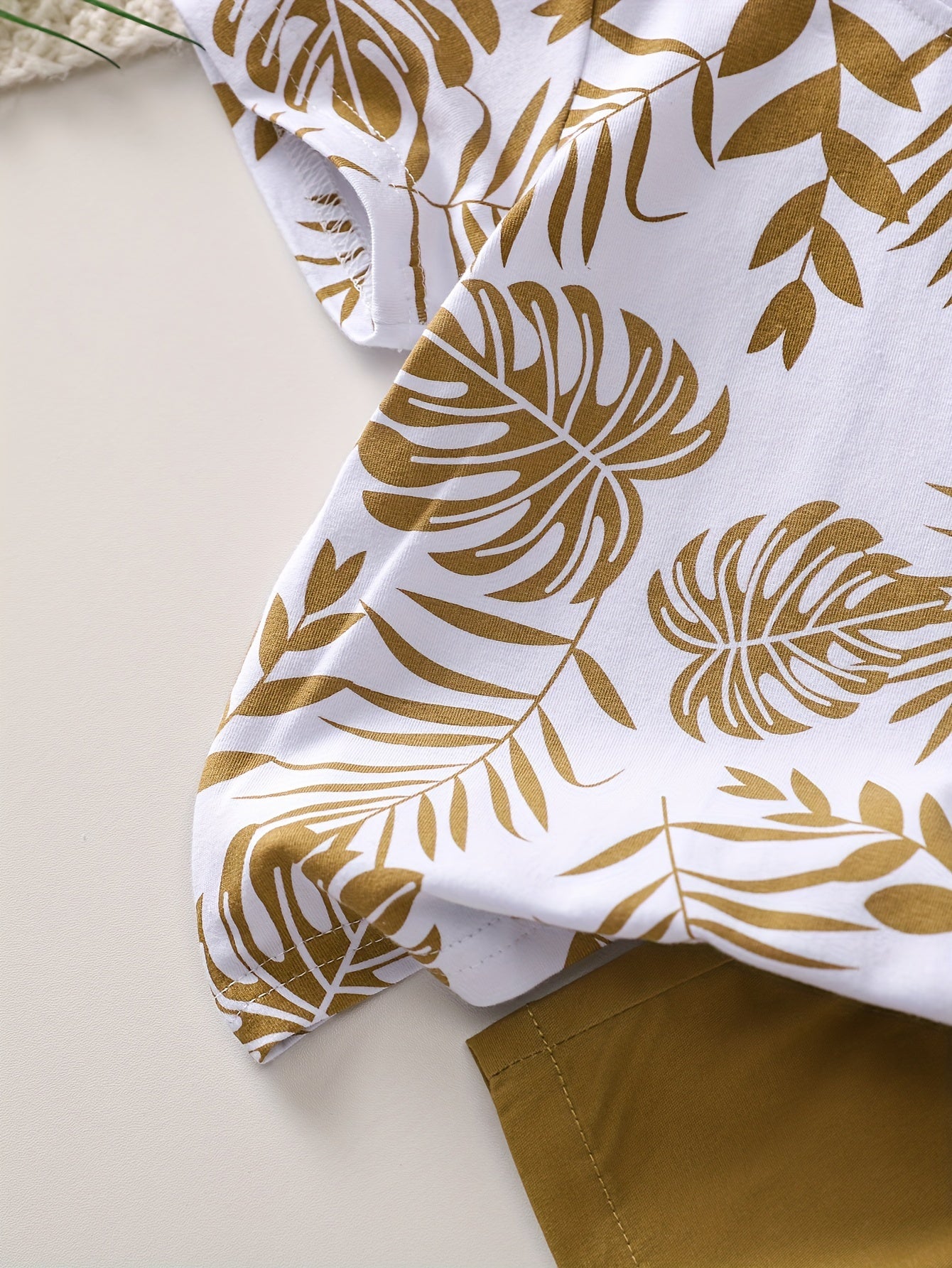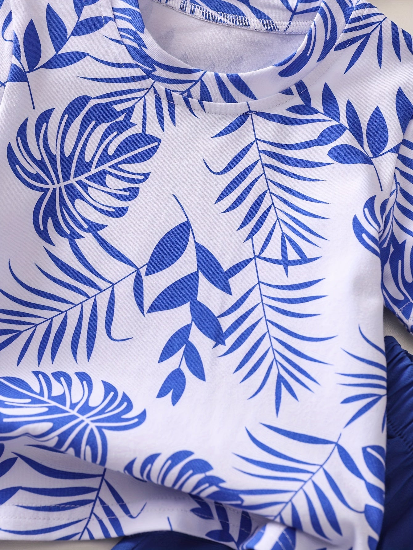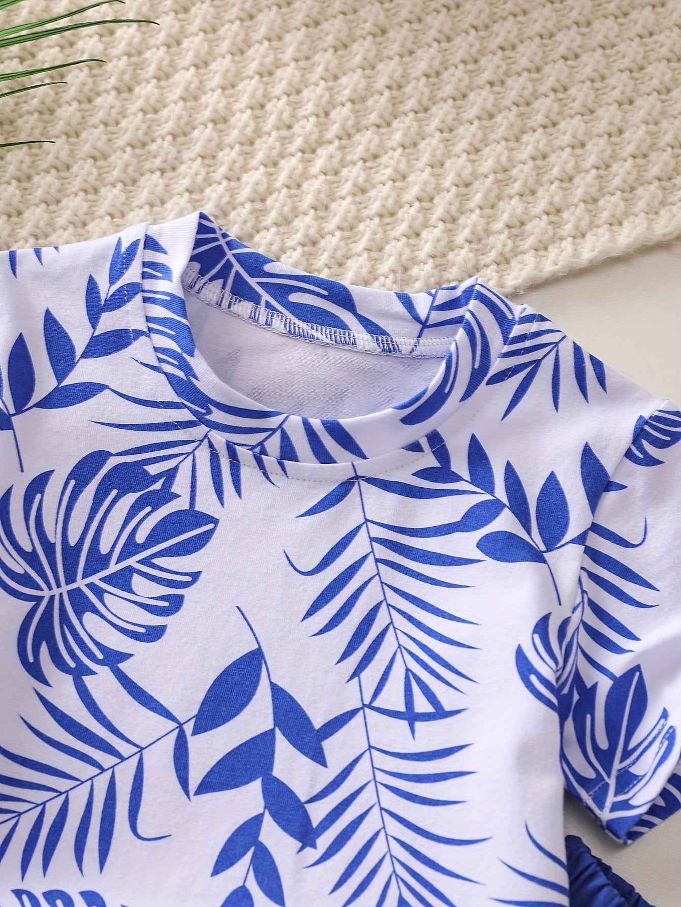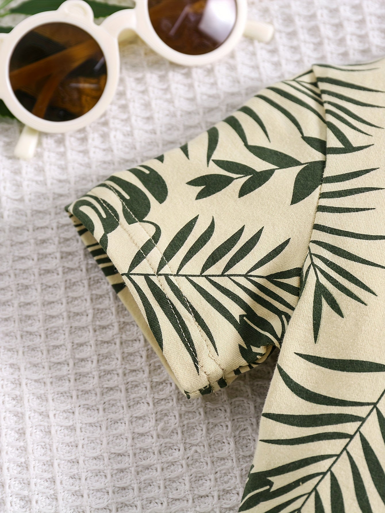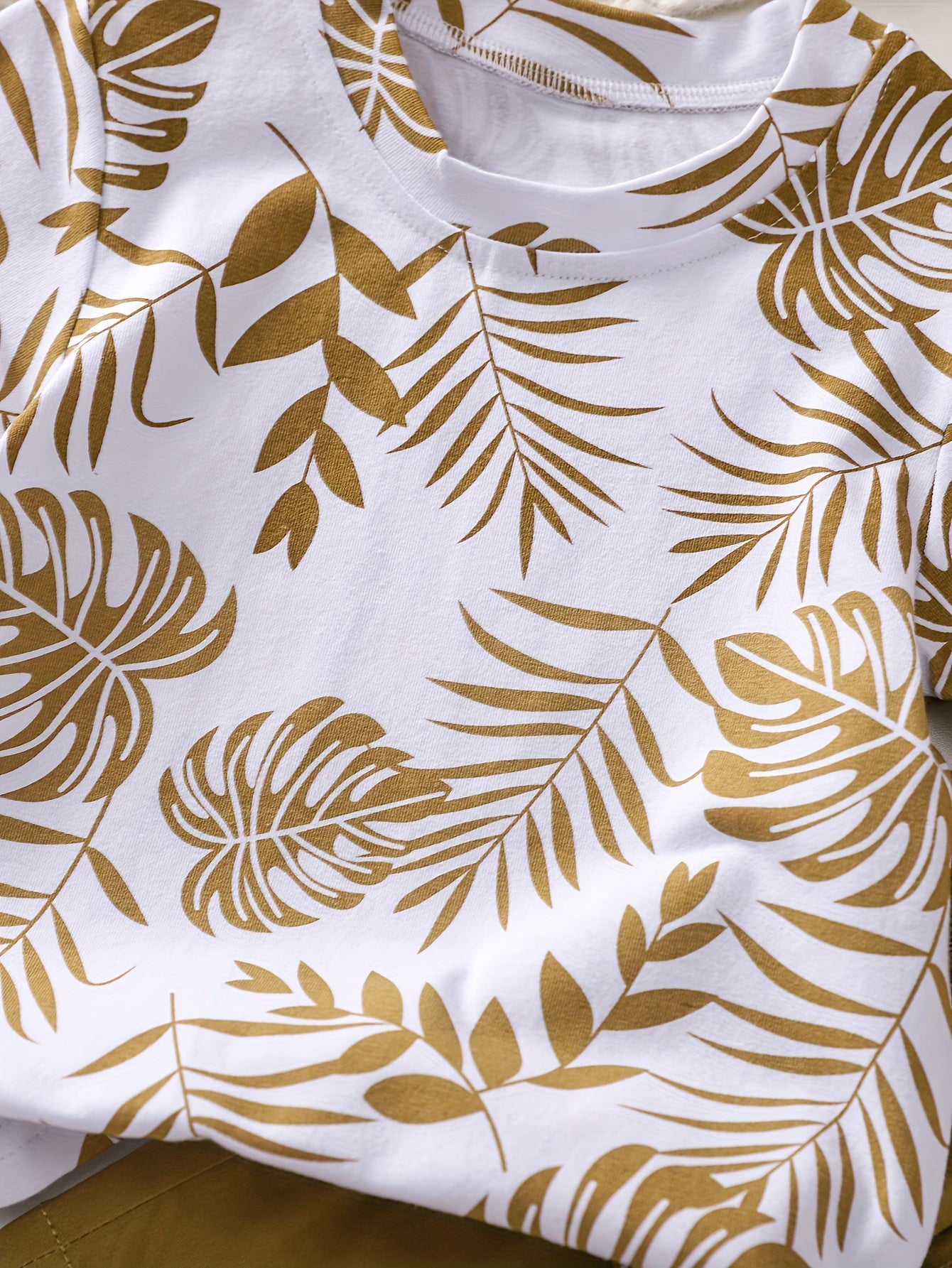Boys' Tropical Leaf Print Cotton Blend Casual Outfit - Short Sleeve Tee & Drawstring Shorts Set, Machine Washable for Spring/Summer, Perfect for Outdoor