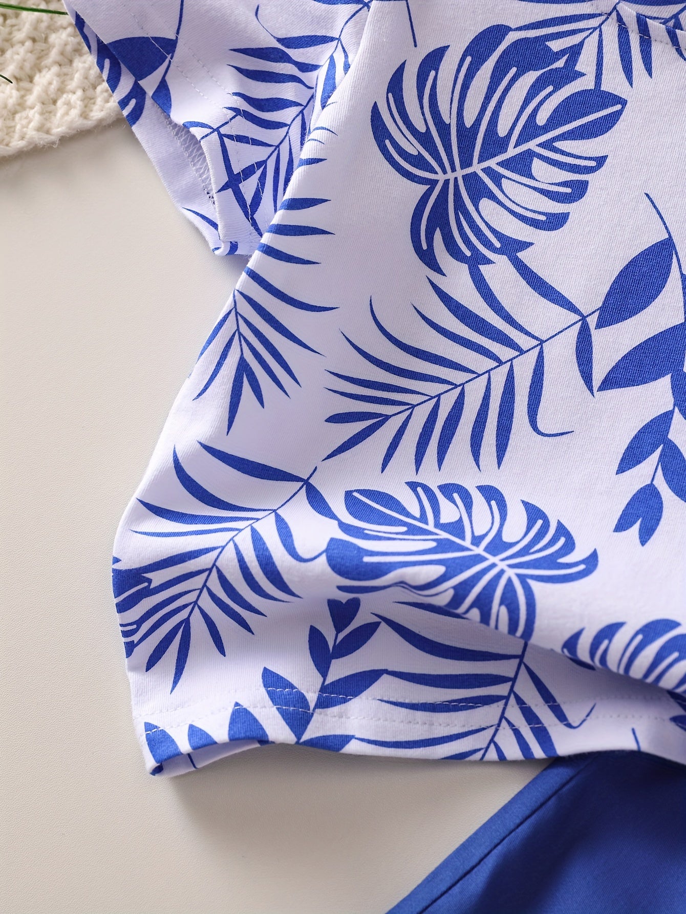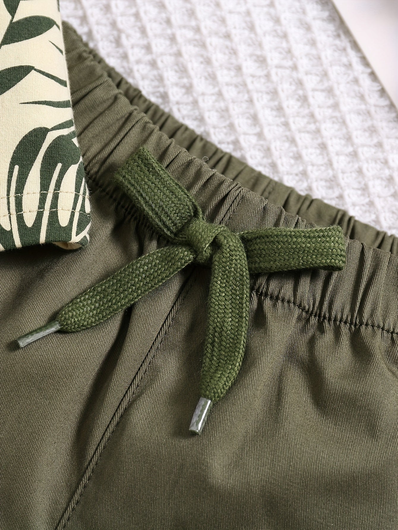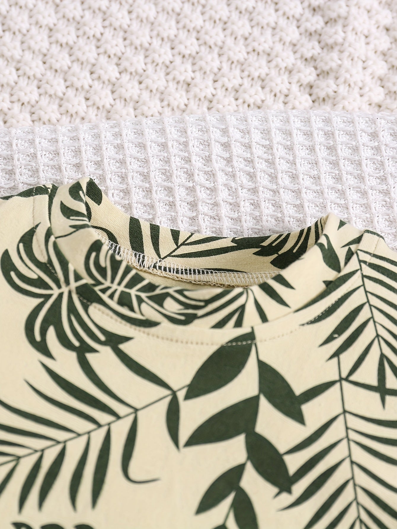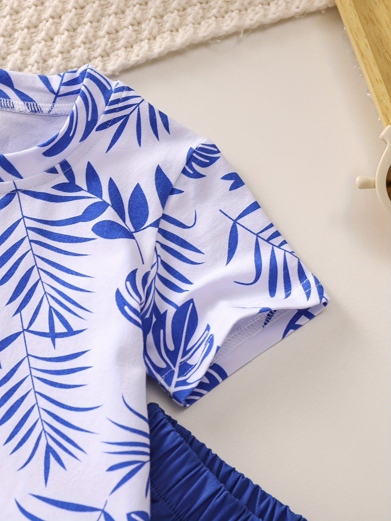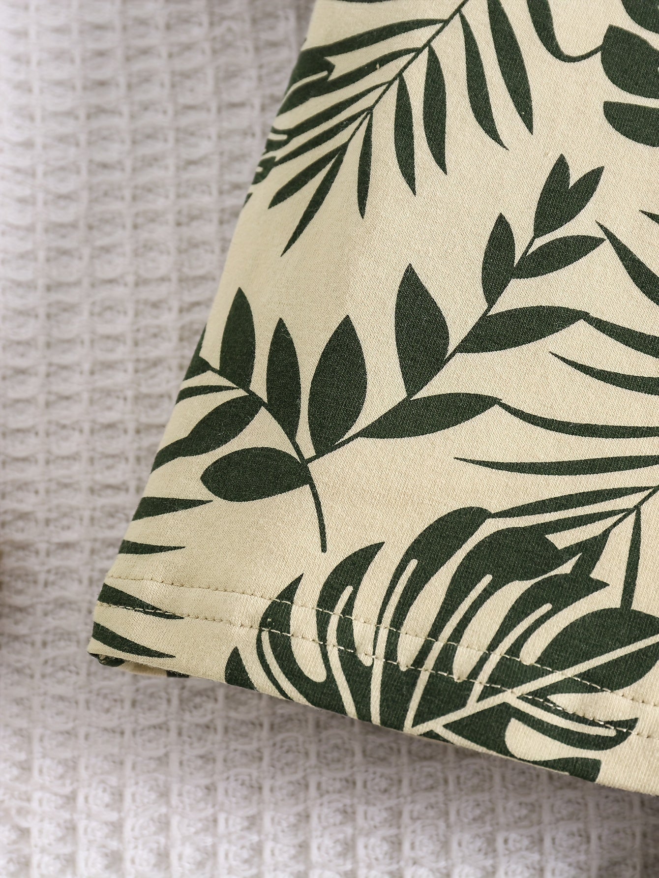 Boys' Tropical Leaf Print Cotton Blend Casual Outfit - Short Sleeve Tee & Drawstring Shorts Set, Machine Washable for Spring/Summer, Perfect for Outdoor