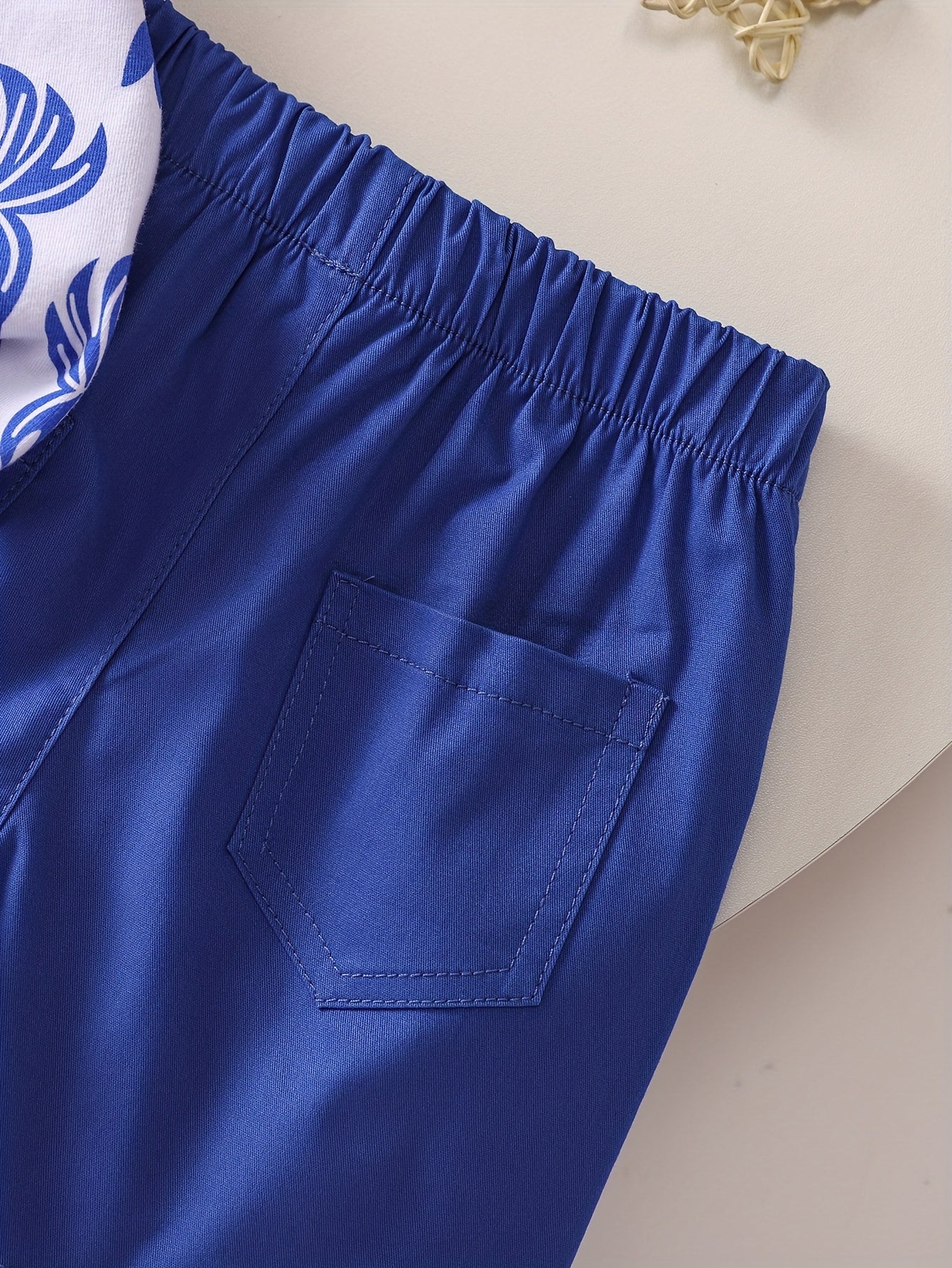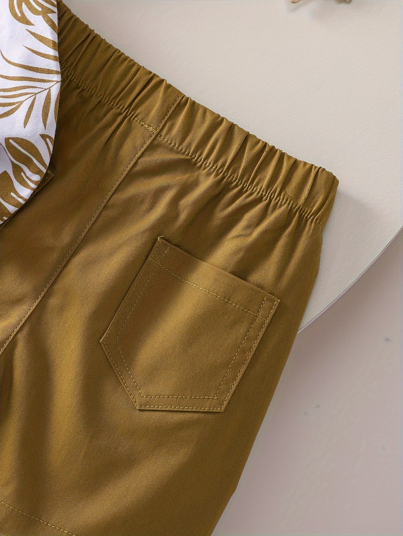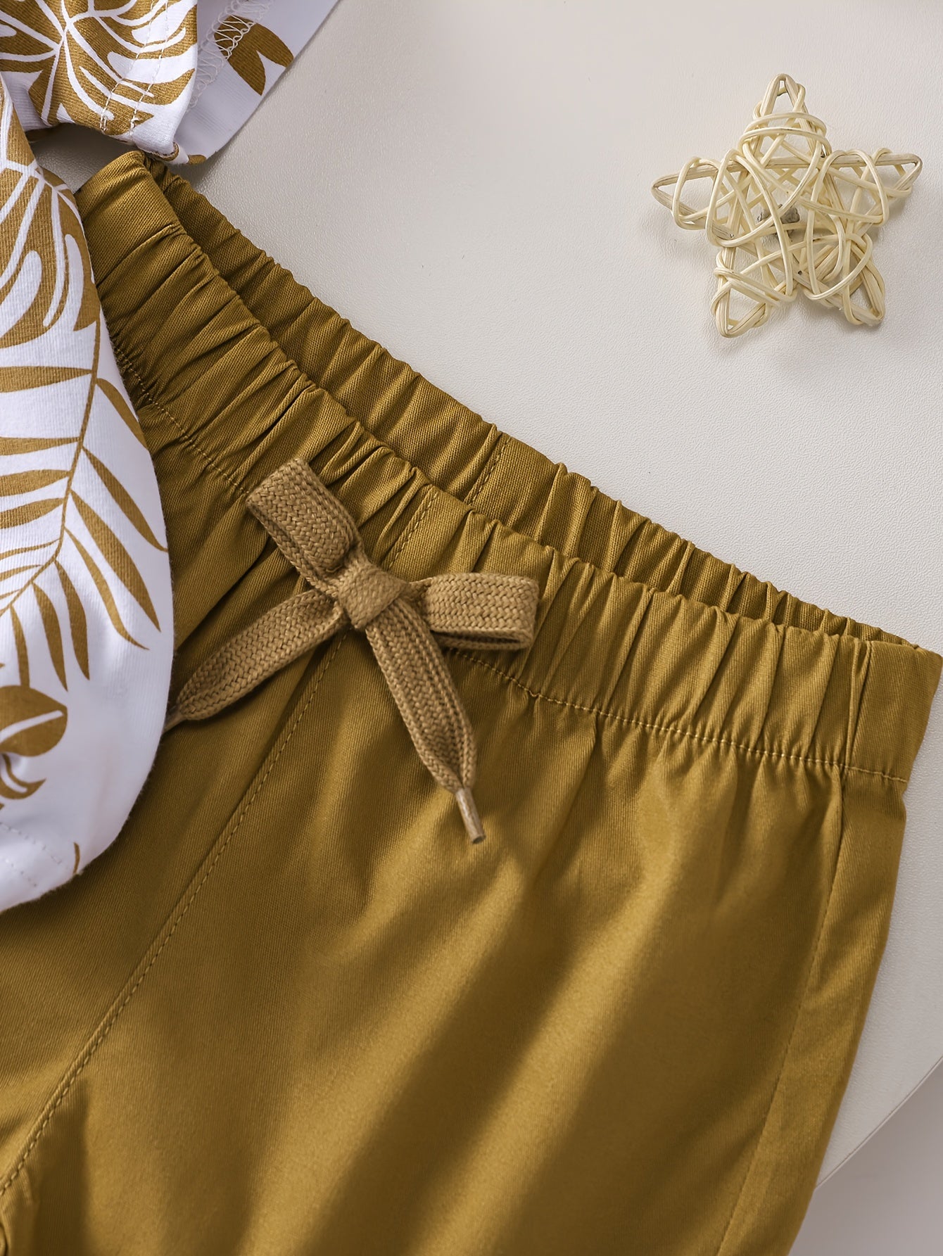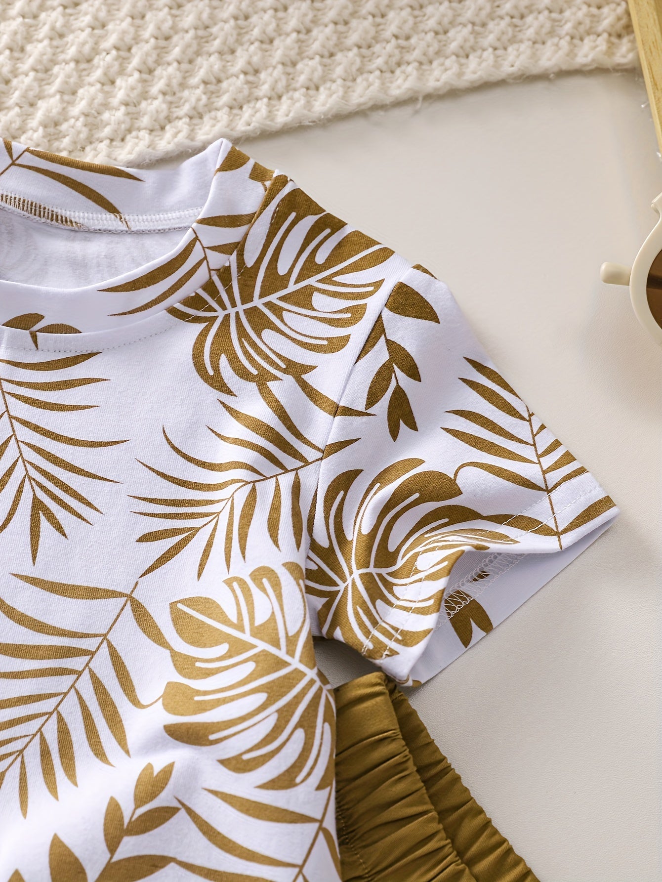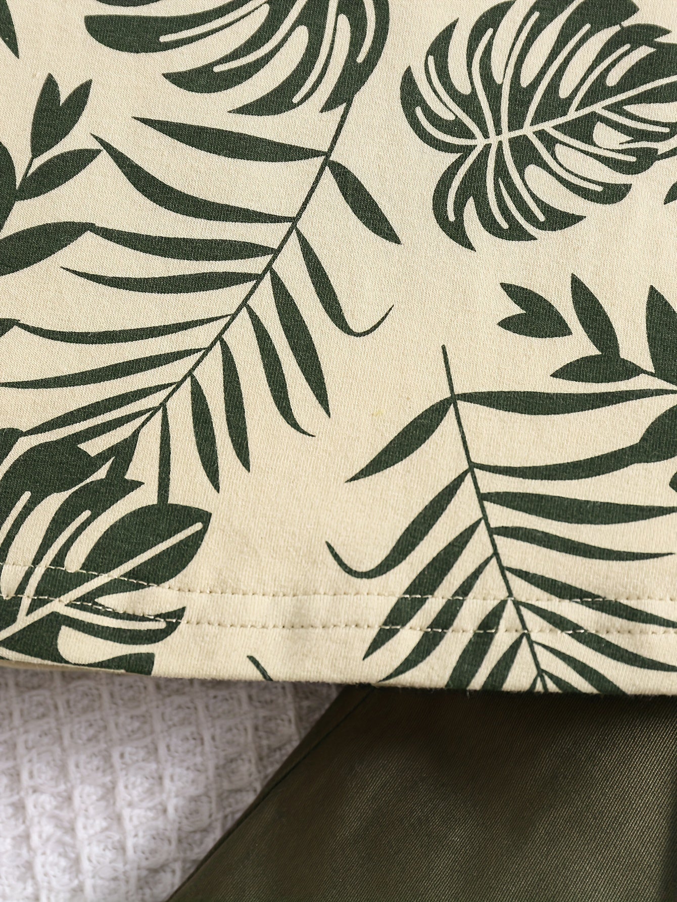 Boys' Tropical Leaf Print Cotton Blend Casual Outfit - Short Sleeve Tee & Drawstring Shorts Set, Machine Washable for Spring/Summer, Perfect for Outdoor