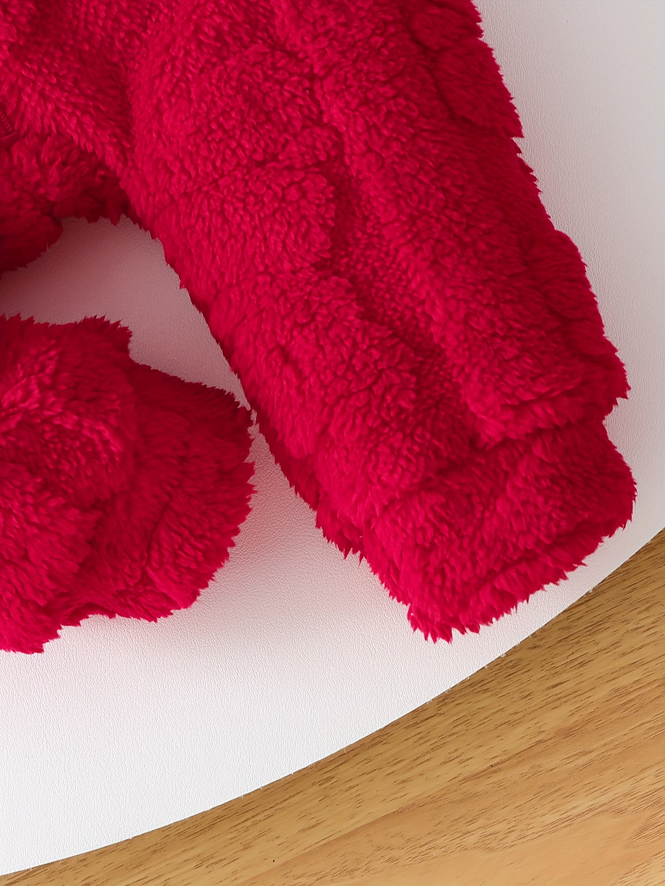 Boys & Winter Plush Hooded Romper Jumpsuit - Soft Zippered Full-Body Snow Suit with Antler, Machine Washable Warm Outfit for &, Cozy Red Baby Clothing, Perfect for Outdoor